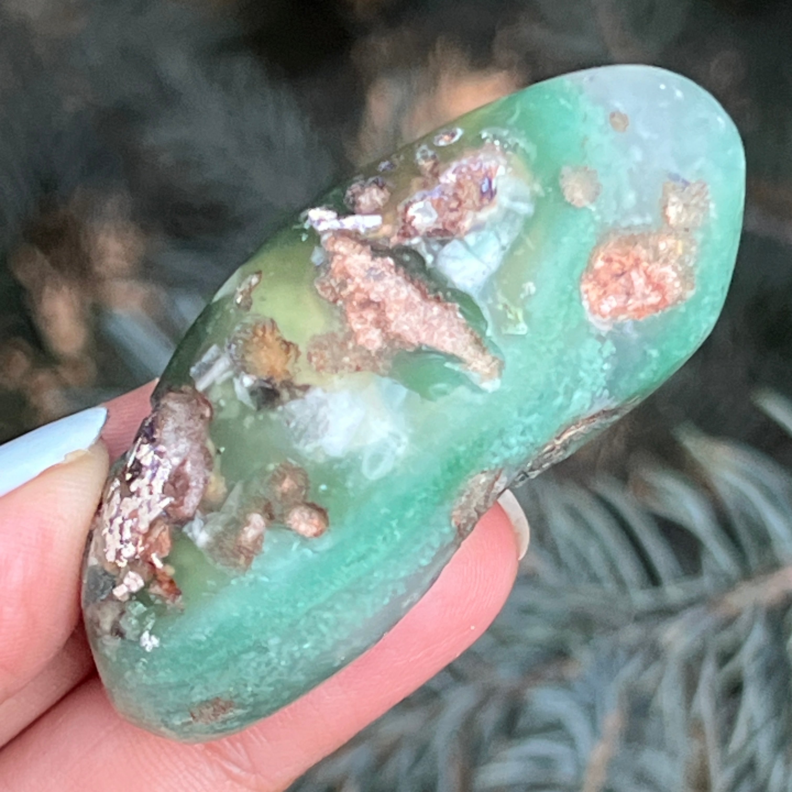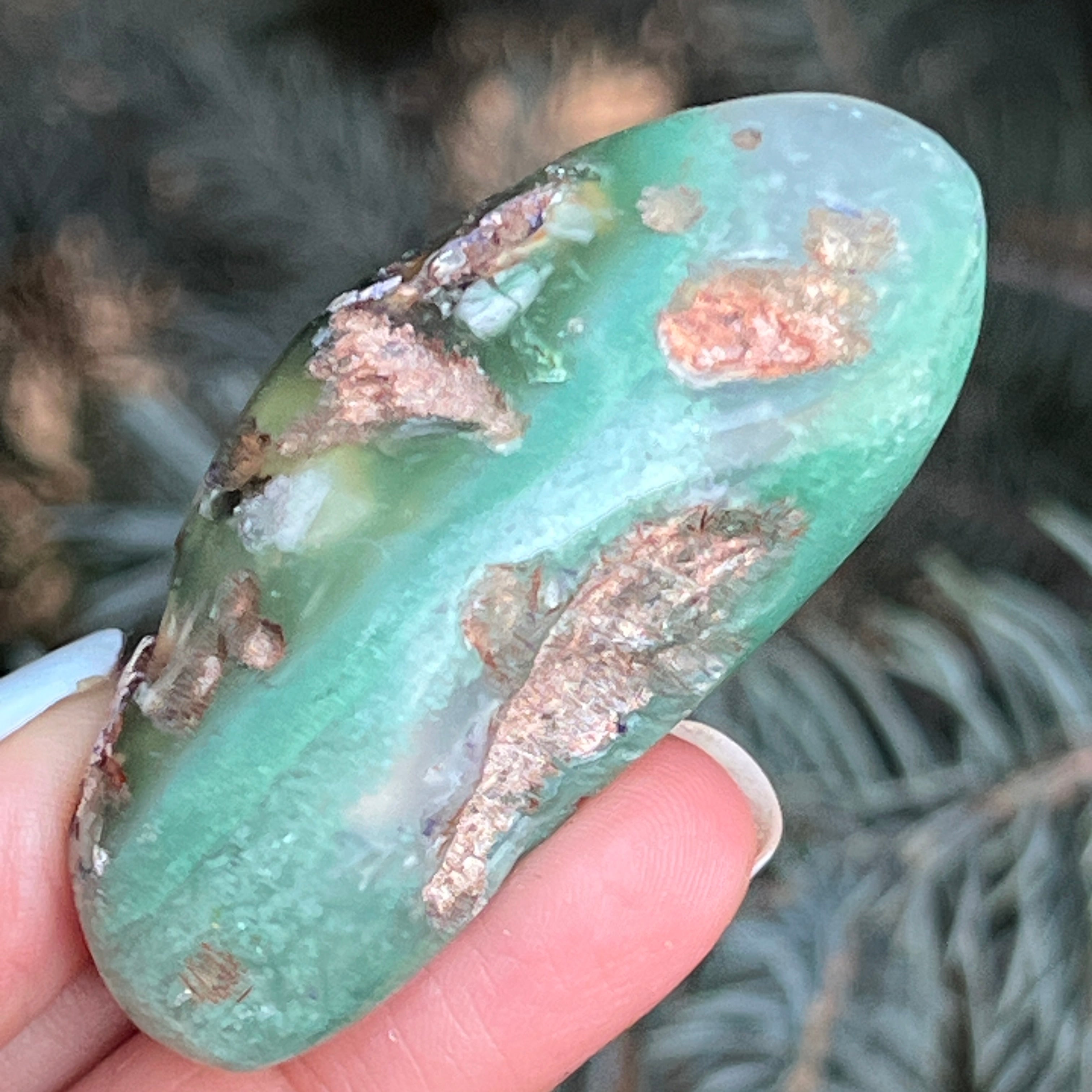 Smaragd kriszopráz pálmakő 14-es modell Zimbabwéből, méret: 5,9*2,7*2cm