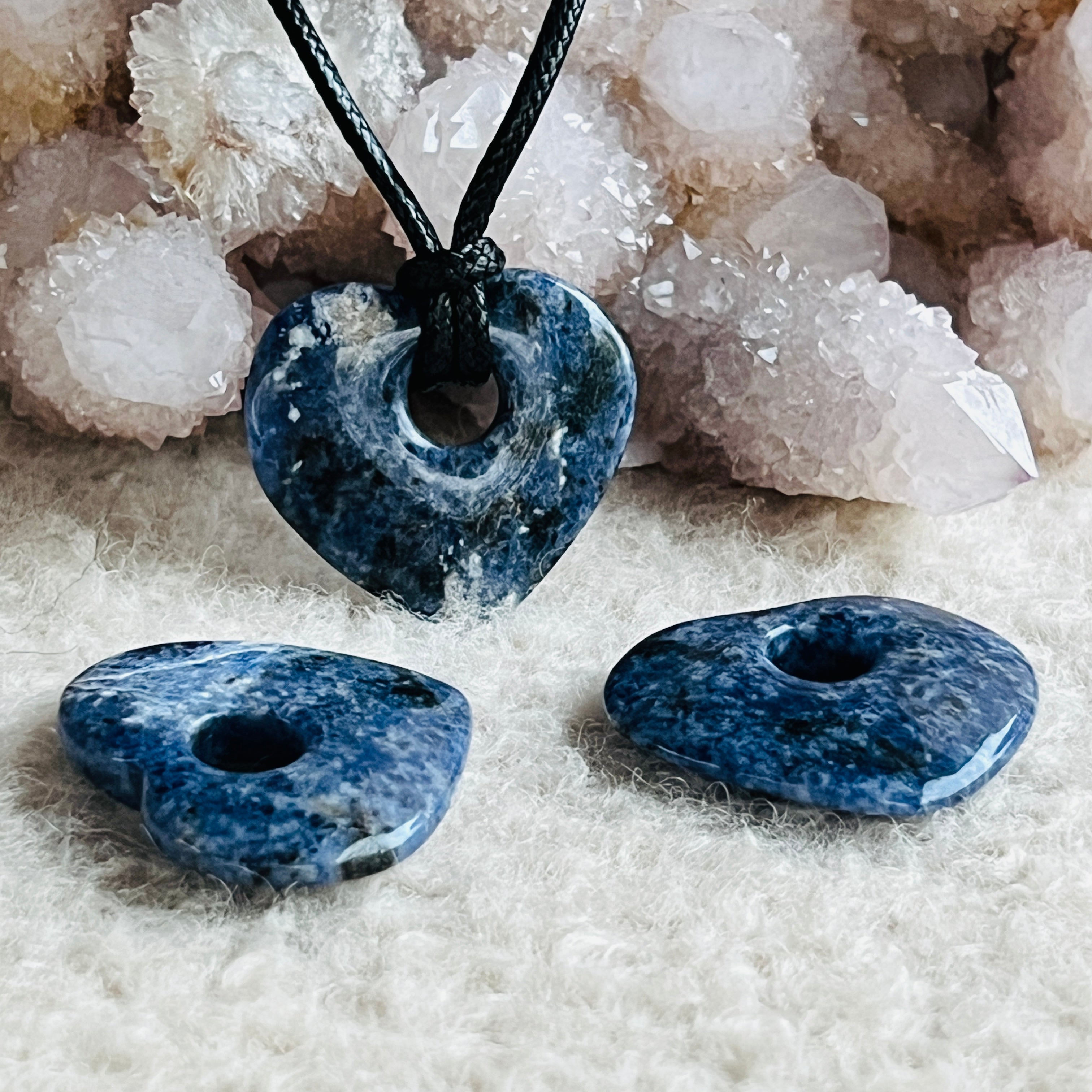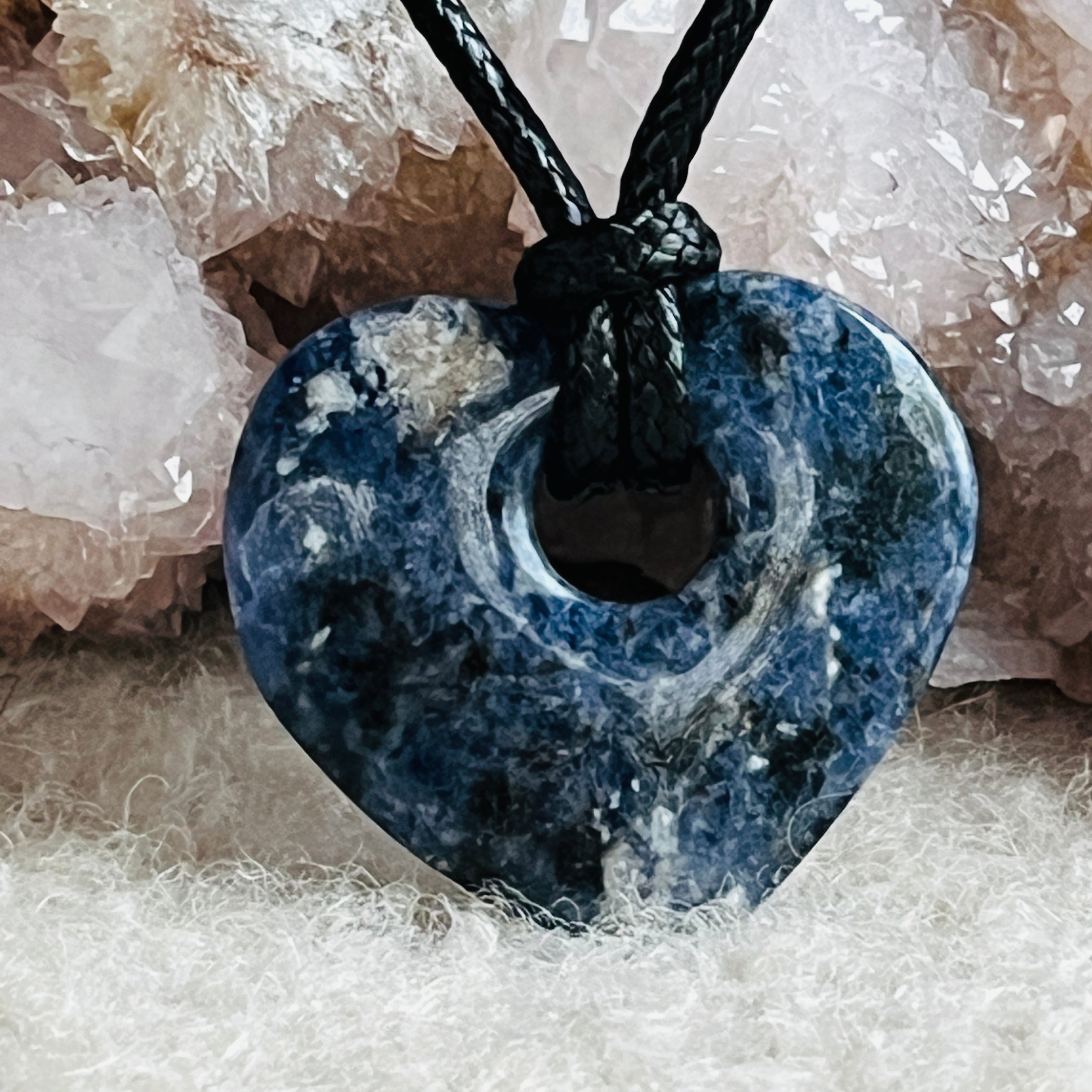 Sodalit medál, szív alakú donut kő, méret: 3,5 * 3 cm
