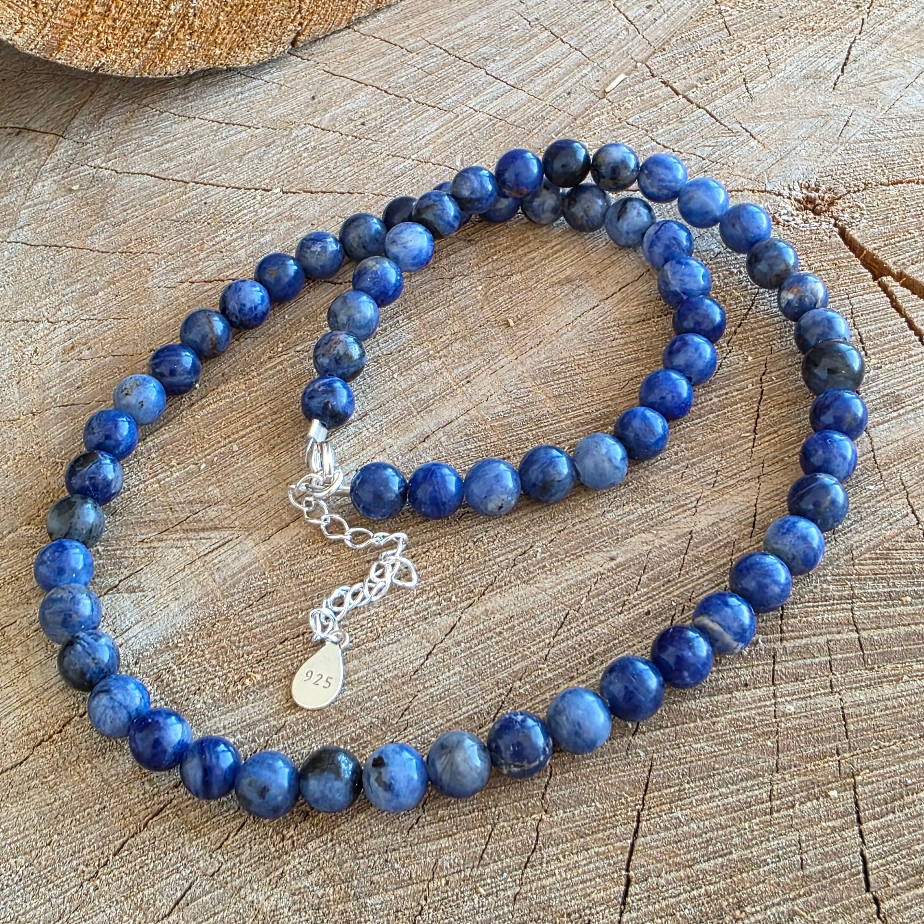 Anyagok: természetes szodalit, 8 mm-es golyók, 925-ös ezüst