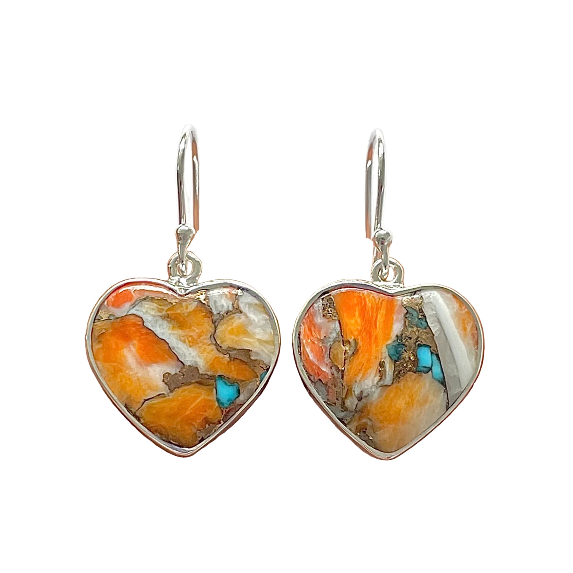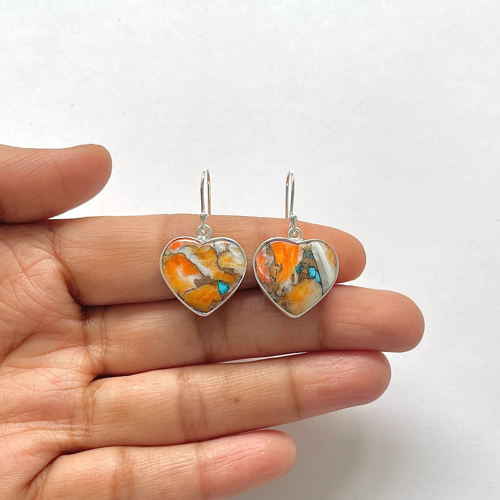 Ez a 925 ezüst szív fülbevaló Spiny Oyster Türkizzel elbűvöli a tekintetet a meleg színek kavalkádjával, ahol a kagyló intenzív narancssárgája összefonódik a gyöngyházfehérrel, földszínekkel és türkiz kiemelésekkel. Minden pár egyedi, mint egy természetes festmény, lehetetlen reprodukálni.