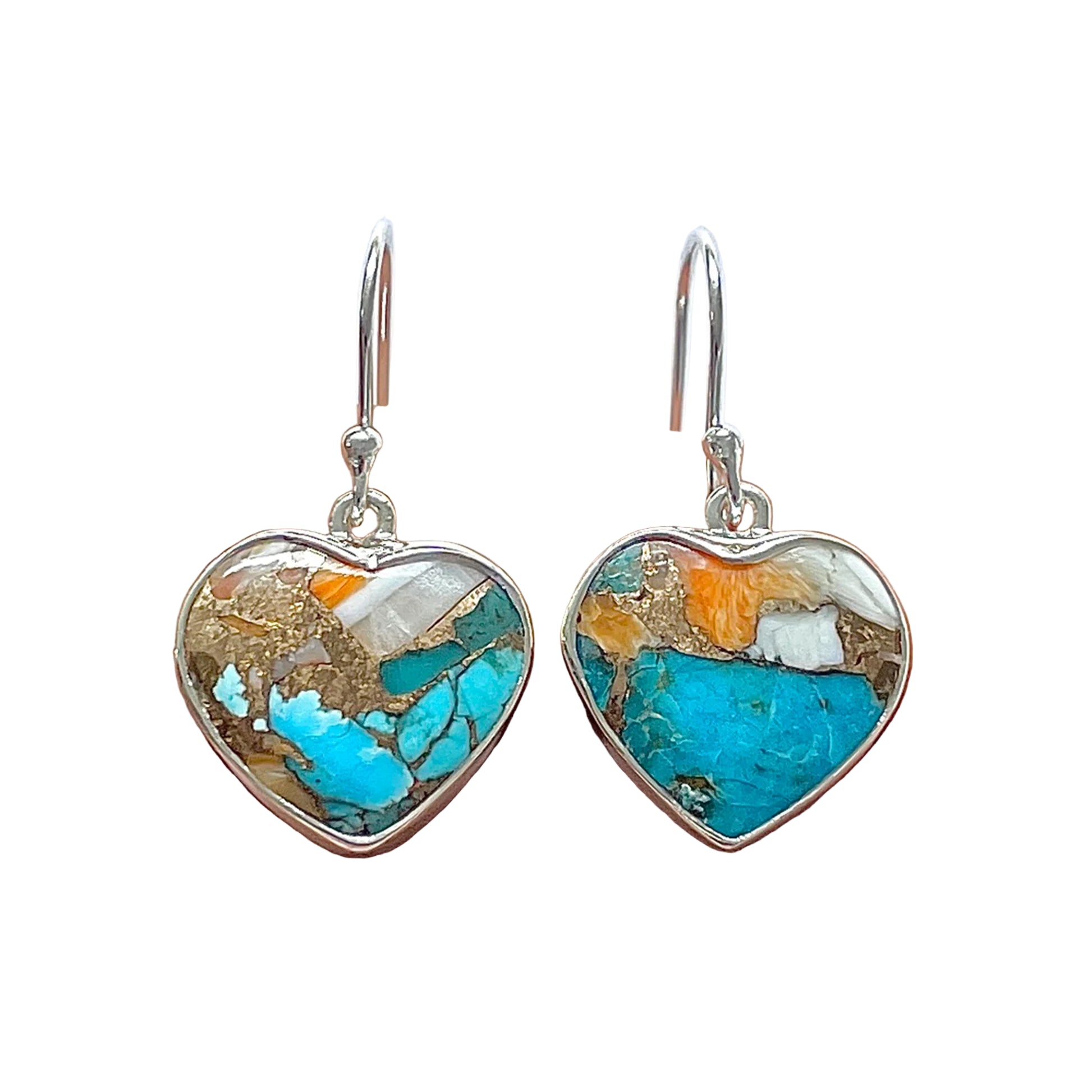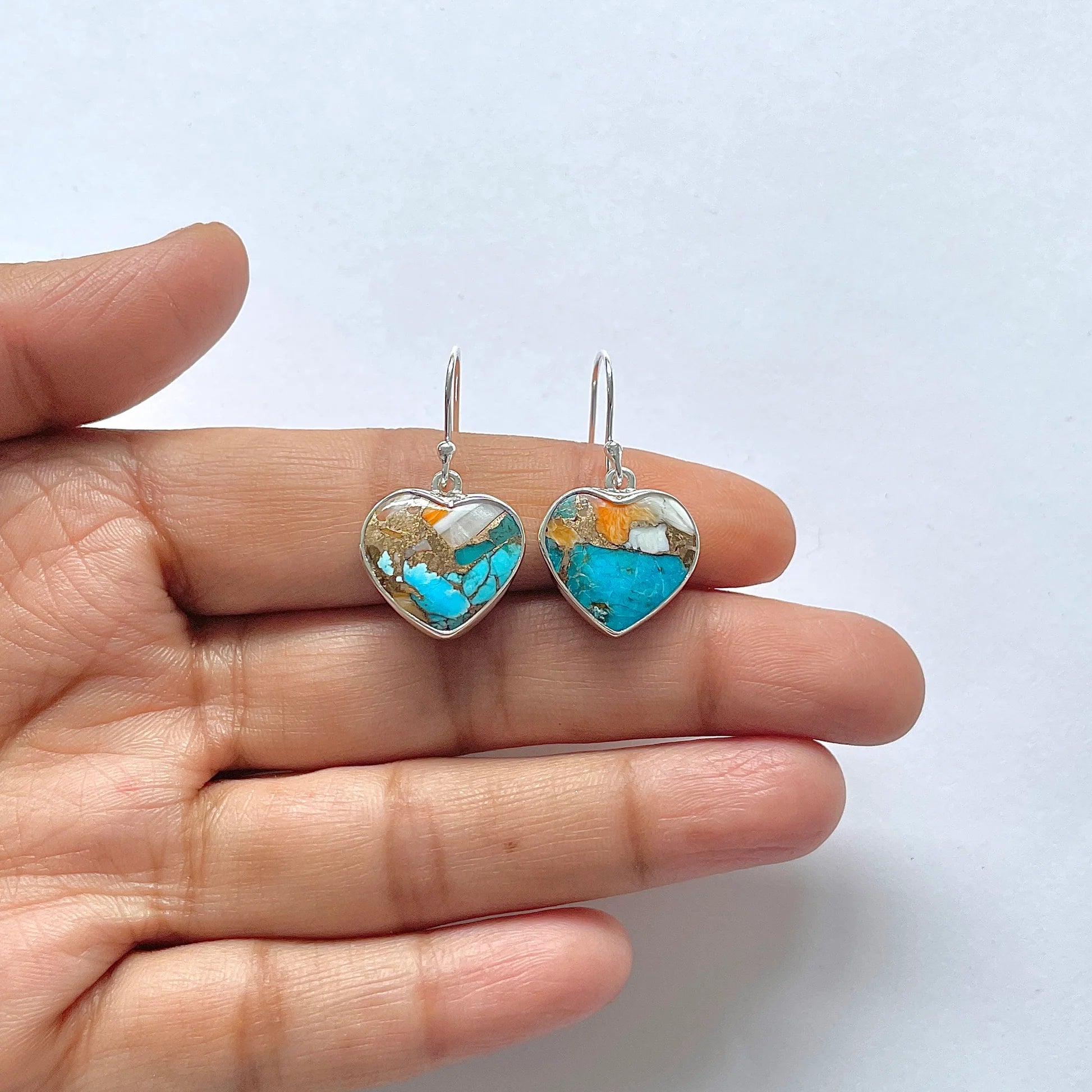 Válaszd ezeket az ezüst szív alakú Spiny Oyster Türkiz fülbevalókat, hogy magaddal vihesd a tenger rezgését, a tűz bátorságát és az ég nyugalmát – egyedülálló ékszer, amelyet a természet alkotott és neked csiszolt.