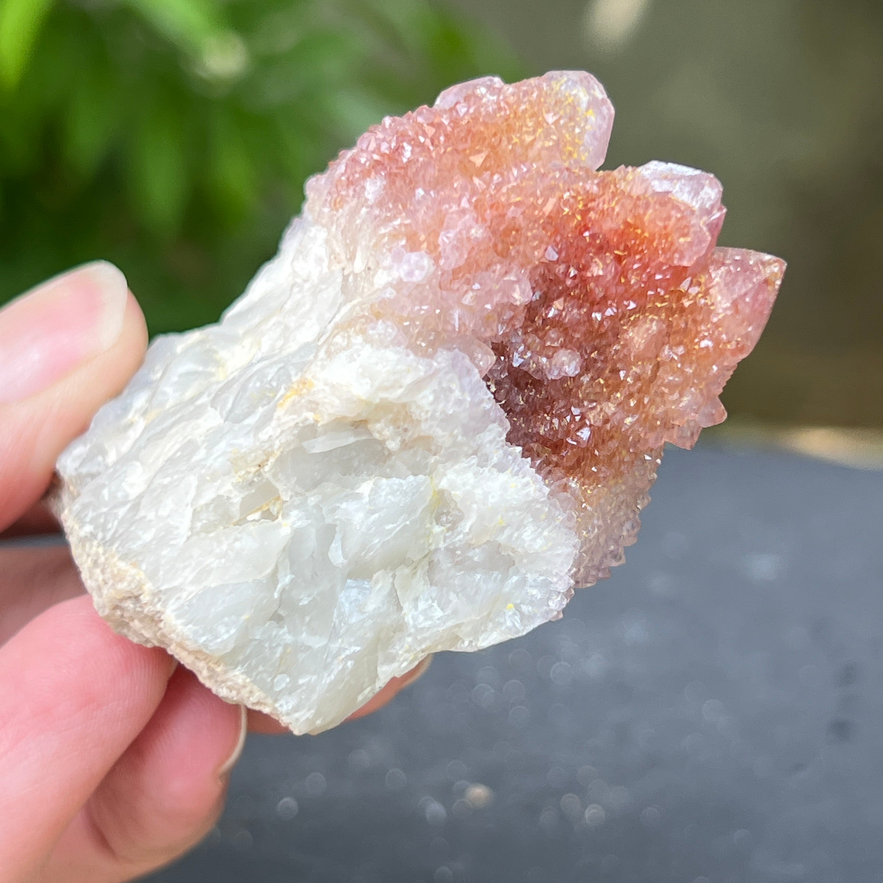 Afrika földje mélyén, ott, ahol a hegyek csendje elrejti a kimondatlan történeteket, egy különös szépségű kristály születik: a Spirit Quartz ametiszt, más néven „Kaktusz Kvarc”. Ez a mineralógiai csoda misztikus aurával körülvéve tűnik – egyetlen masszív alap, amelyet több ezer finom csúcspont borít, akár egy kristályközösség, amely a fény táncában egyesült.