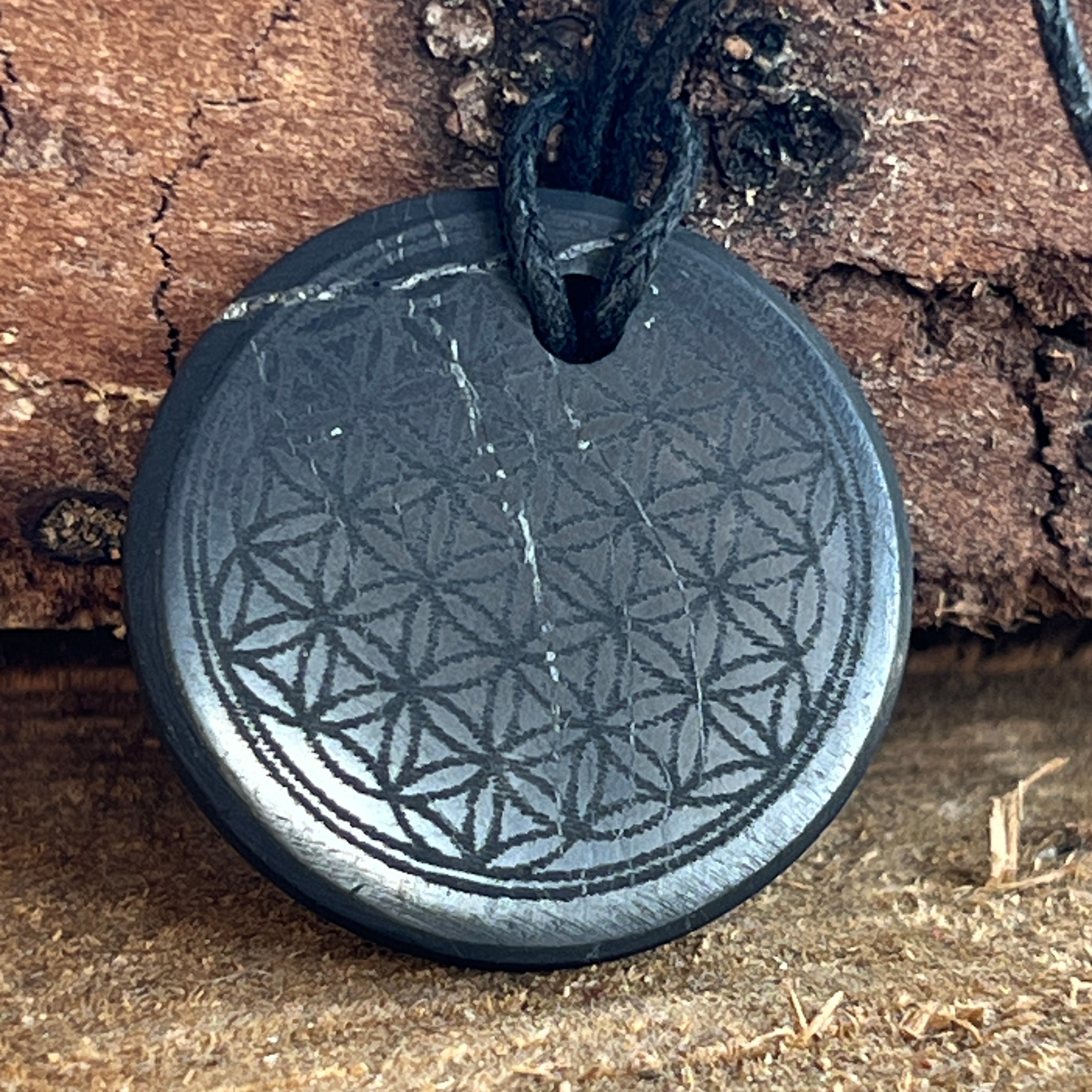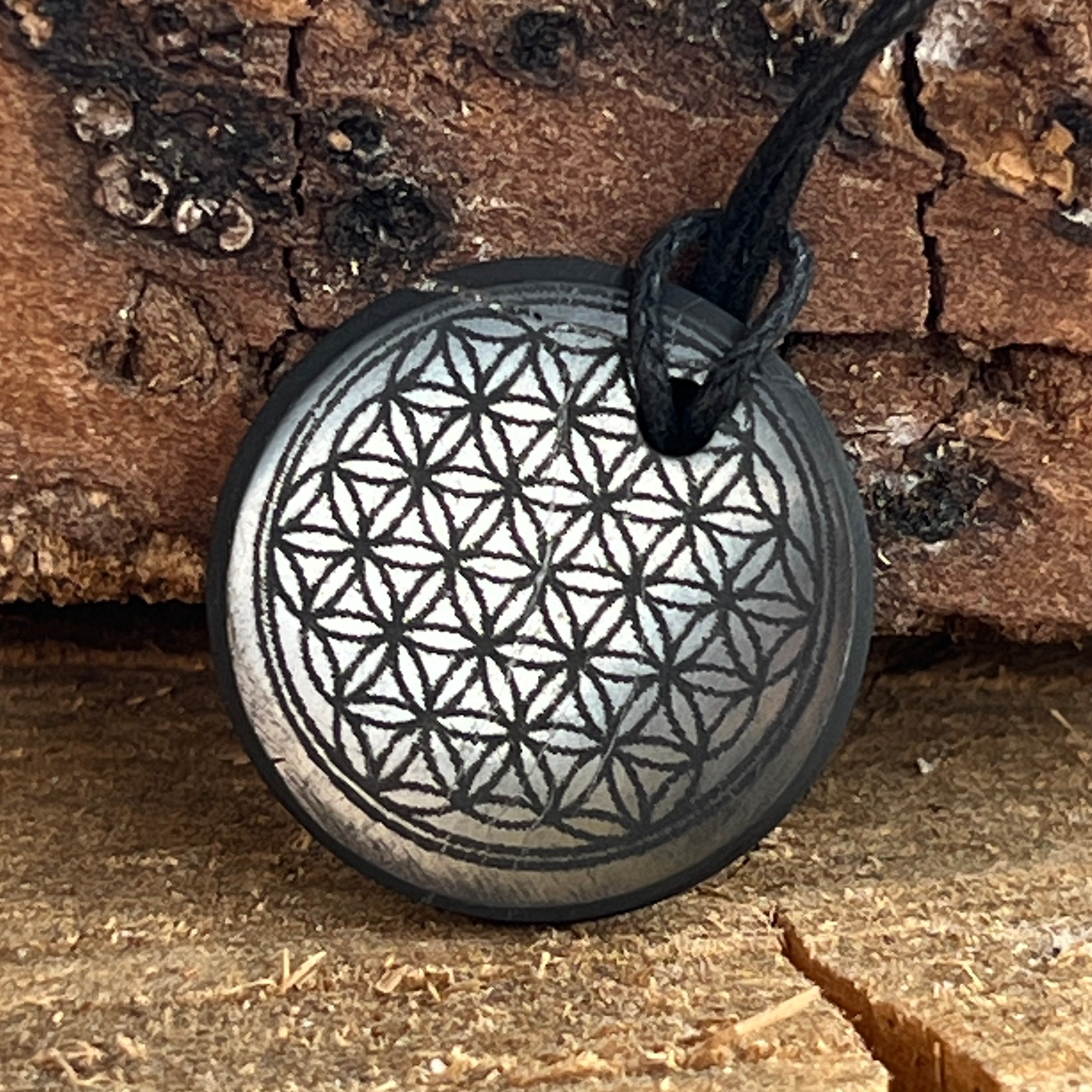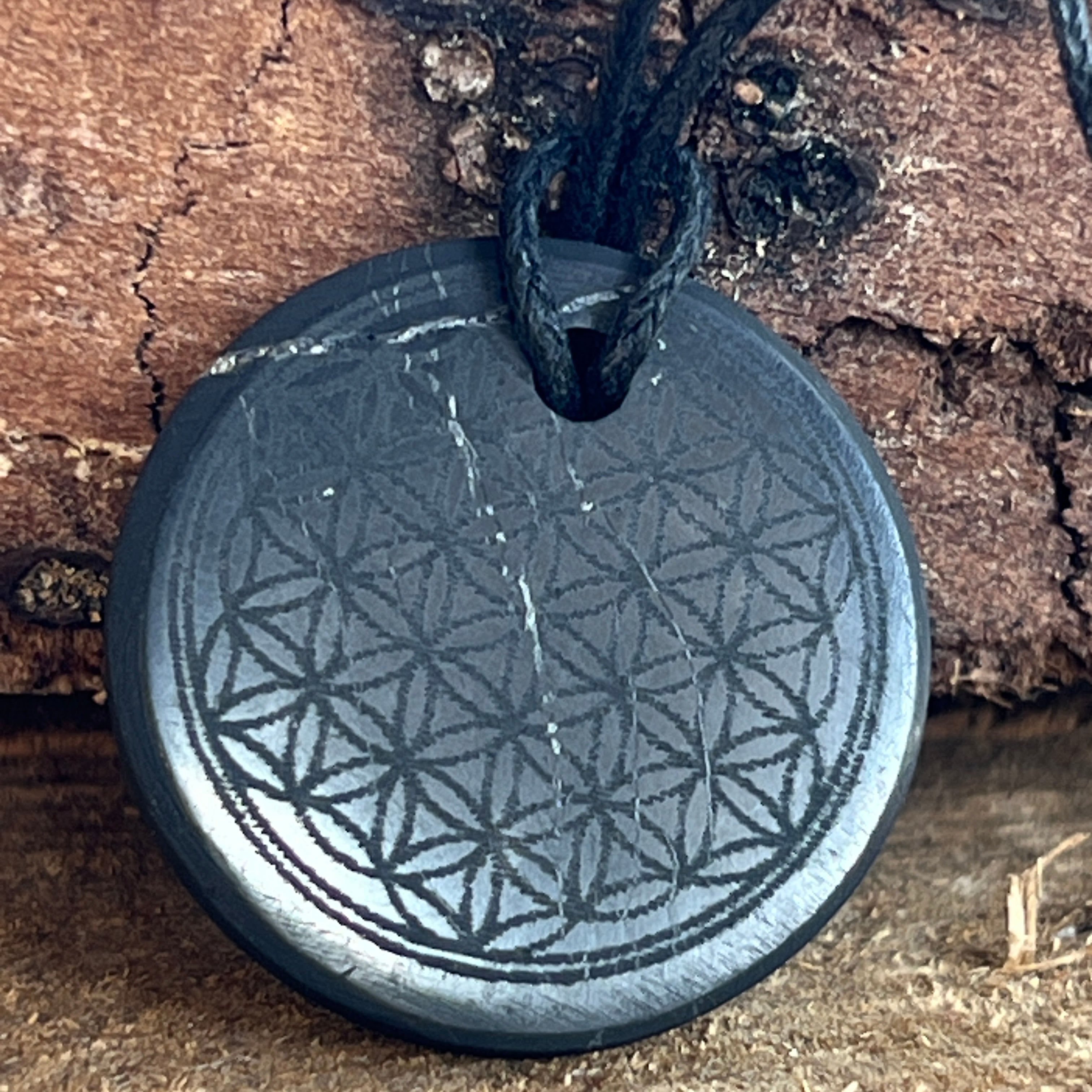 Viseld ezt Shungita medál, Élet Virága mint egy fénykör, ami körülölel és megvéd téged.