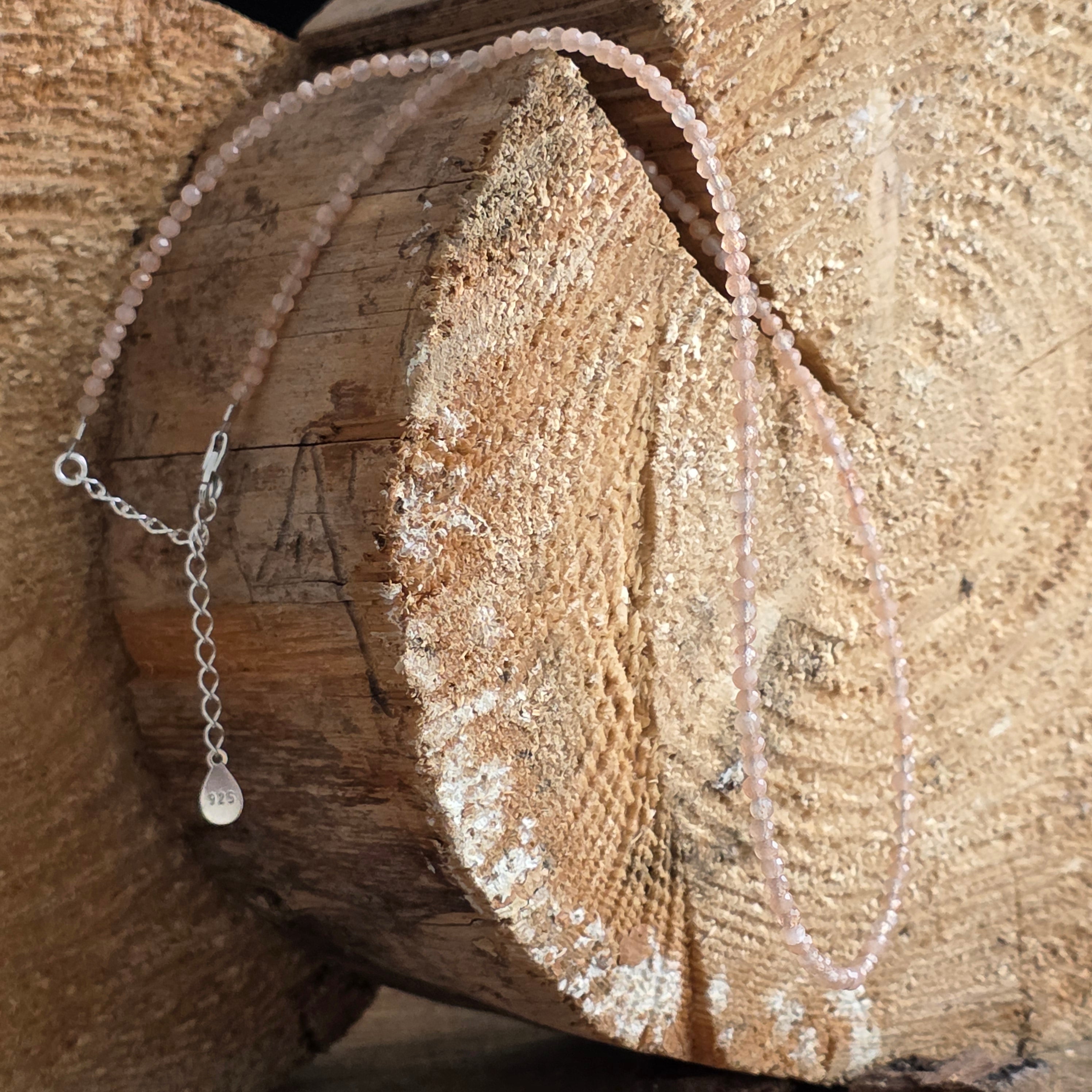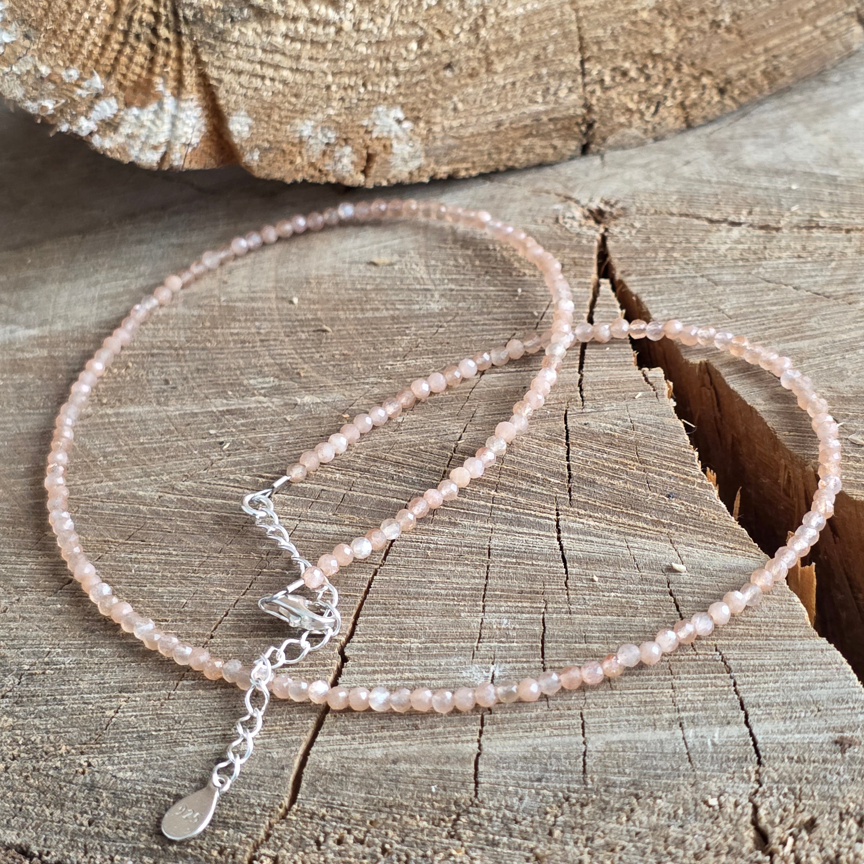 Egy finom nyaklánc, mint a mozgásba fogott fénycsóva. A 2,5 mm-es csiszolt természetes napkő meleg ragyogást áraszt, finom arany és narancs csillogásokkal, mintha a szél szórta fénypor látszatát keltené. A minimalista és kifinomult design tökéletessé teszi önállóan való viselésre, vagy finom kombinációban más ezüst nyakláncokkal.