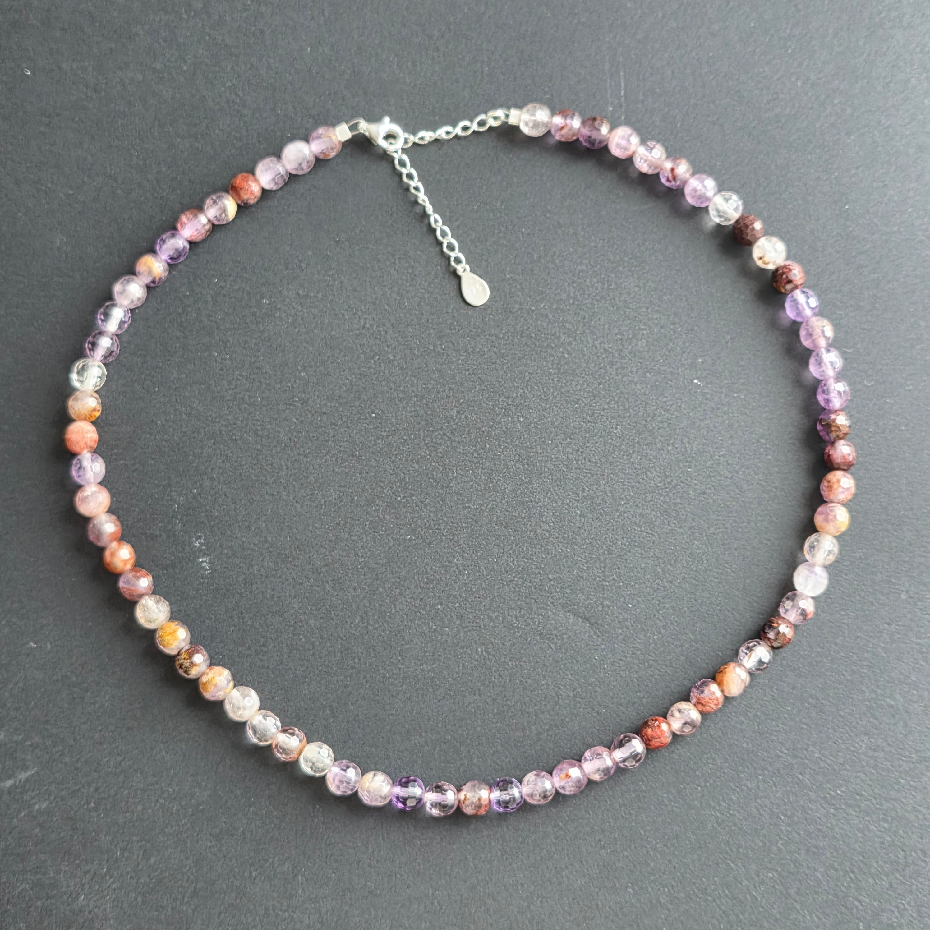 Anyagok: Természetes Super Seven, 6 mm-es csiszolt gyöngyök, 925 ezüst