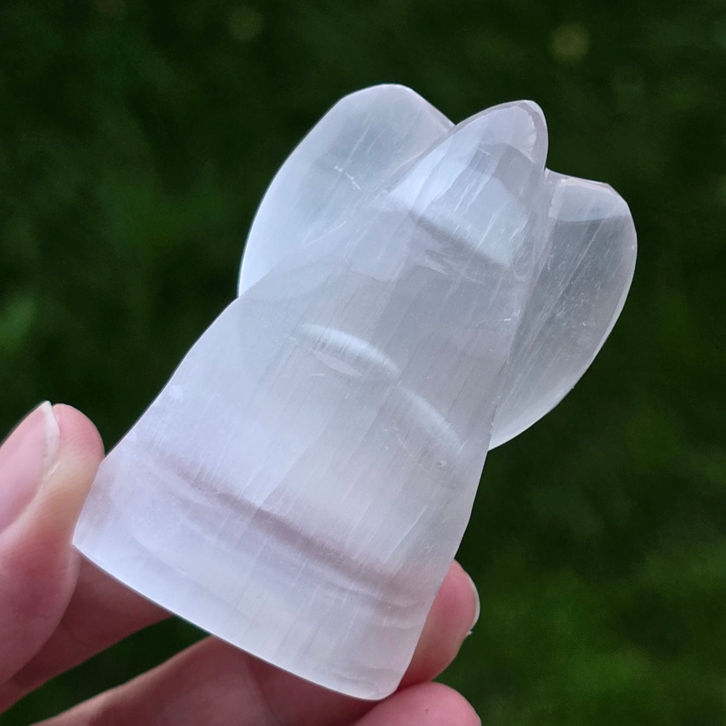 A szelenit angyal az egyik legfinomabb és legfényesebb szobor, amely egy ásványgyűjteménybe elhelyezhető. A szelenit, amelyről ismert a finom, majdnem éteri ragyogása, egy kristály, amely mindig úgy tűnik, hogy őriz magában egy darabka fényt. Ebben az angyal formájában a kő több, mint egy ásvány: a védelem, a tisztánlátás és a belső béke szimbólumává válik.