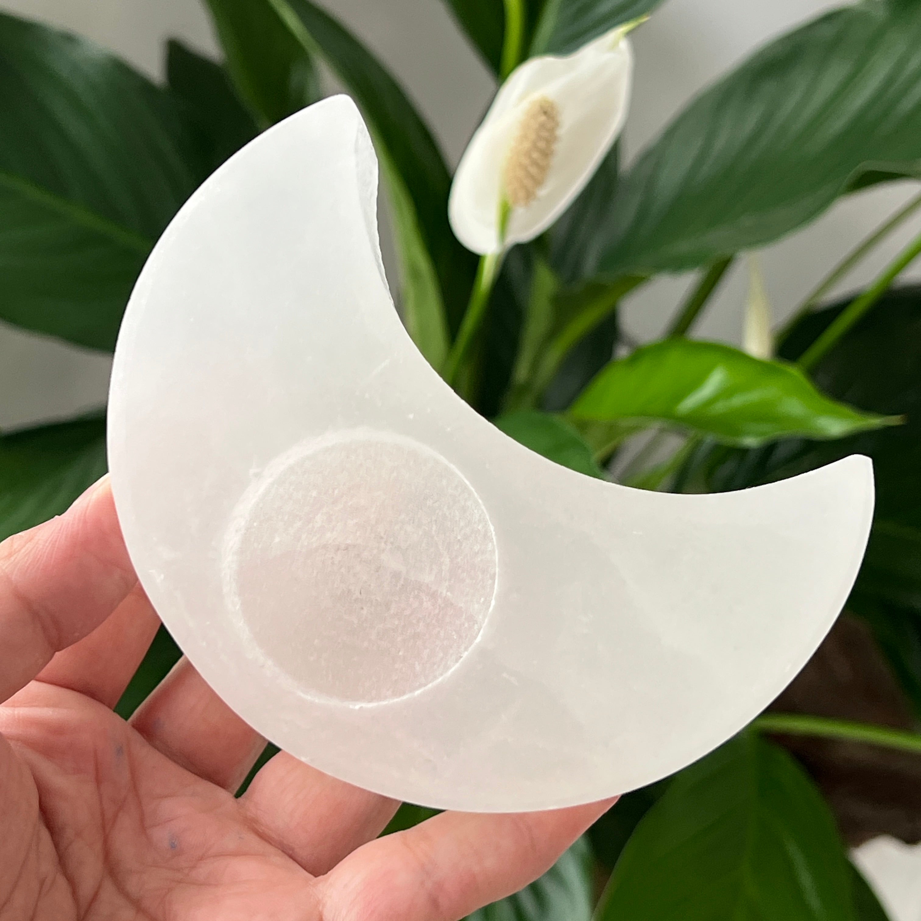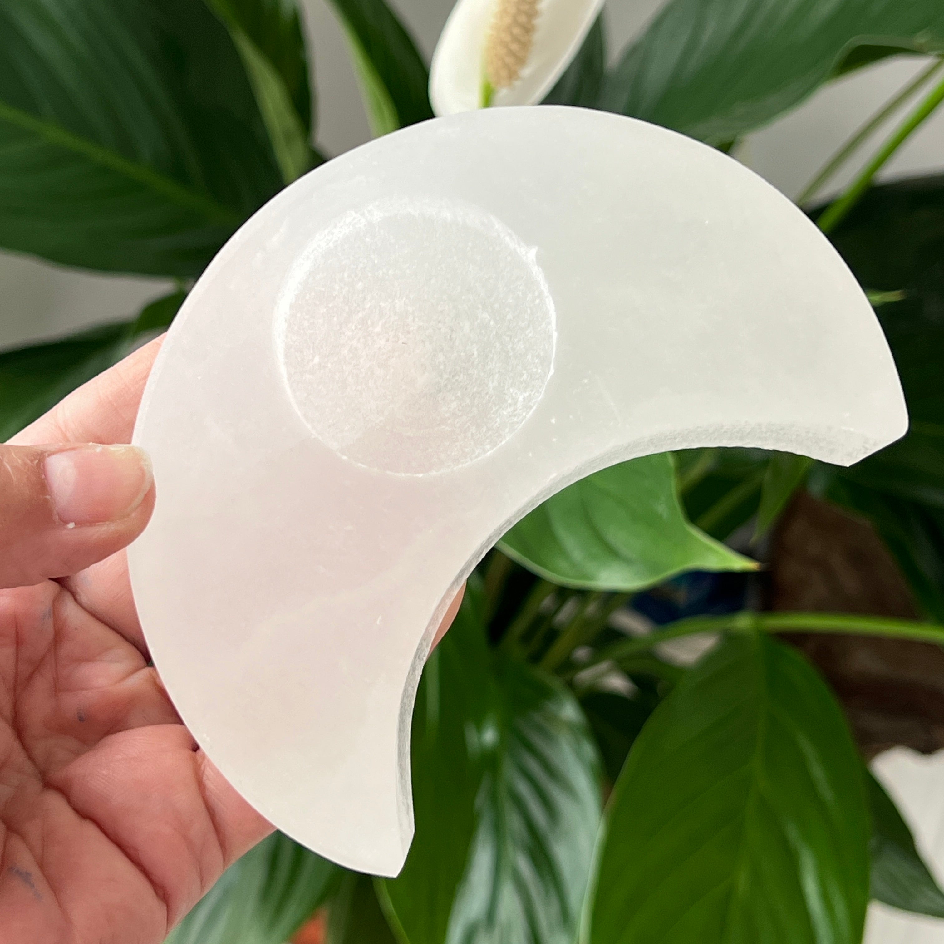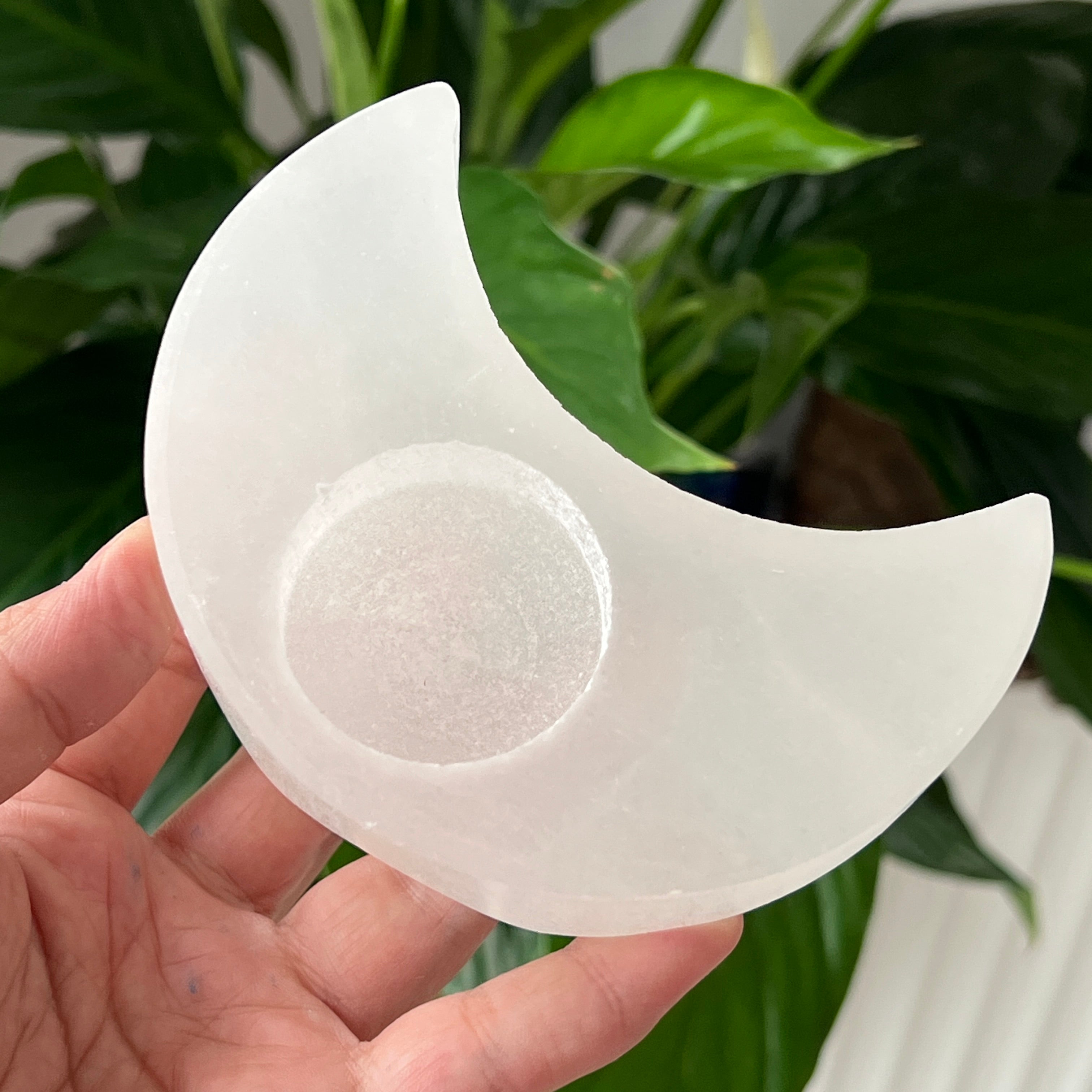 Válaszd a hold alakú szelenit gyertyatartót, hogy tisztító energiát és harmonikus légkört hozz a teredbe 🌙✨.