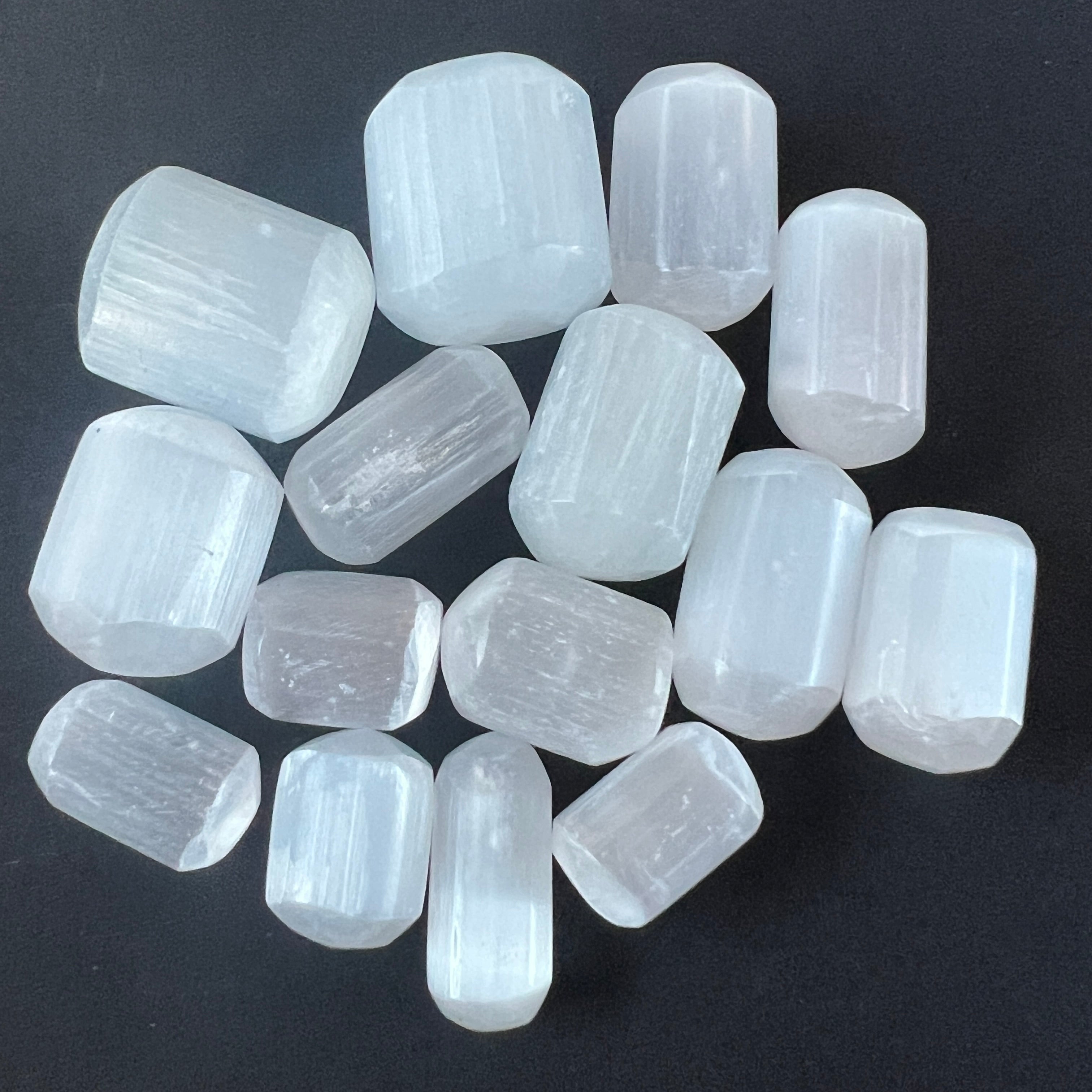Hengerelt szelenit kő, mérete 2-3,5 cm. Kérjük, válassza ki a kívánt méretet. Az ár egy darabra vonatkozik.