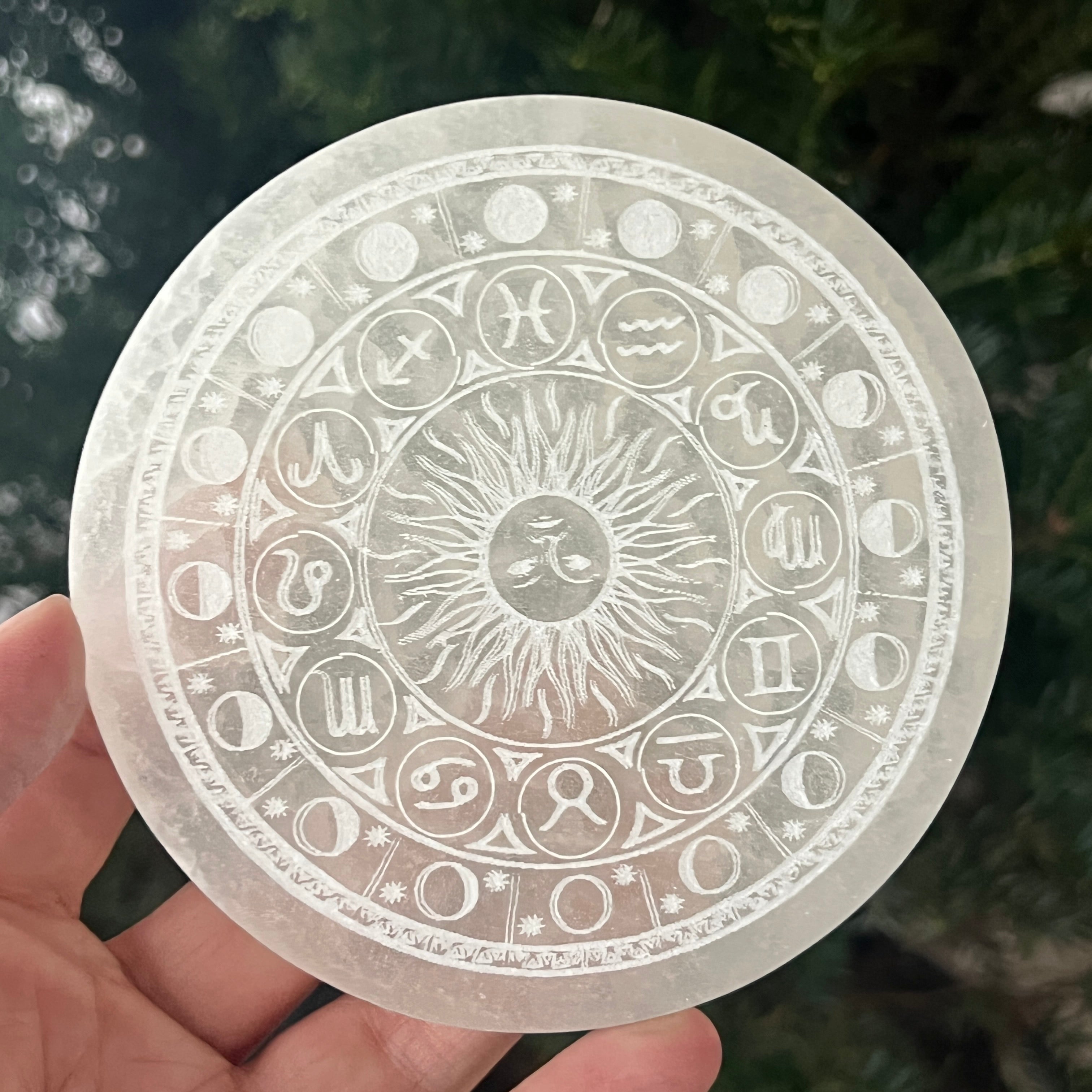 Válaszd ezt a Szelénit tányért csillagjegy szimbólumokkal , mint tisztító eszközt és az univerzum ritmusához való újracsatlakozáshoz.