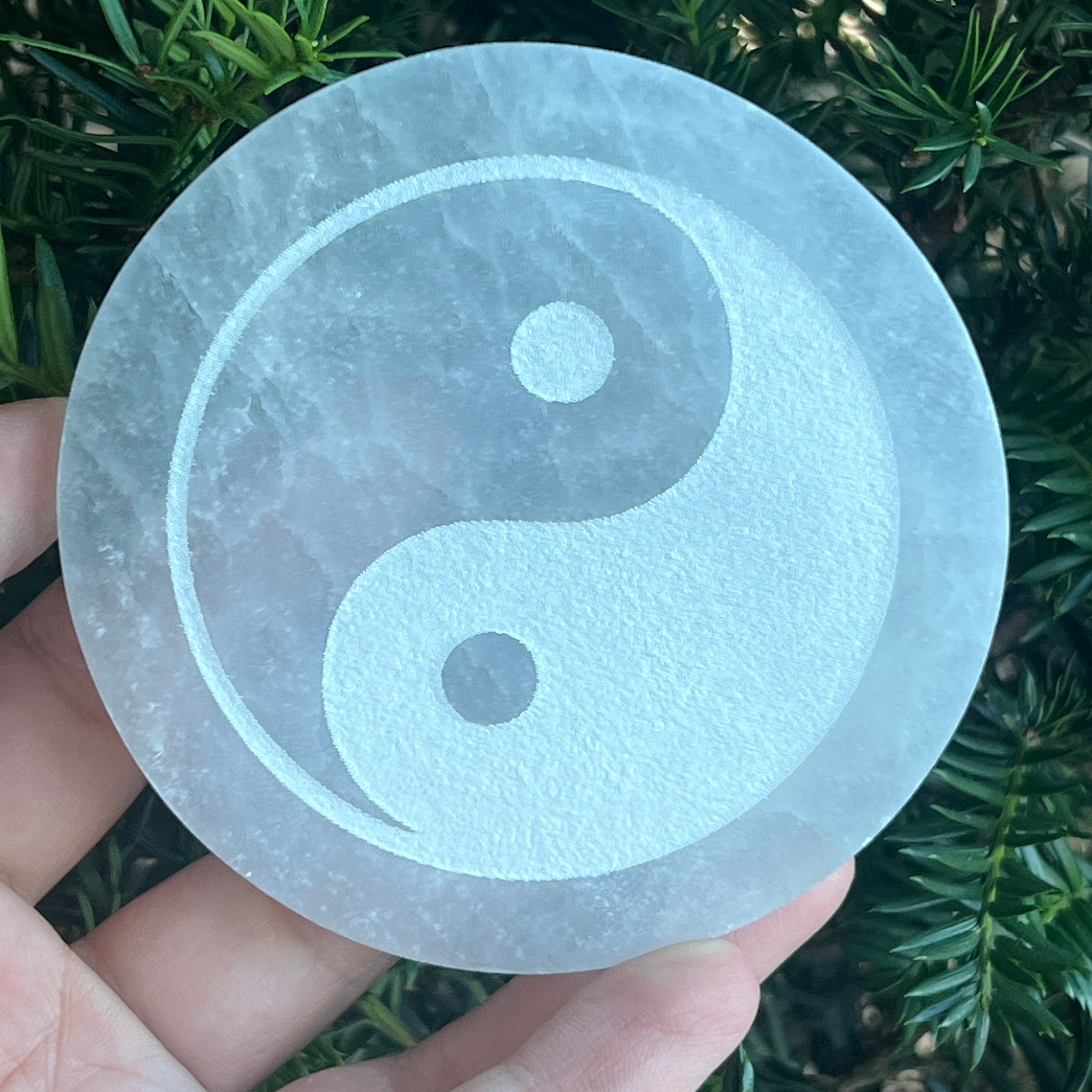 tökéletes kifejezése a fény és árnyék, a férfi és női energiák egyensúlyának az univerzumban. Természetes szelénitből kézzel faragott, ez a korong békét, harmóniát és a belső középpont érzését közvetíti. A szelénit, más néven „a tiszta fény köve”, értékelt a tér energiáinak tisztítására és megtisztítására való képessége miatt. A Yin Yang szimbólummal kombinálva, erőteljes eszközzé válik az érzelmi egyensúly visszaállításában, a mentális tisztaság elérésében és a belső harmónia megteremtésében.