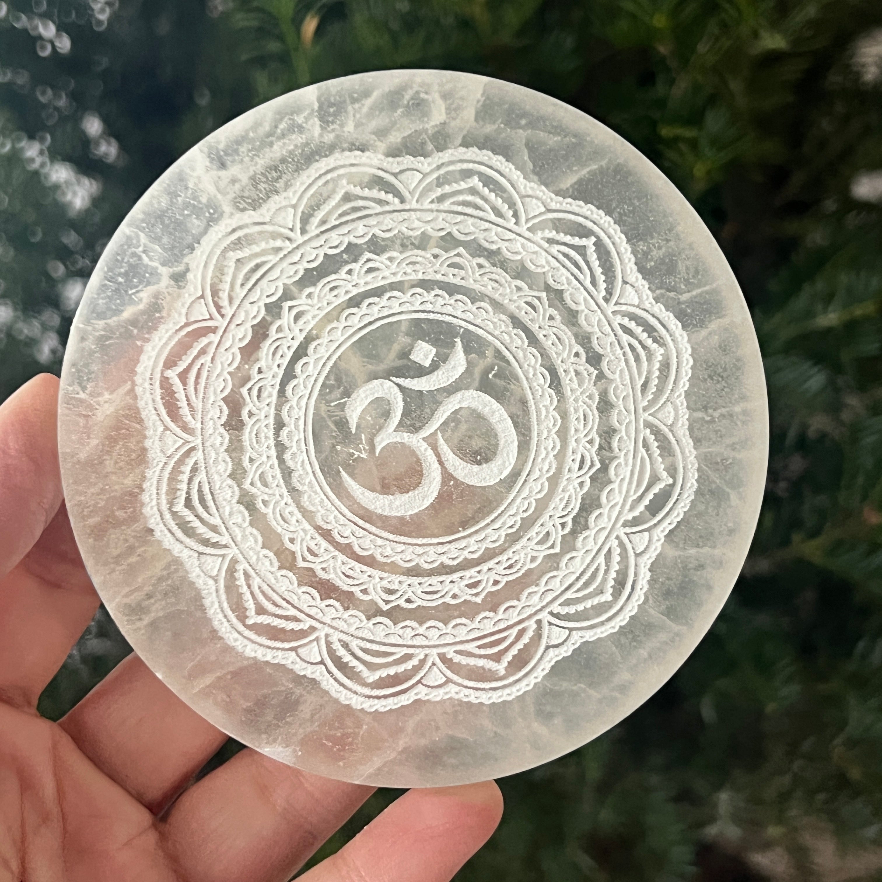 Válaszd ezt a Szelénit lemezt, Om mandalával hogy a tereidet fénnyel, egyensúllyal és belső békével teli hellyé változtasd ✨.