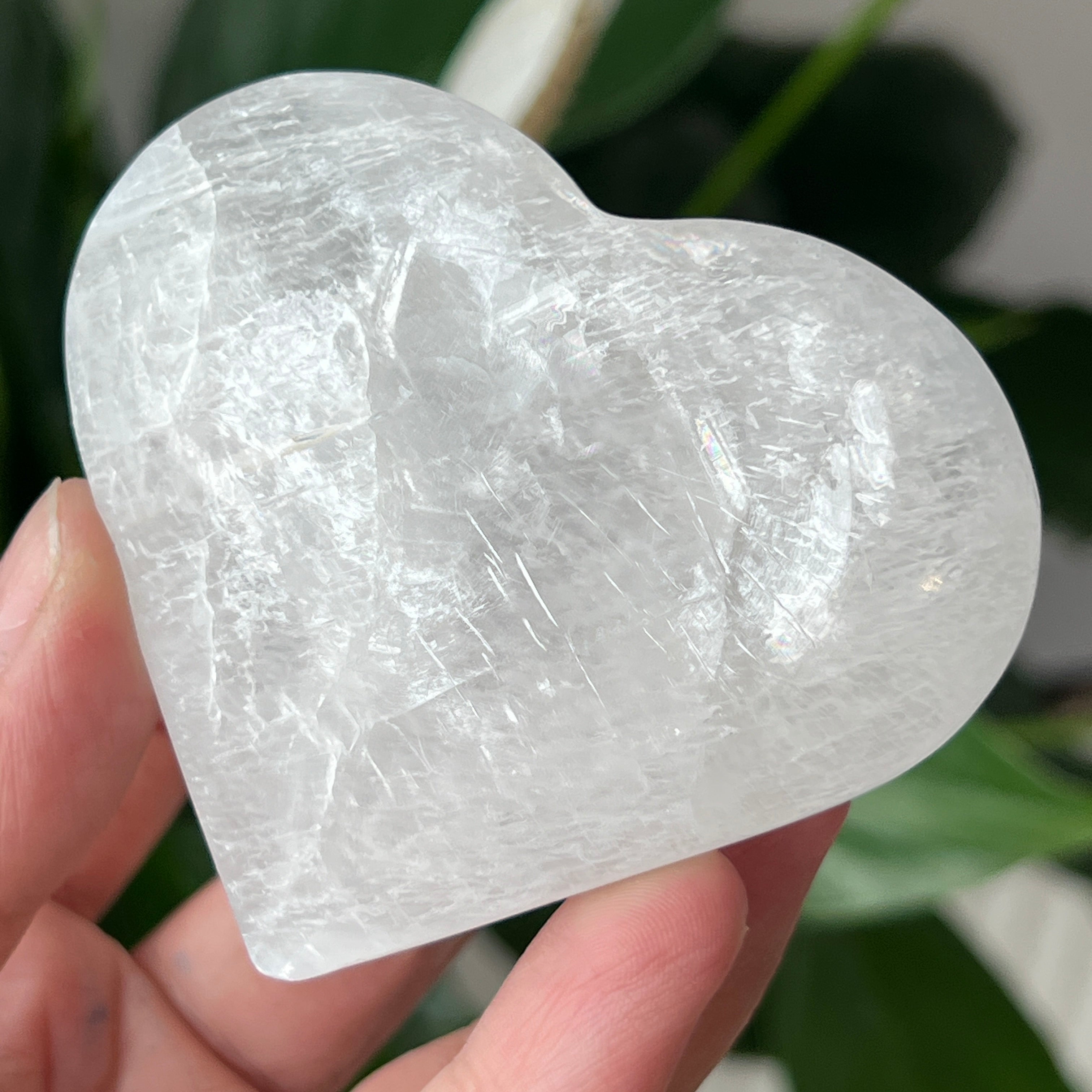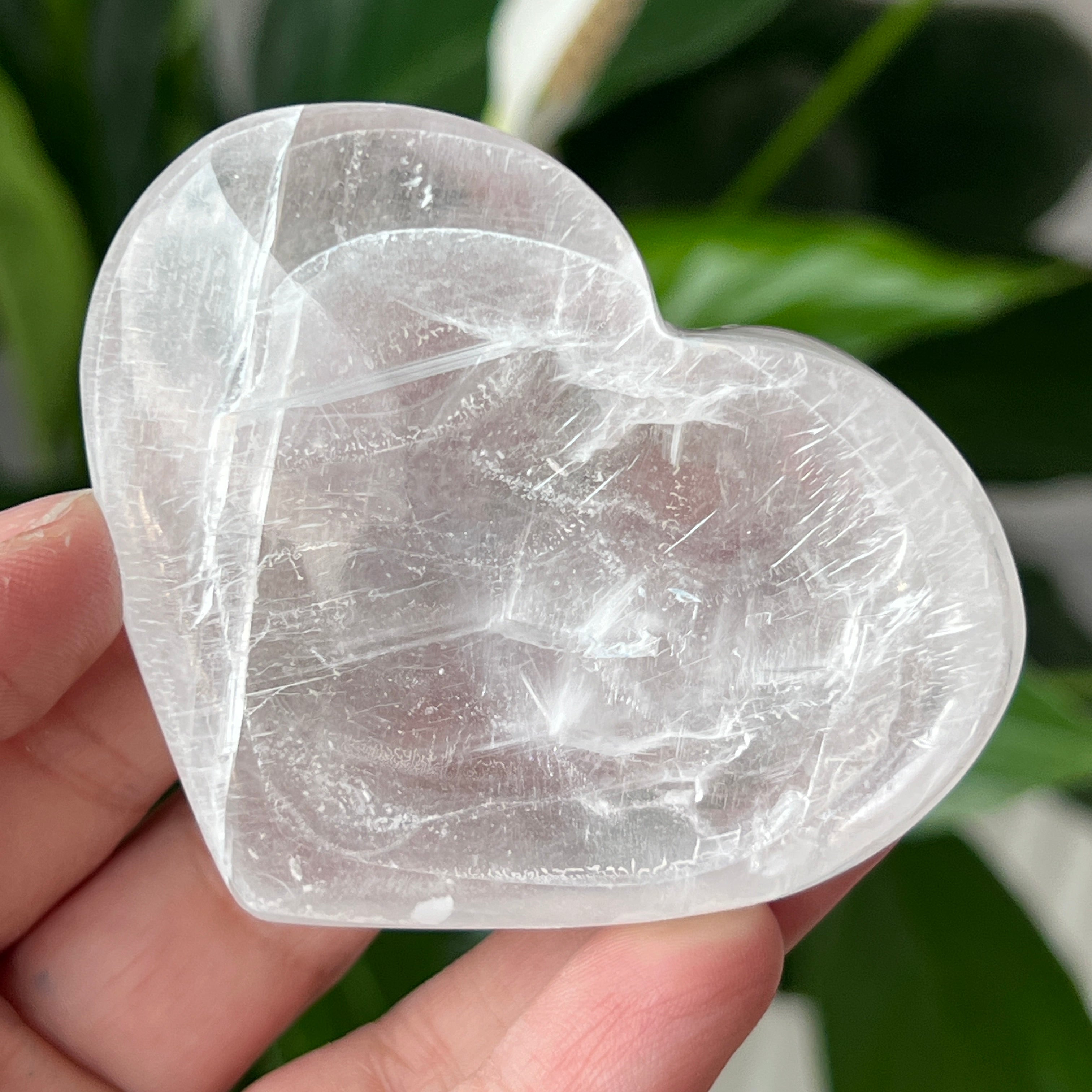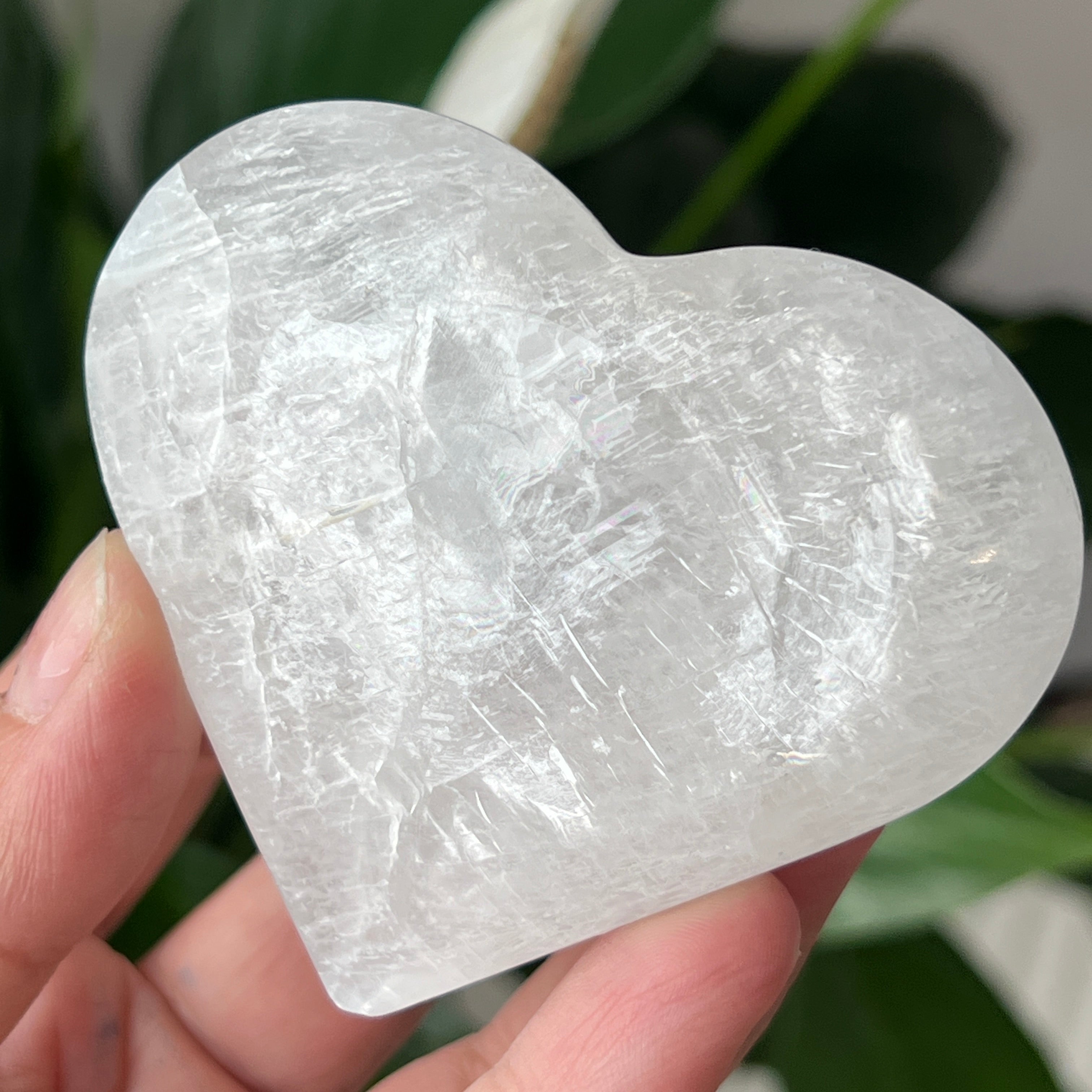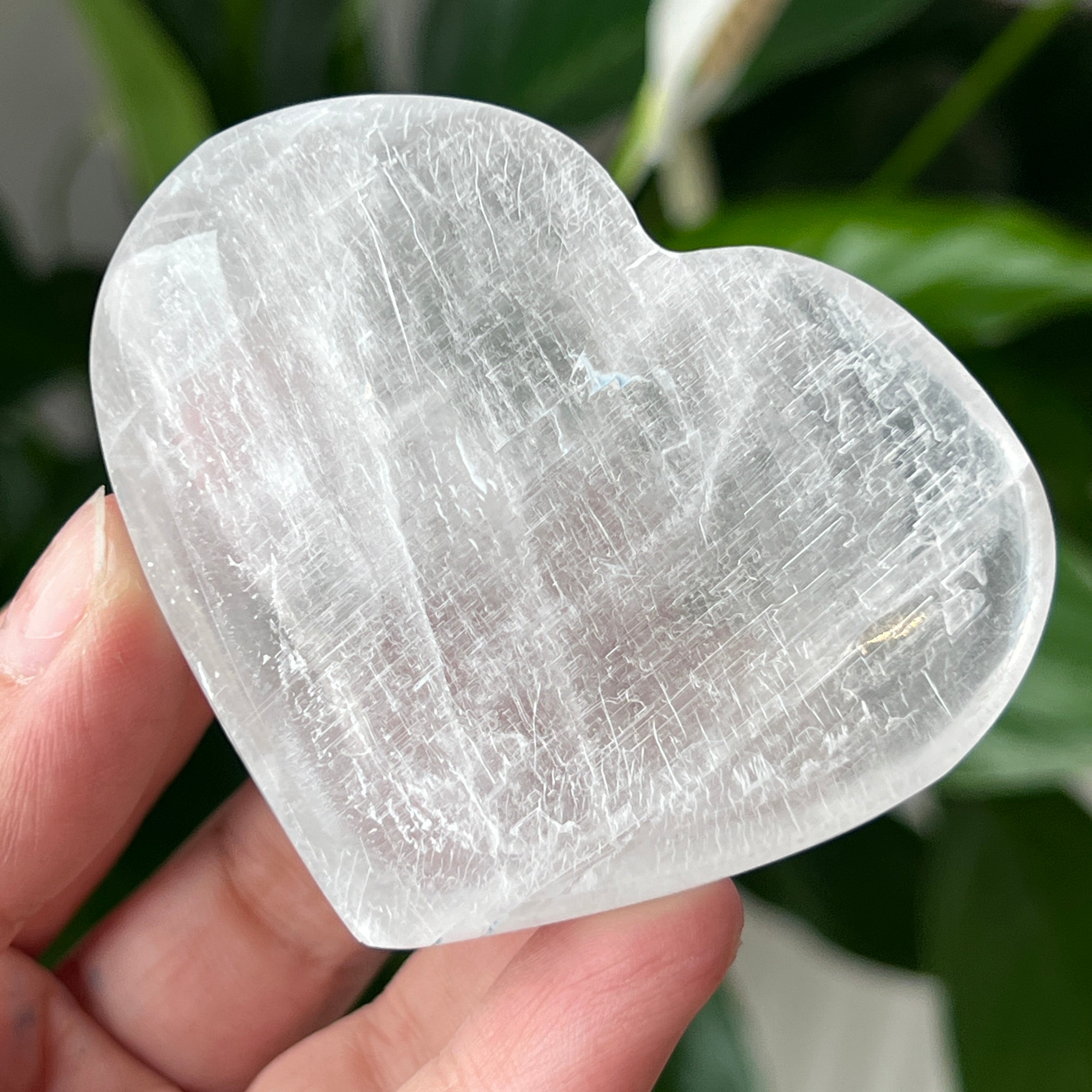 Ezt átlátszó szelenit szív A Marokkóból származó finom darab, üveges fényűvé csiszolva, amely felerősíti a kristály természetes szépségét. A szív alakja a szeretetet és a harmóniát szimbolizálja, a szelenit pedig elismert tisztító és nyugtató energiája, gyakran használják más kristályok megtisztítására, vagy békét hoznak egy térbe.