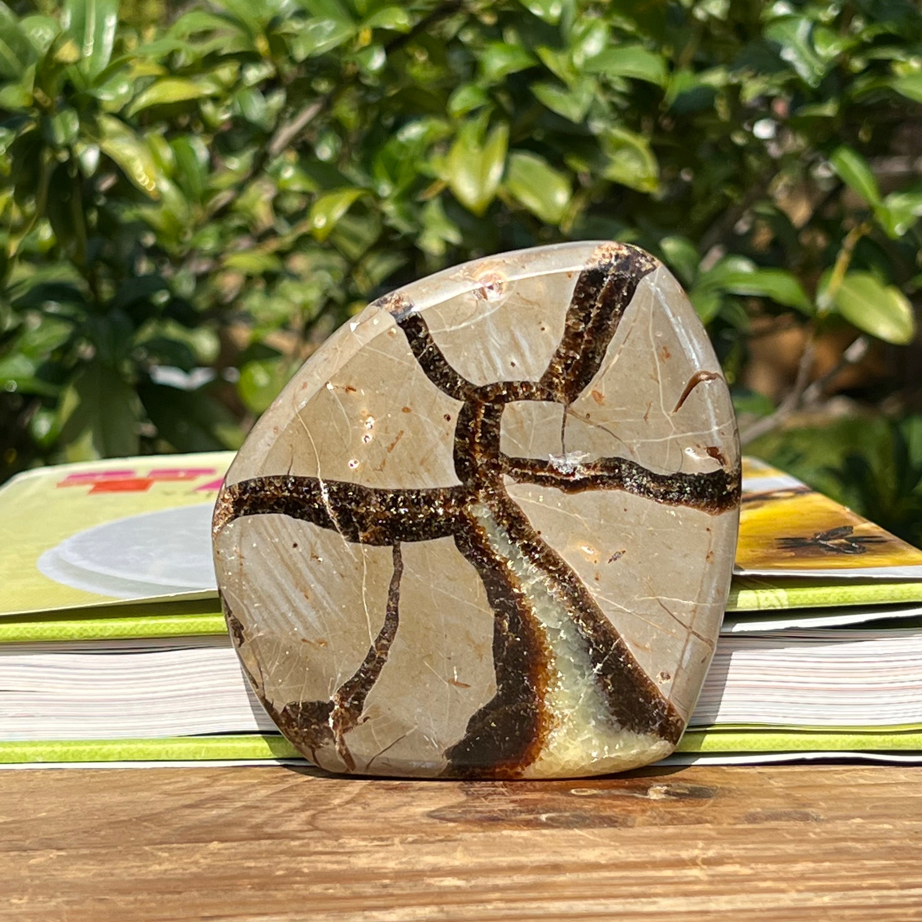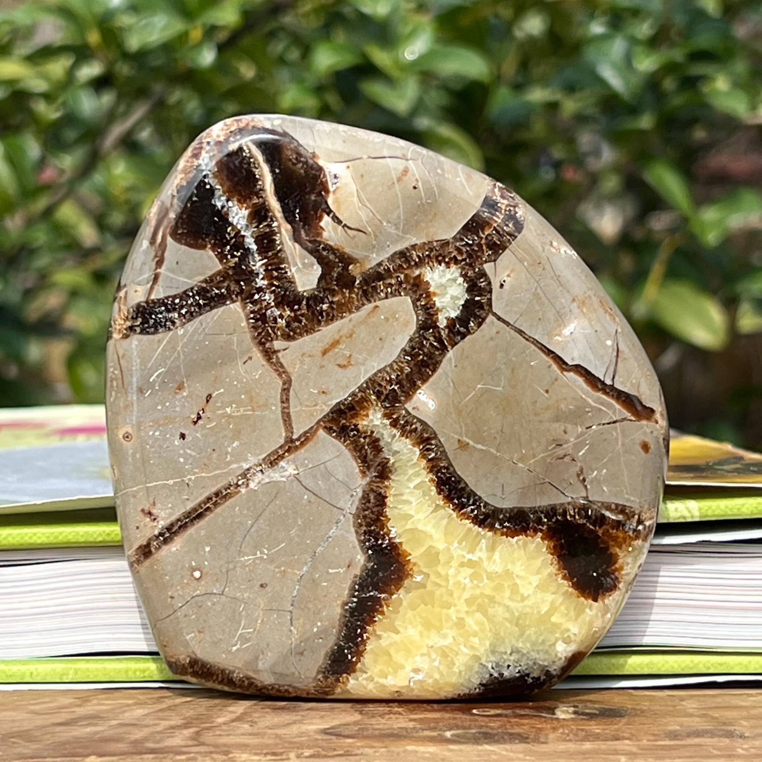 A Septaria kalcitból, limonitból, gipszből és baritból áll, amelyek egyedi szerepet alkotnak ebben a kőben, és különleges megjelenést kölcsönöznek neki.