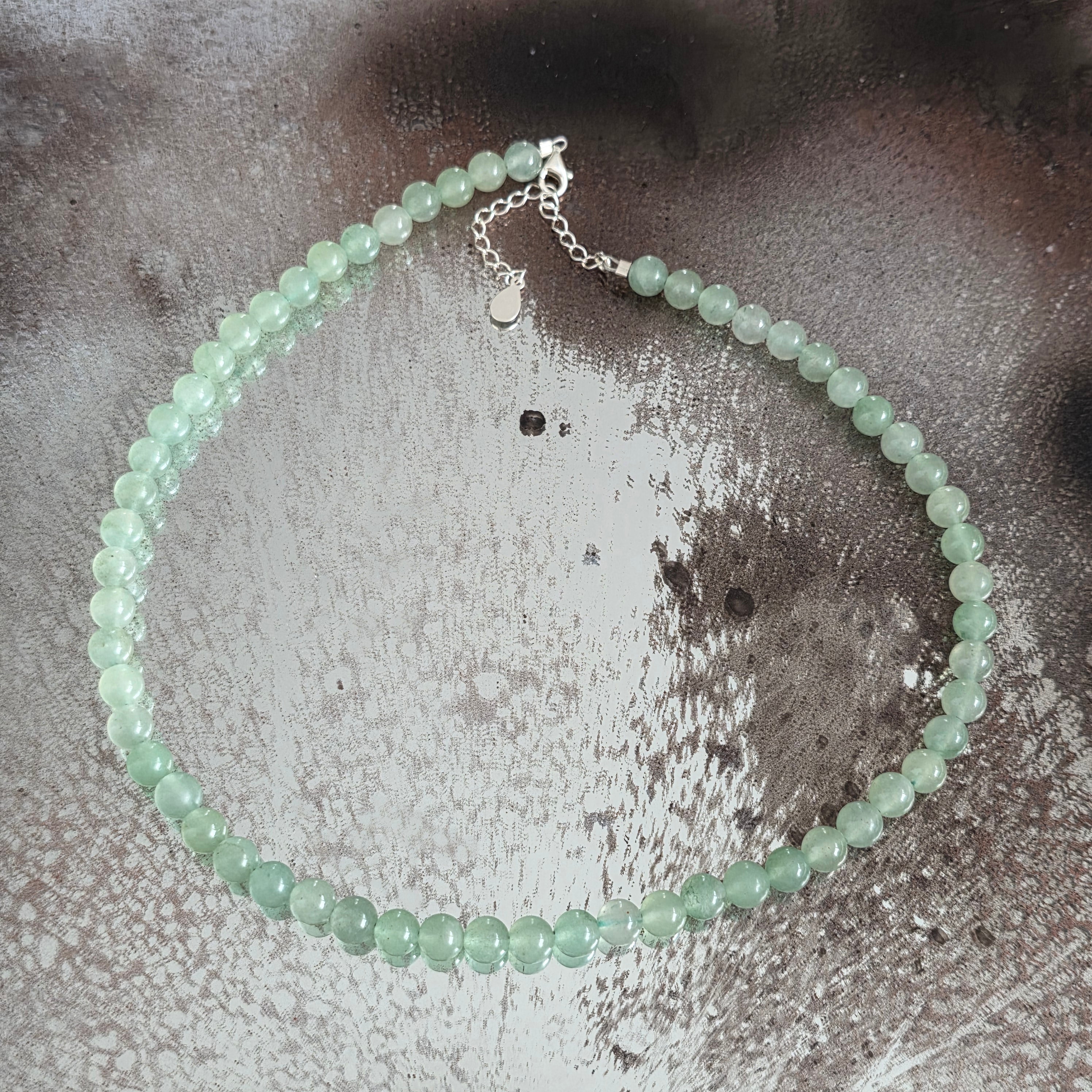 Anyagok: természetes zöld aventurin 6 mm, 925 ezüst