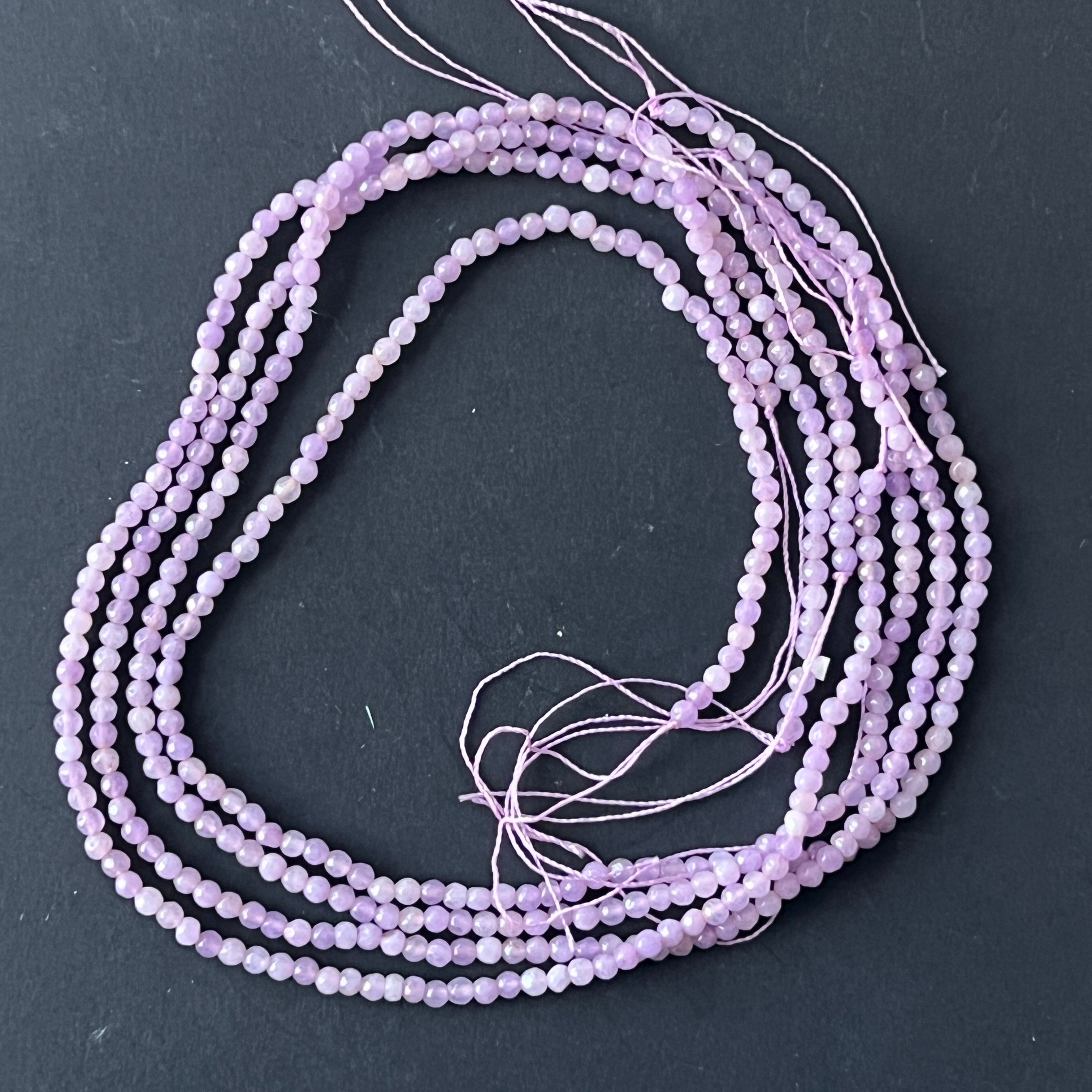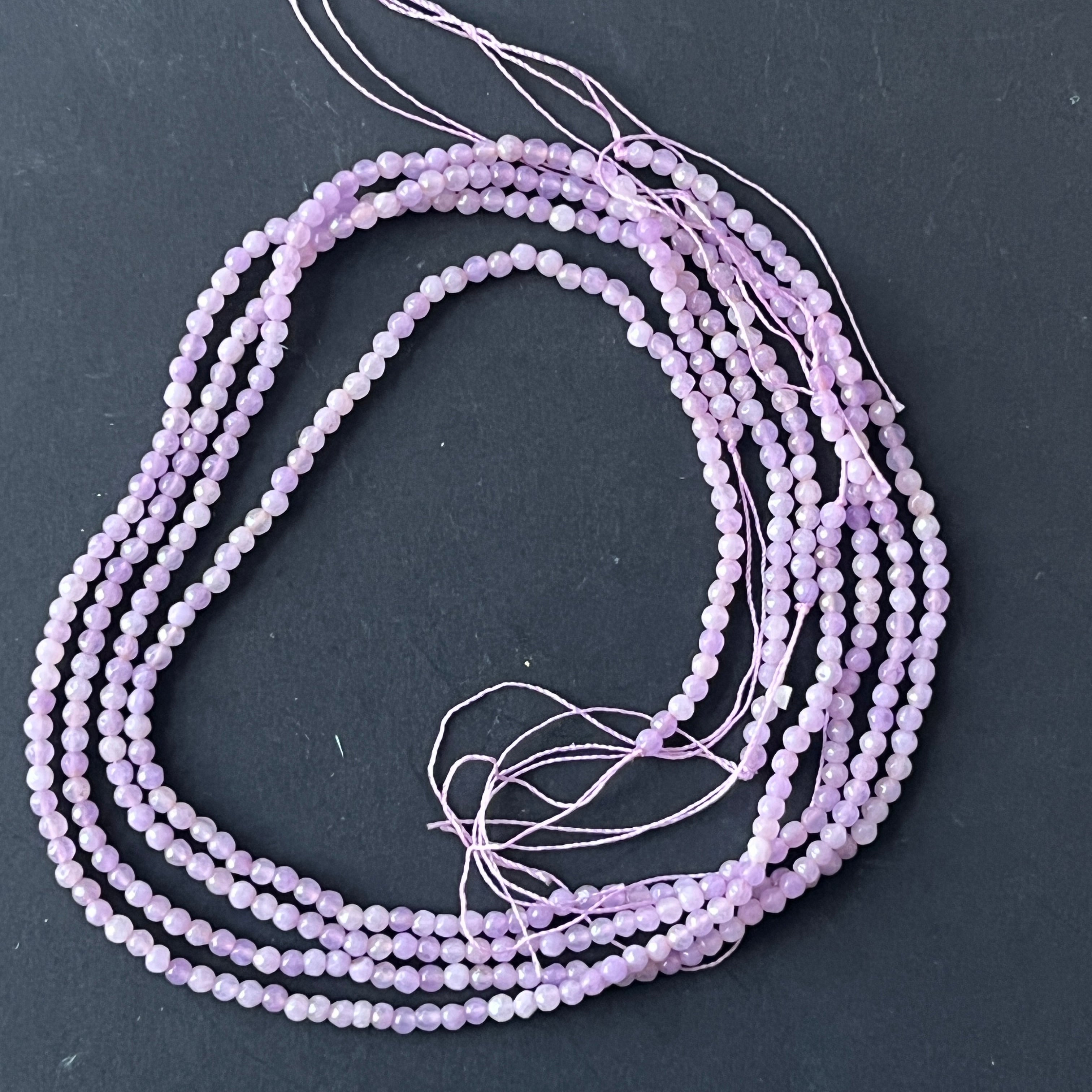 Színes féldrágakő gyöngysor, fazettált AGÁT LEVENDULA gömbökből