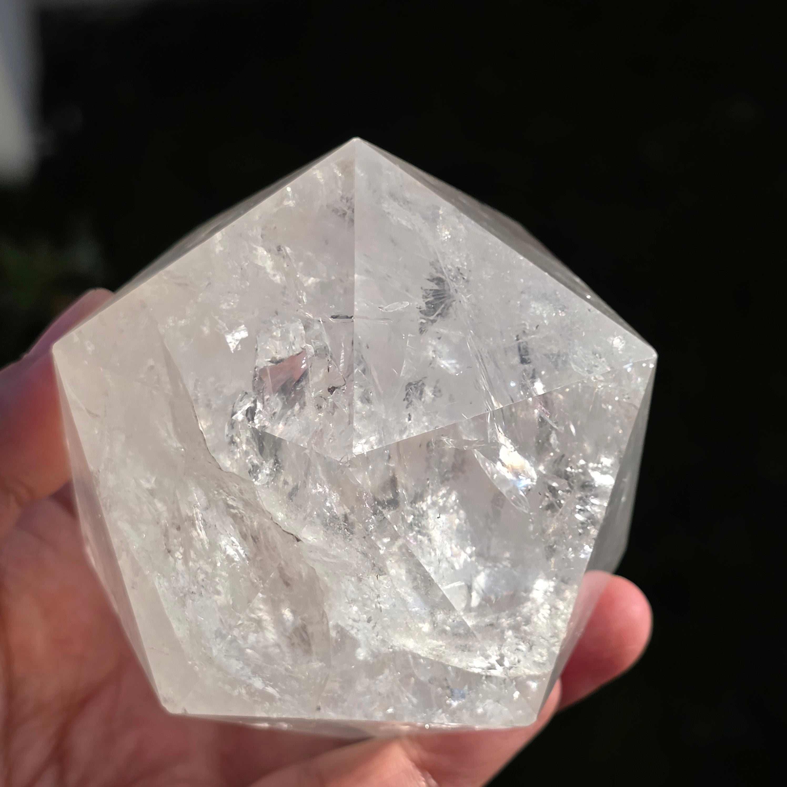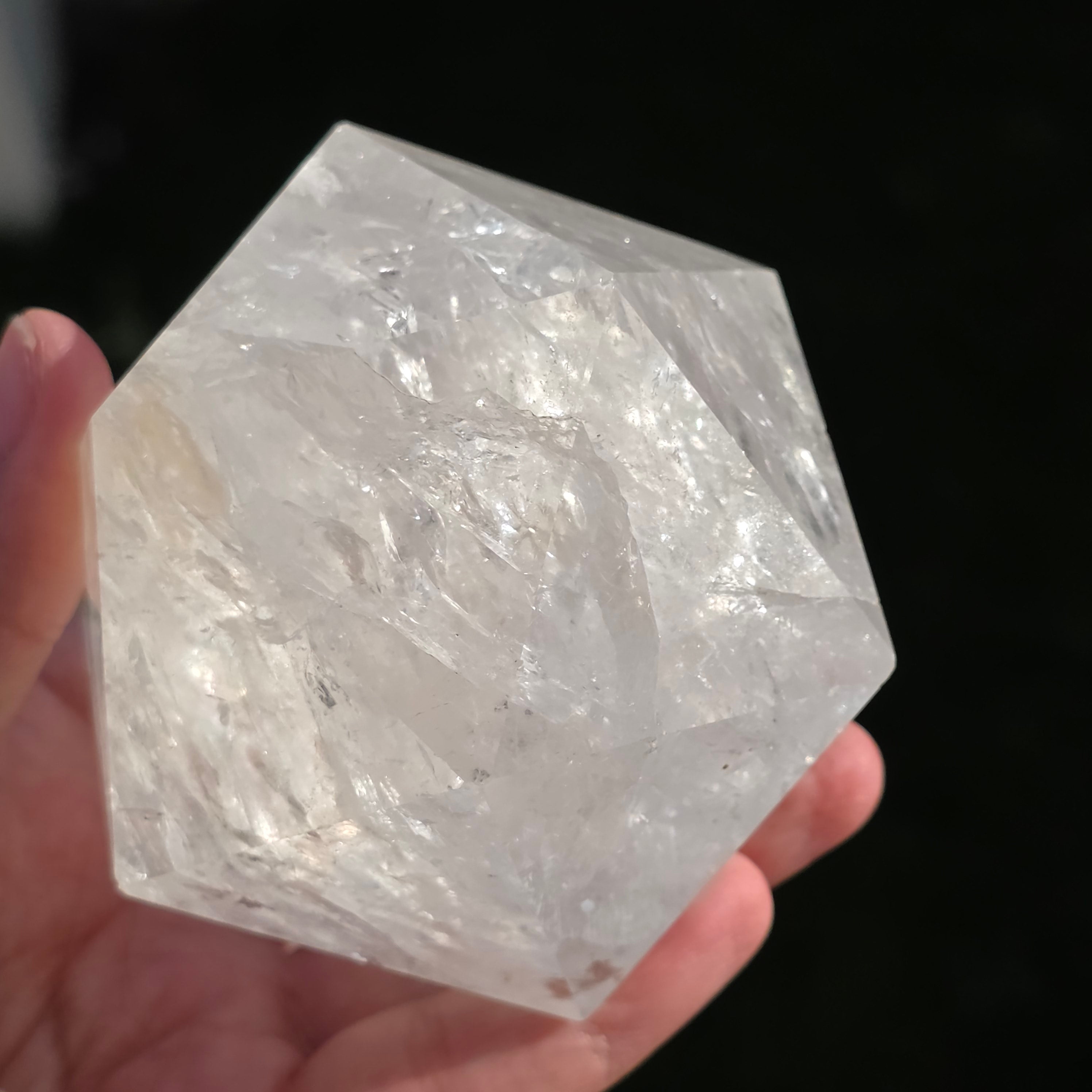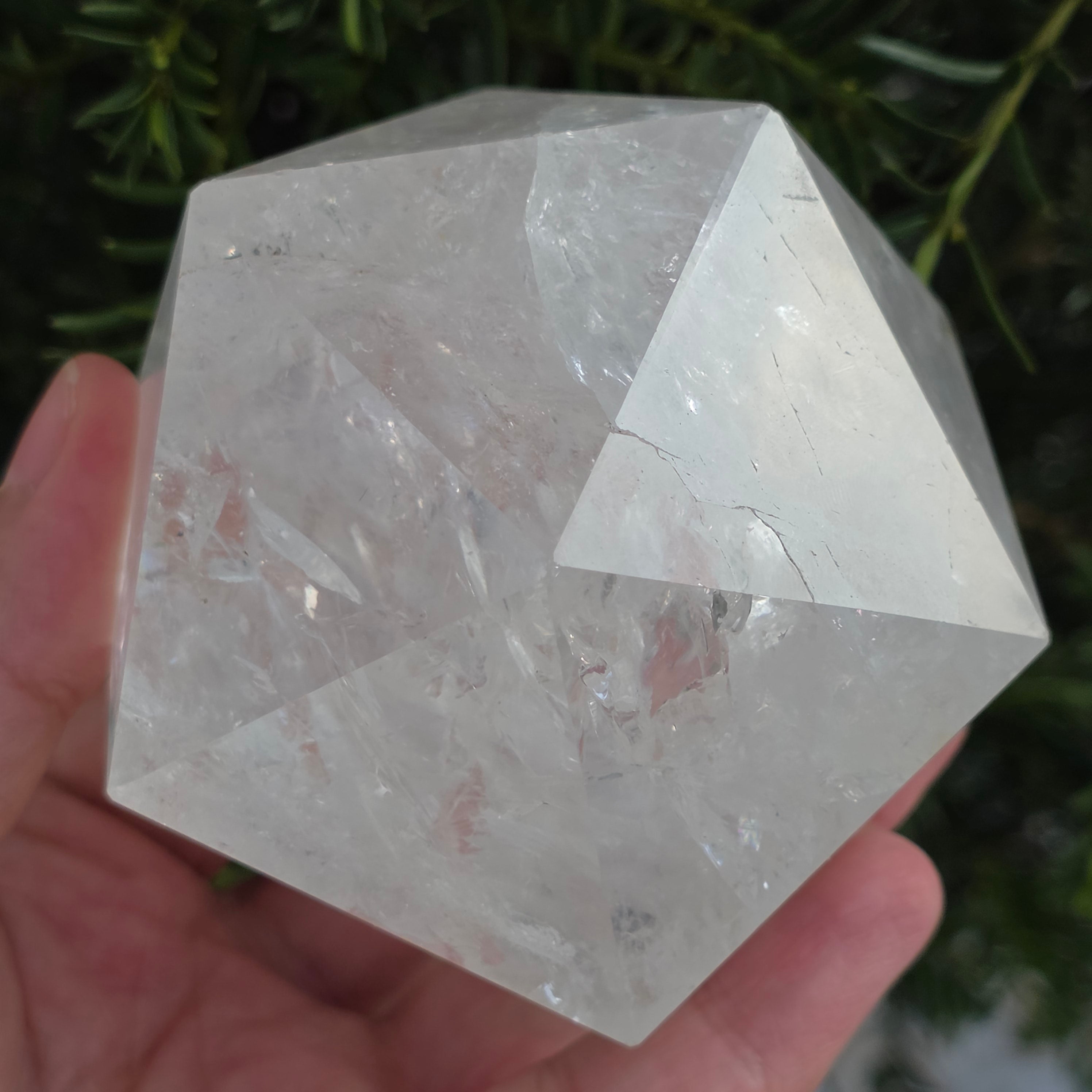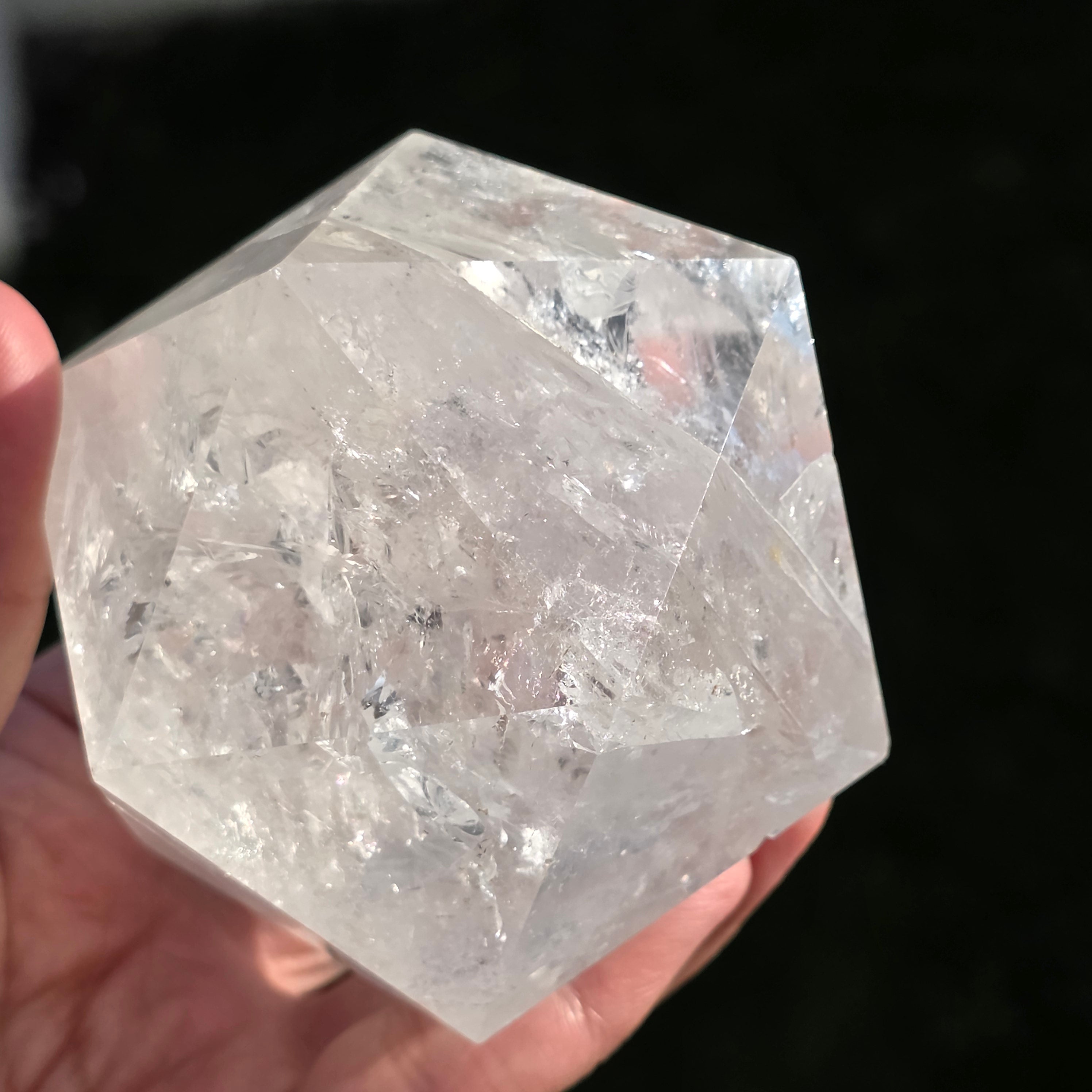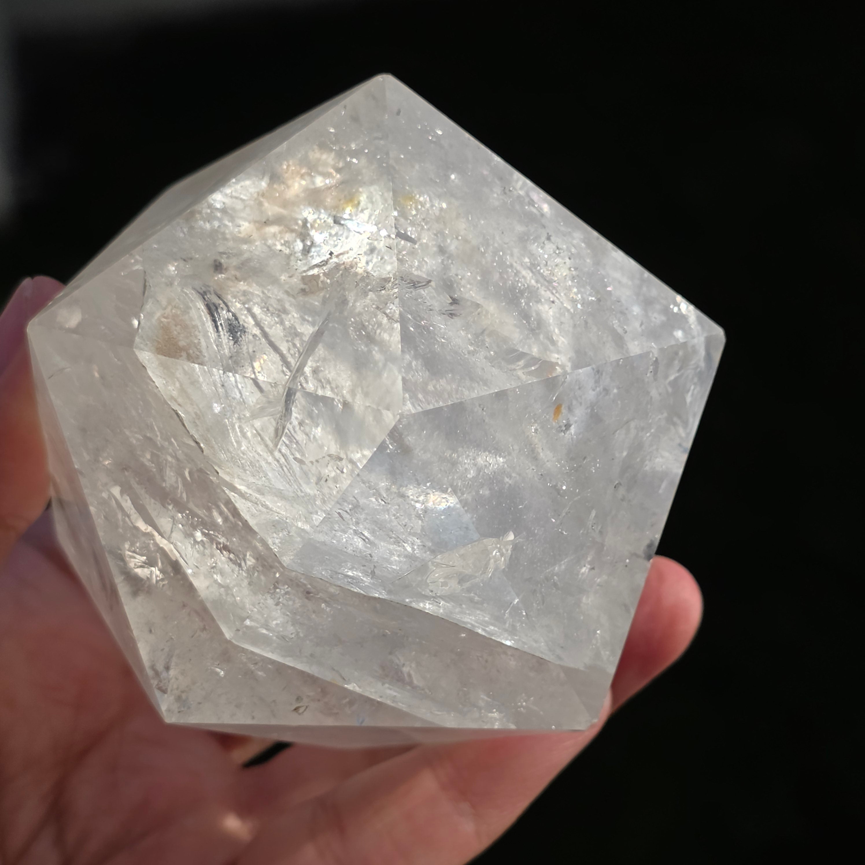 Hegyikristályból – a tisztaság és az energia felerősítésének kövéből – készült ikosaéder egyensúlyt, folyékonyságot és nyitottságot hoz a belső átalakulás felé.