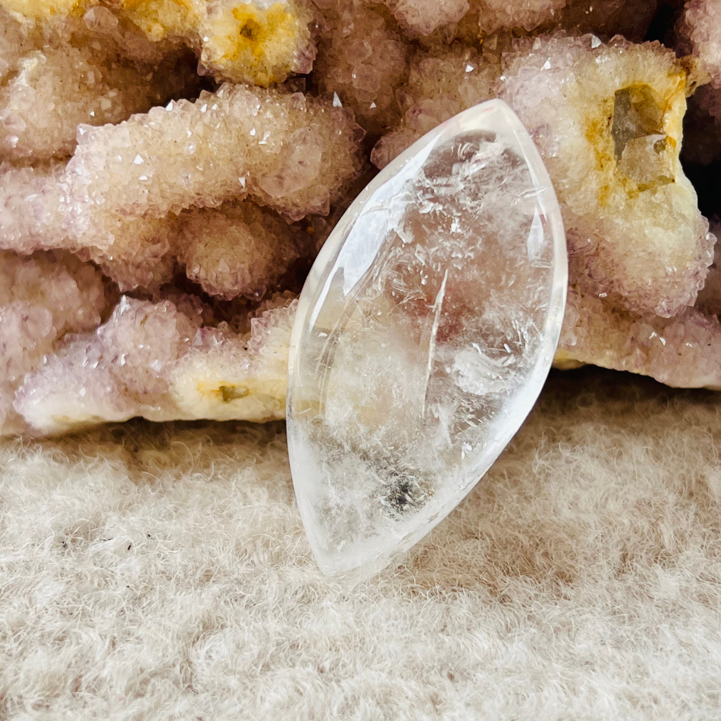 Descriere - Színtelen kvarc angyal könny/hegyikristály bukdácsolt kő/cabochon m3