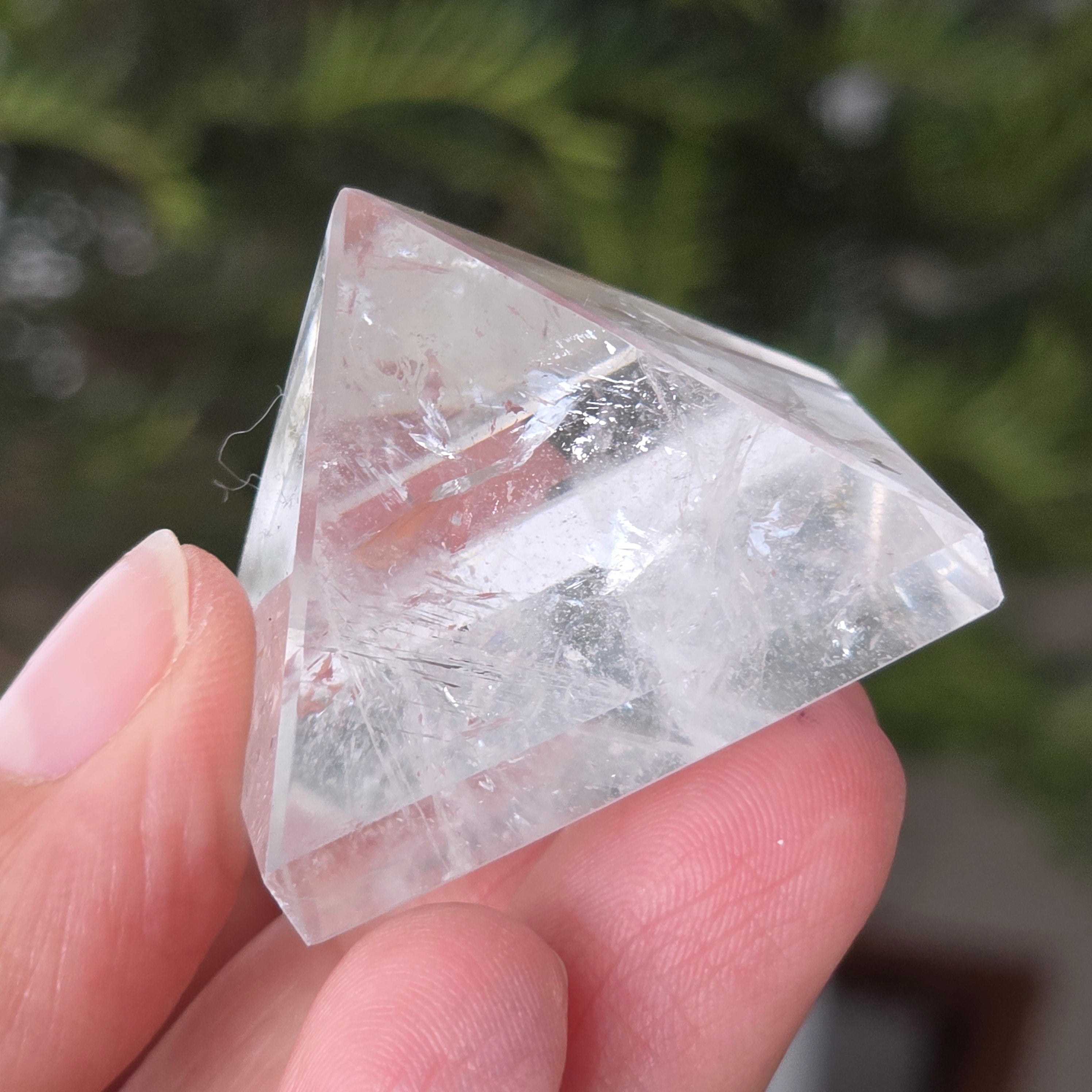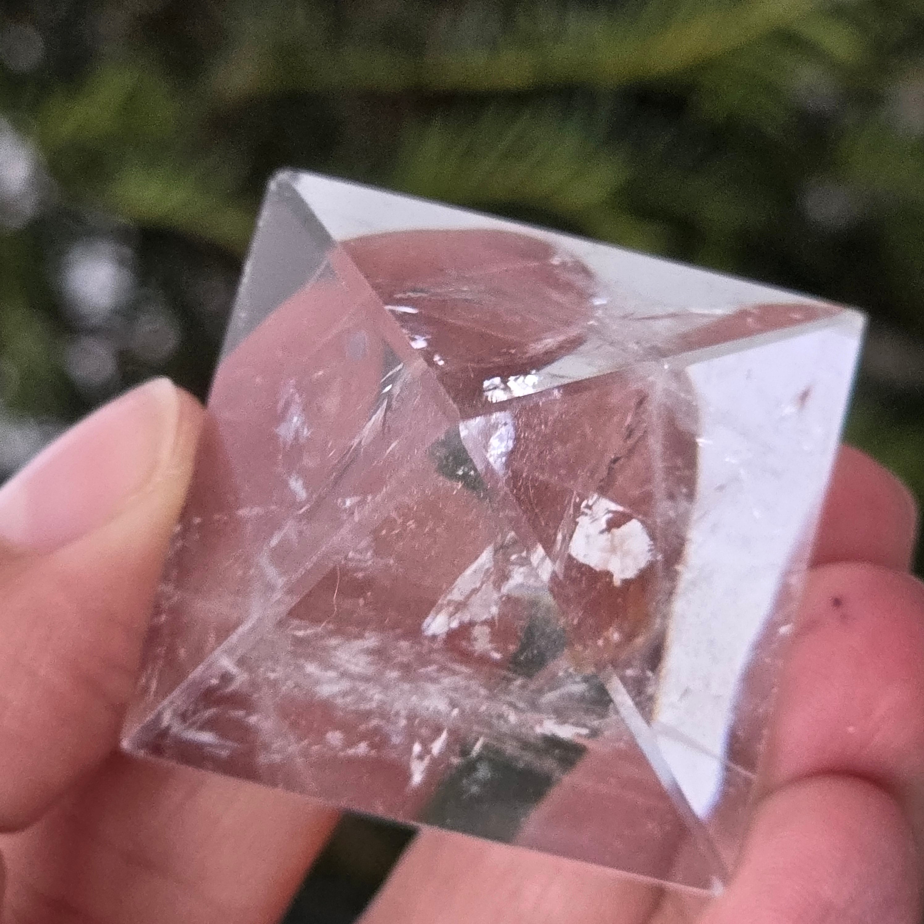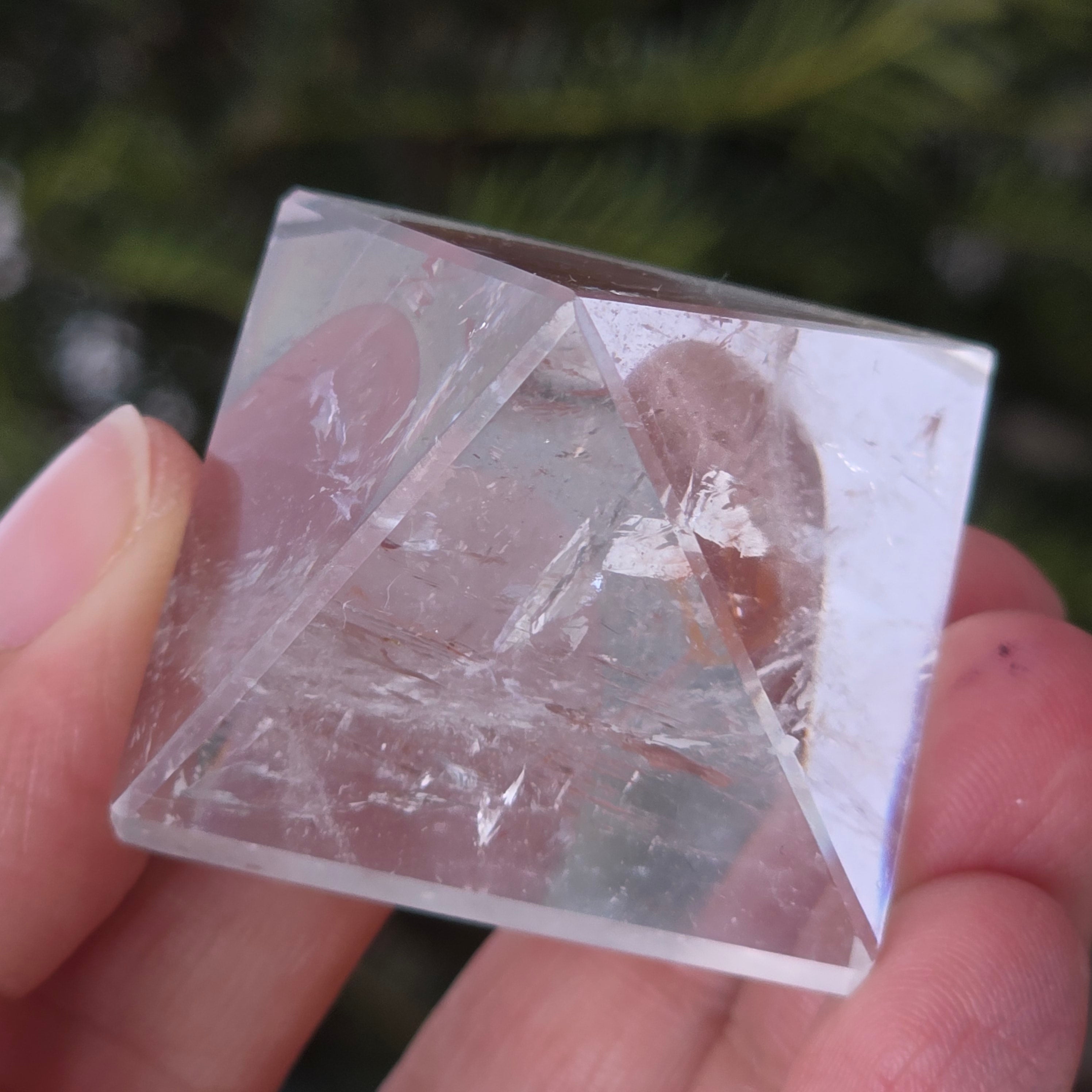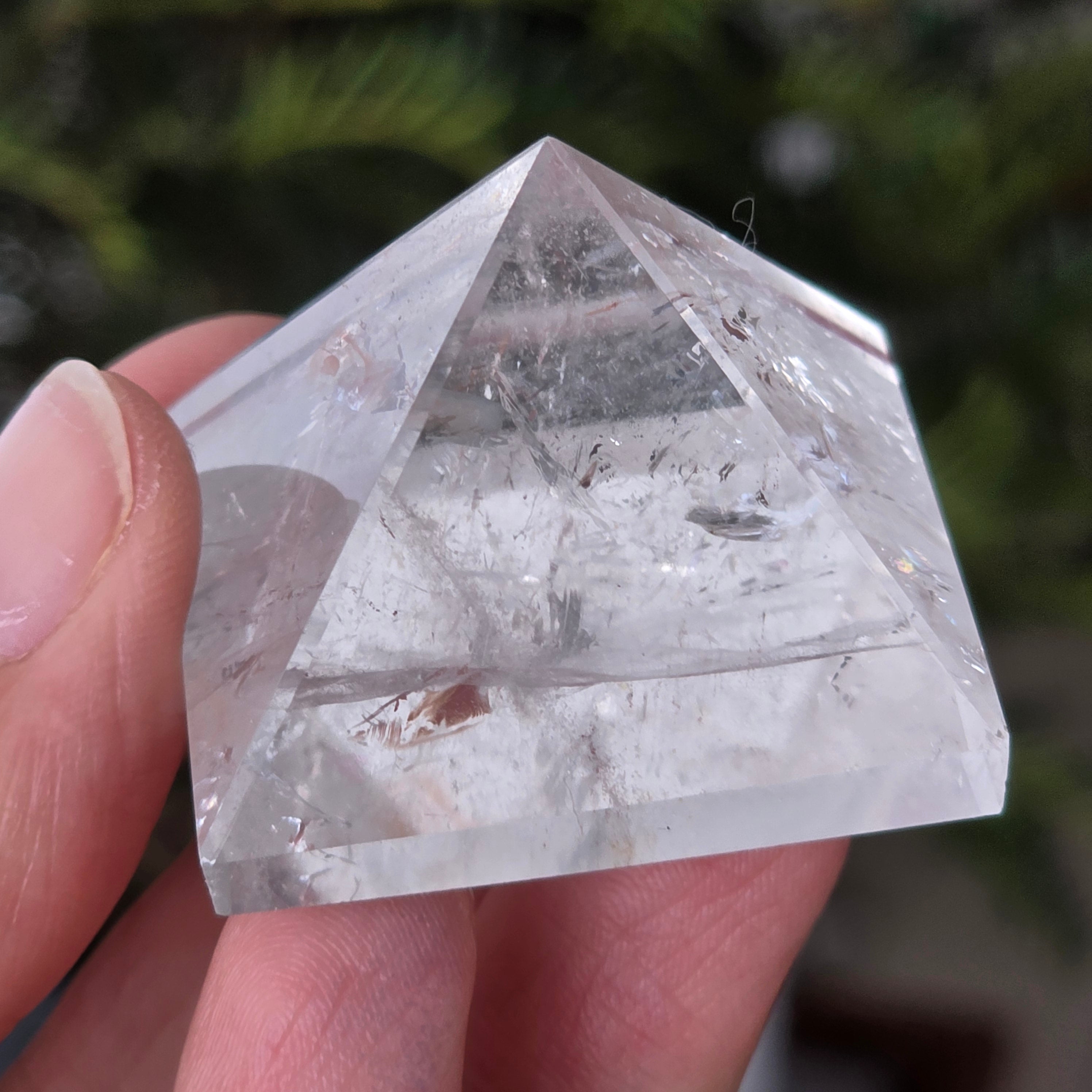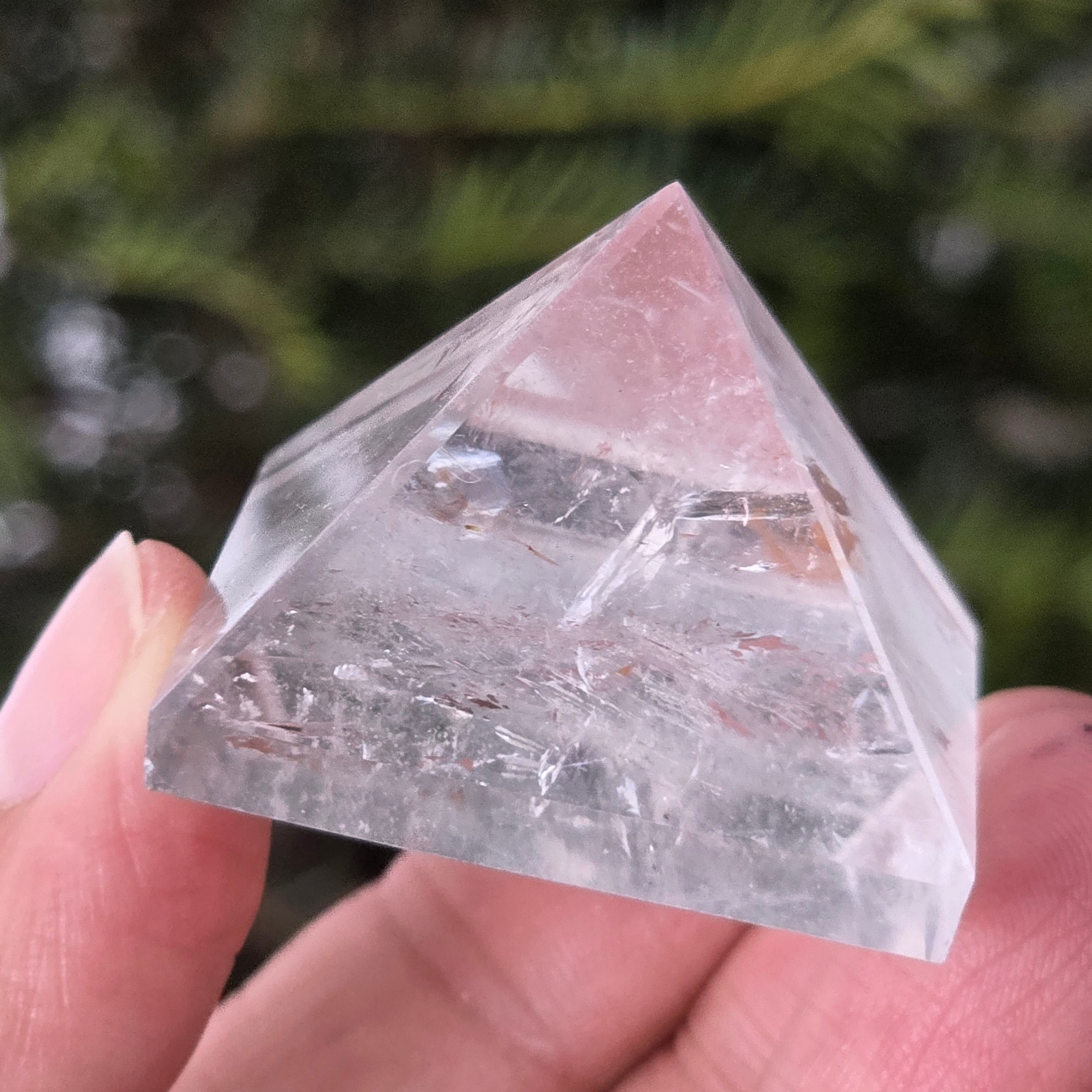 A színtelen kvarc piramis a tisztasághoz, a szándék fokozásához és az energetikai egyensúlyhoz kapcsolódik, formája az energiát rendezett módon koncentrálja és irányítja. Gyakran használják a tiszta elme és a gondolat, érzelem és cselekvés közötti harmónia szimbólumaként.