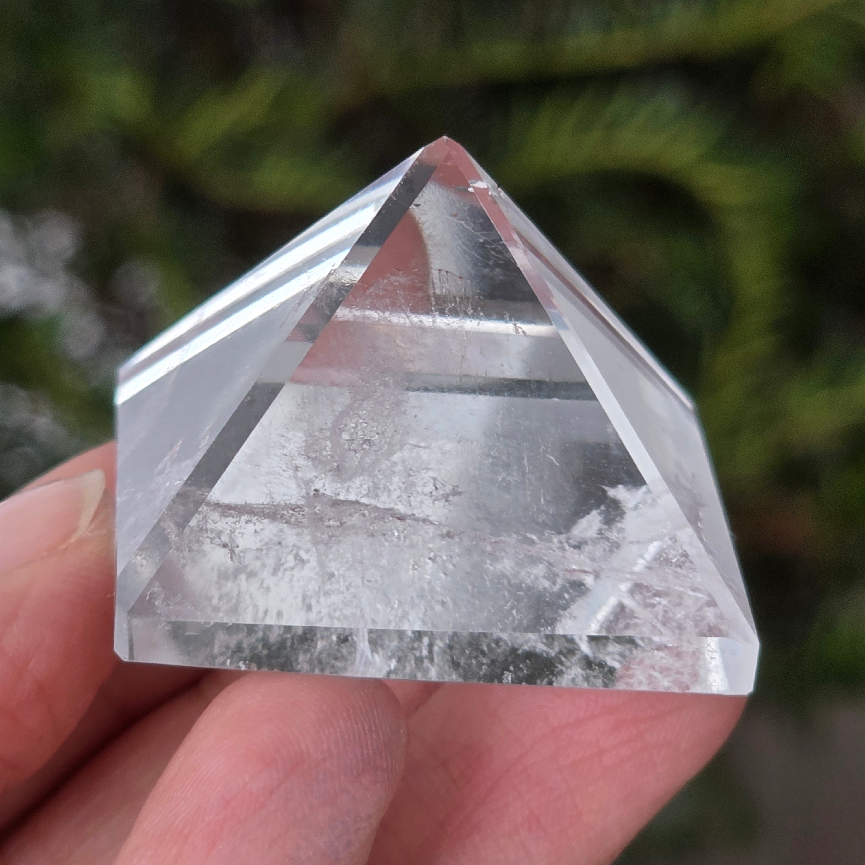 A színtelen kvarc piramis a tisztasággal, a szándék erősítésével és az energetikai egyensúllyal kapcsolatos, formája az energiát rendezett módon összpontosítja és irányítja. Gyakran használják a tiszta elmét és a gondolat, érzelem és cselekvés harmóniáját jelképező szimbólumként.