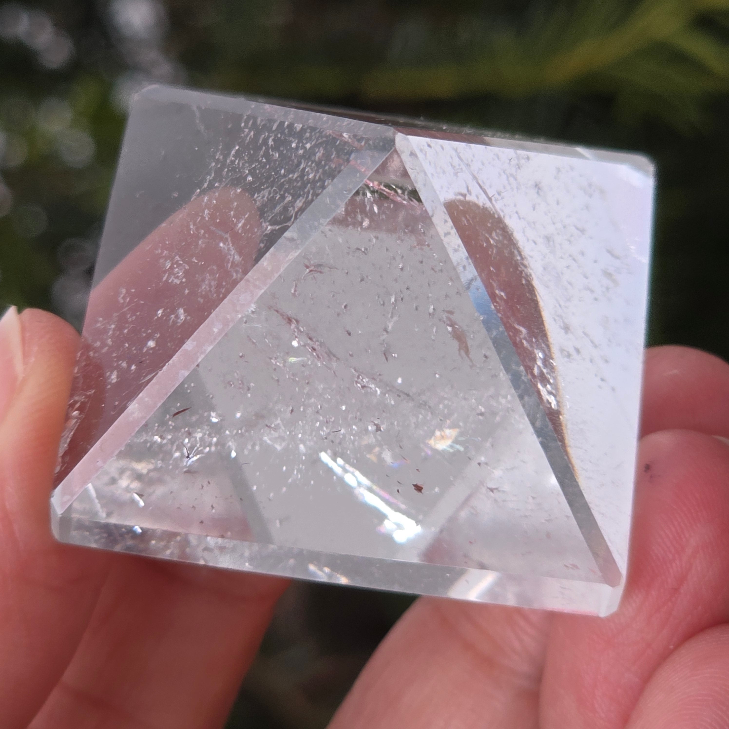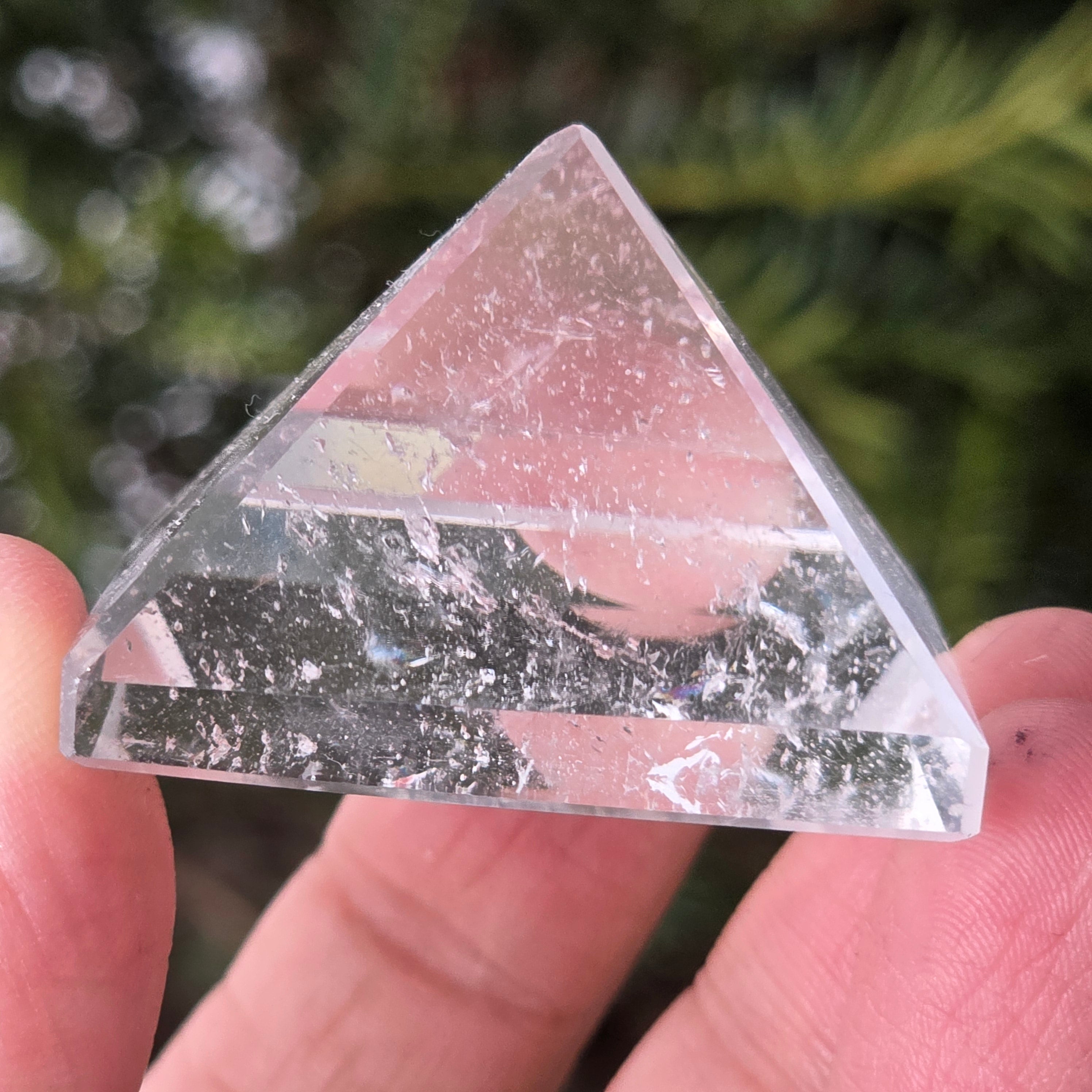 A színtelen kvarc piramis a tisztasággal, a szándék felerősítésével és az energetikai egyensúllyal hozható összefüggésbe; formája rendezetten összpontosítja és irányítja az energiát. Gyakran használják az éles elme és a gondolat, érzelem és cselekedet harmóniájának szimbólumaként.