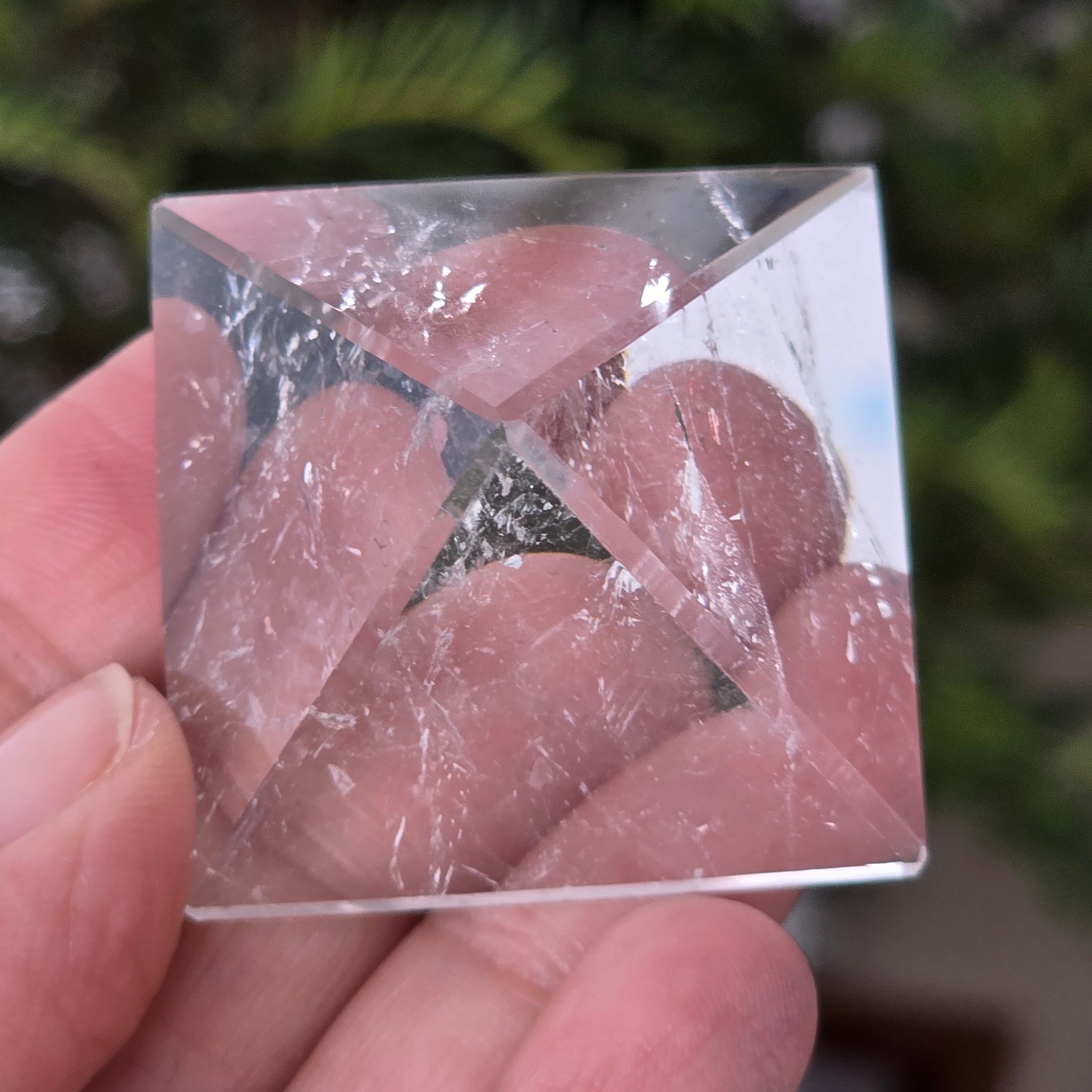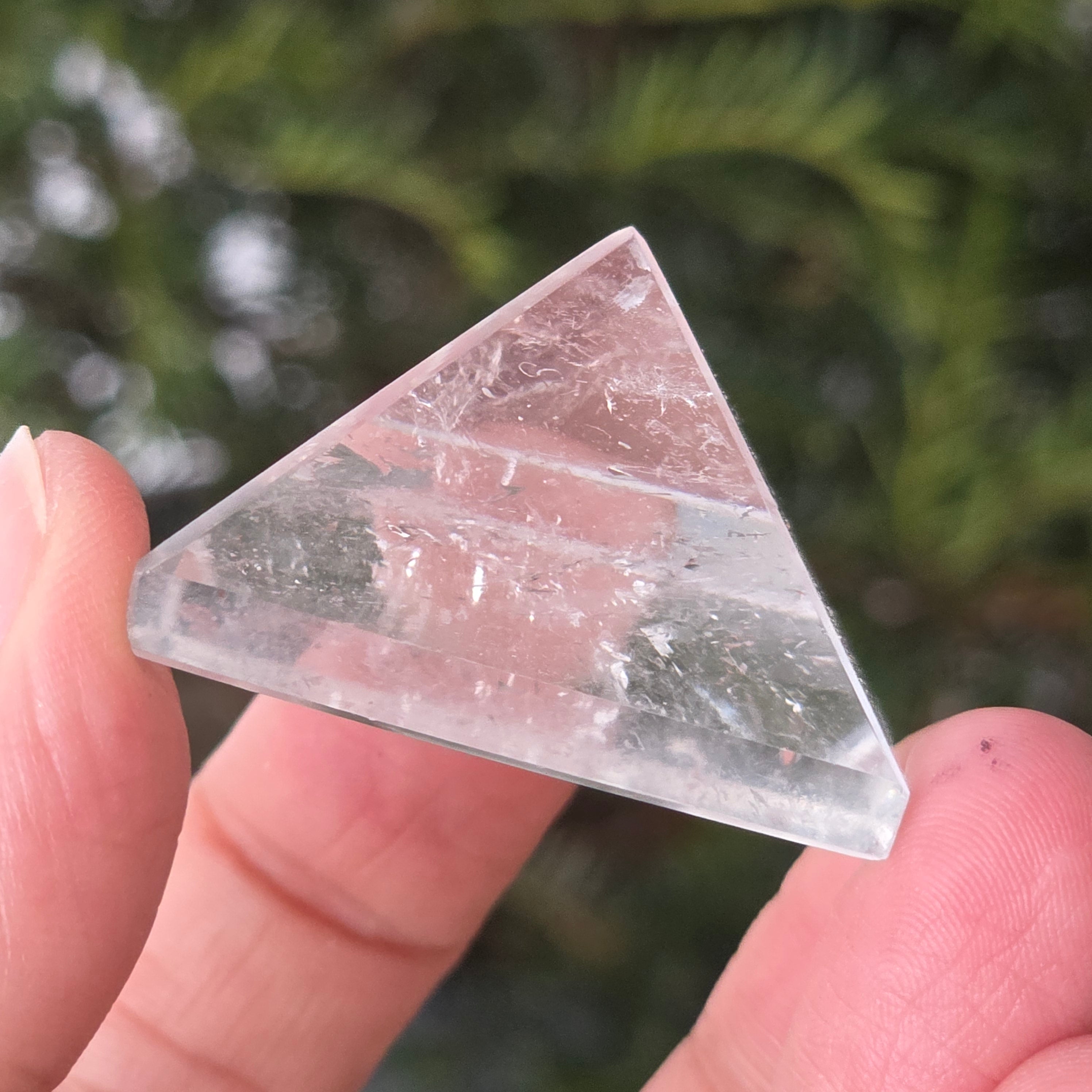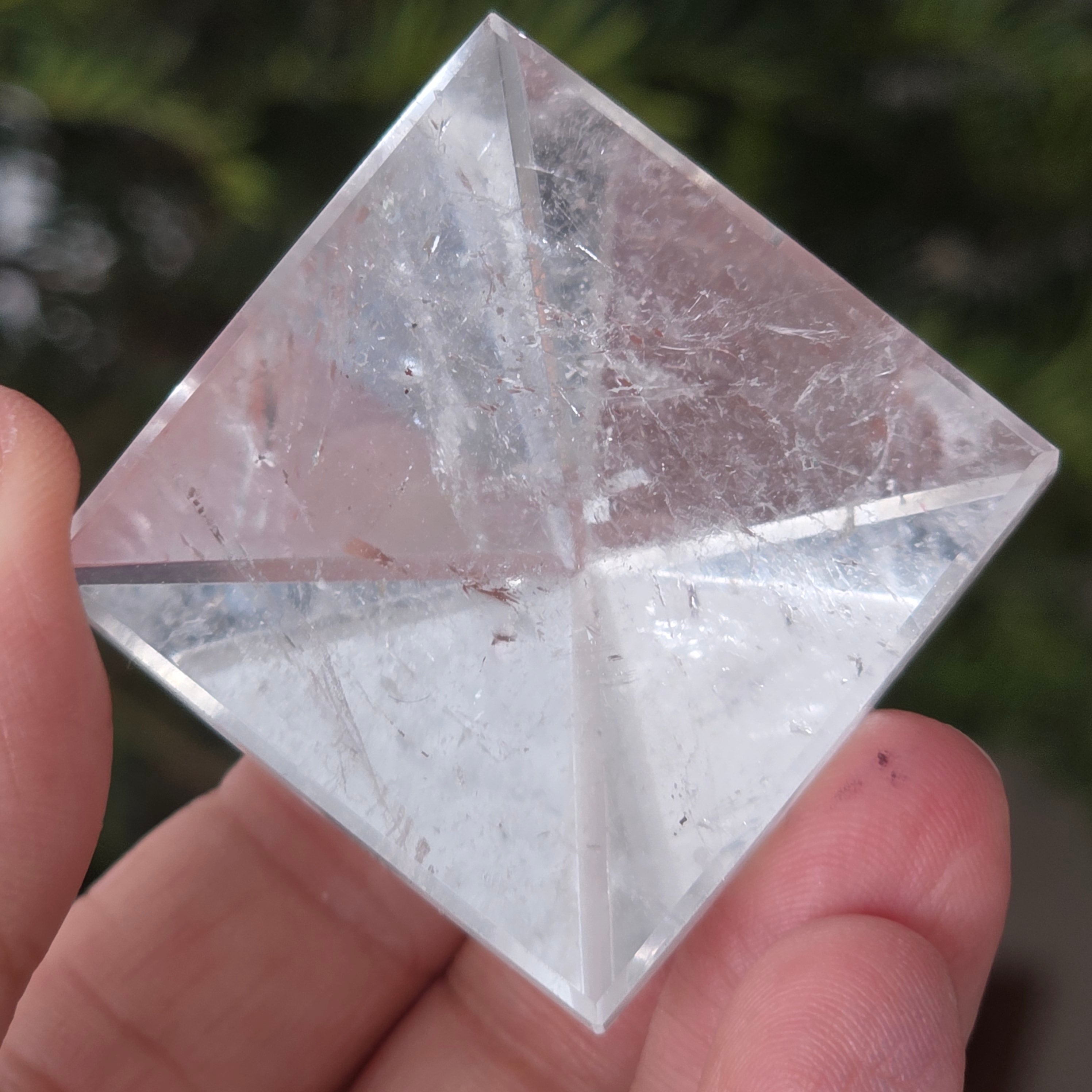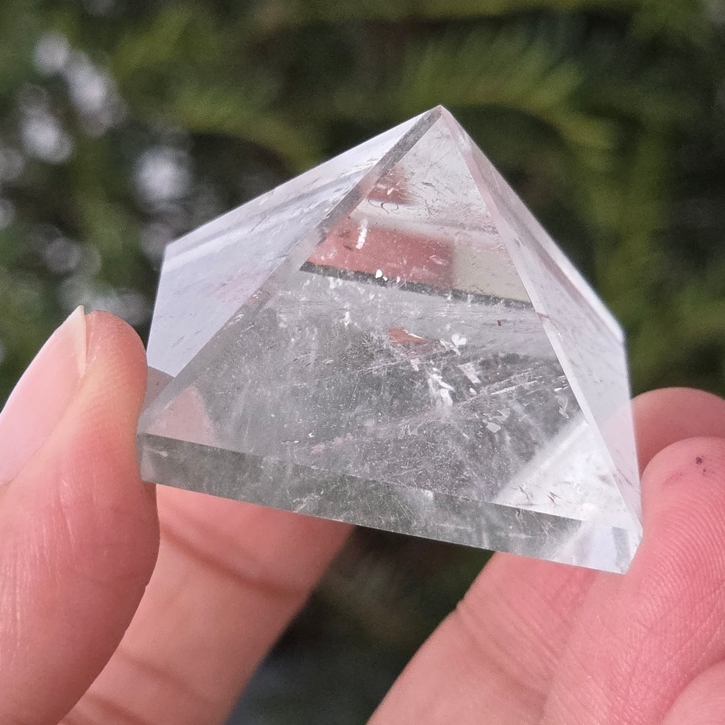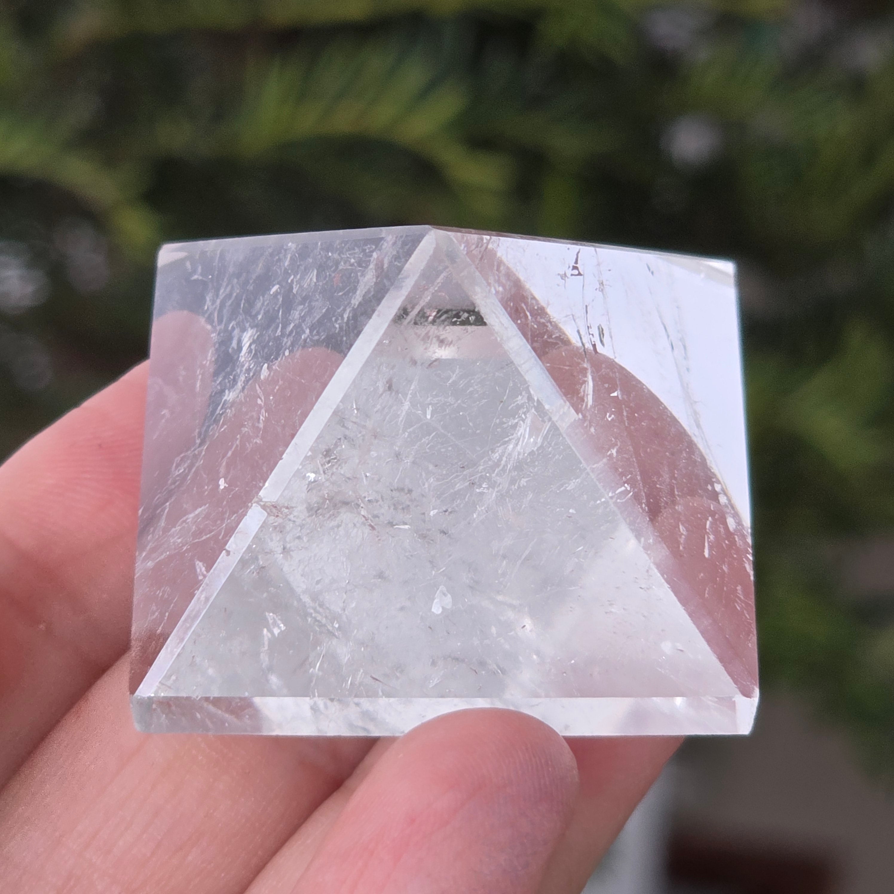A színtelen kvarc piramis a tisztasággal, a szándék erősítésével és az energetikai egyensúllyal társul, alakja az energiát rendezett módon koncentrálja és irányítja. Gyakran használják az éles elme és a gondolat, érzelem és cselekvés közötti harmónia szimbólumaként.