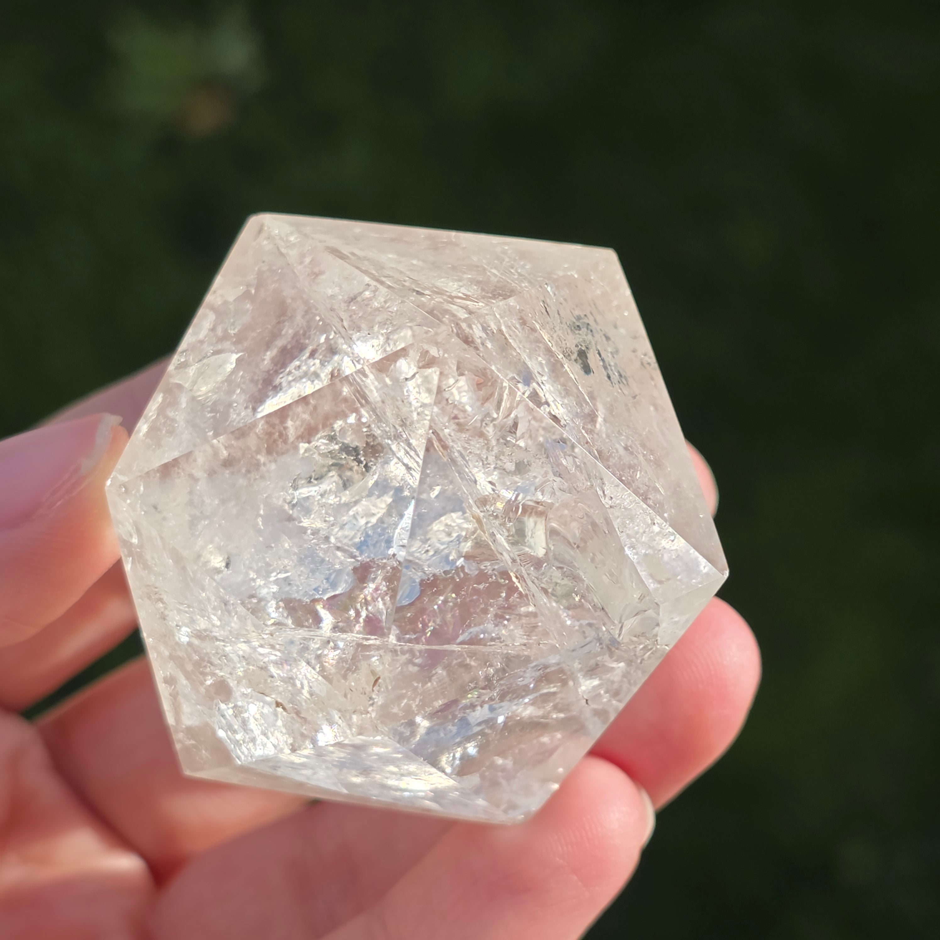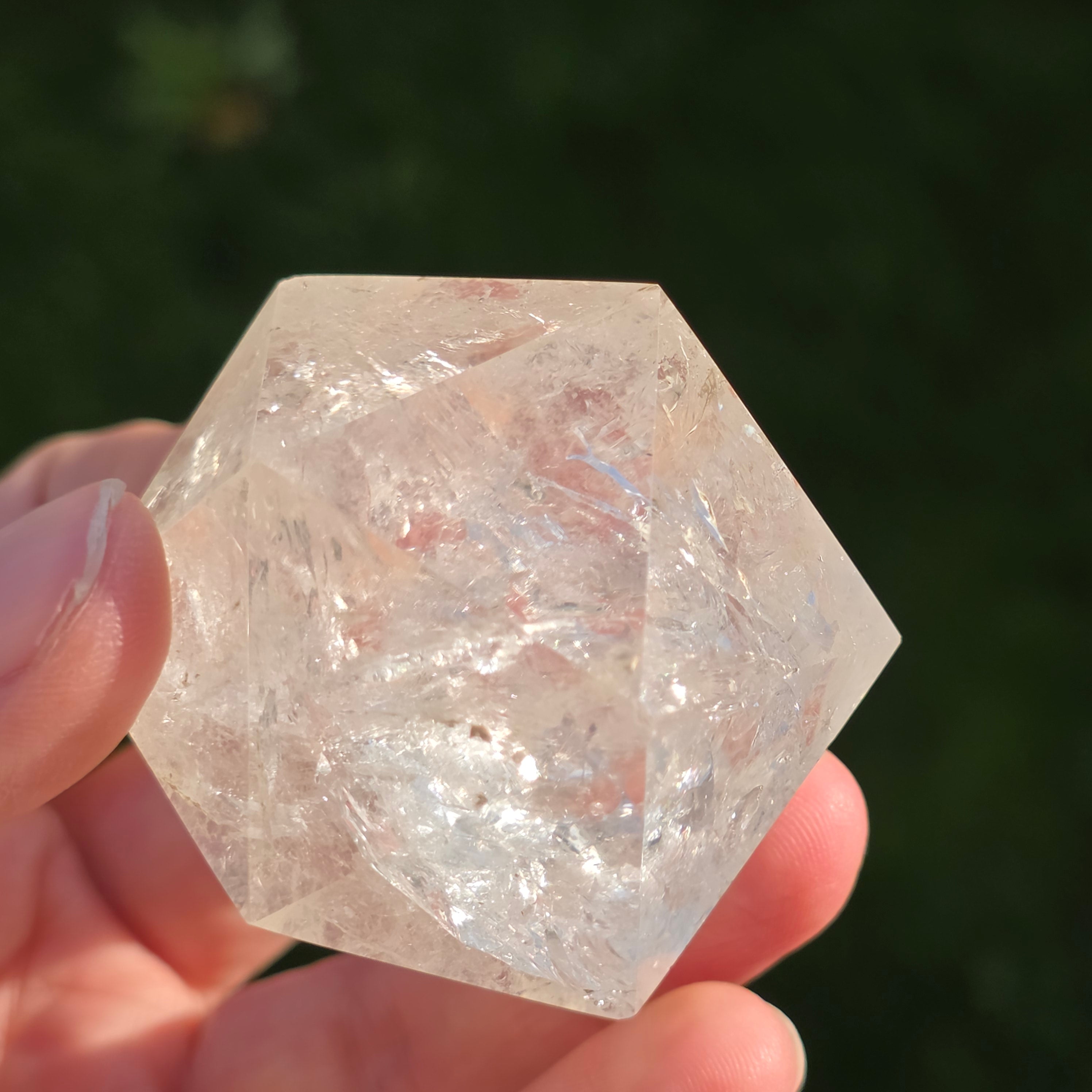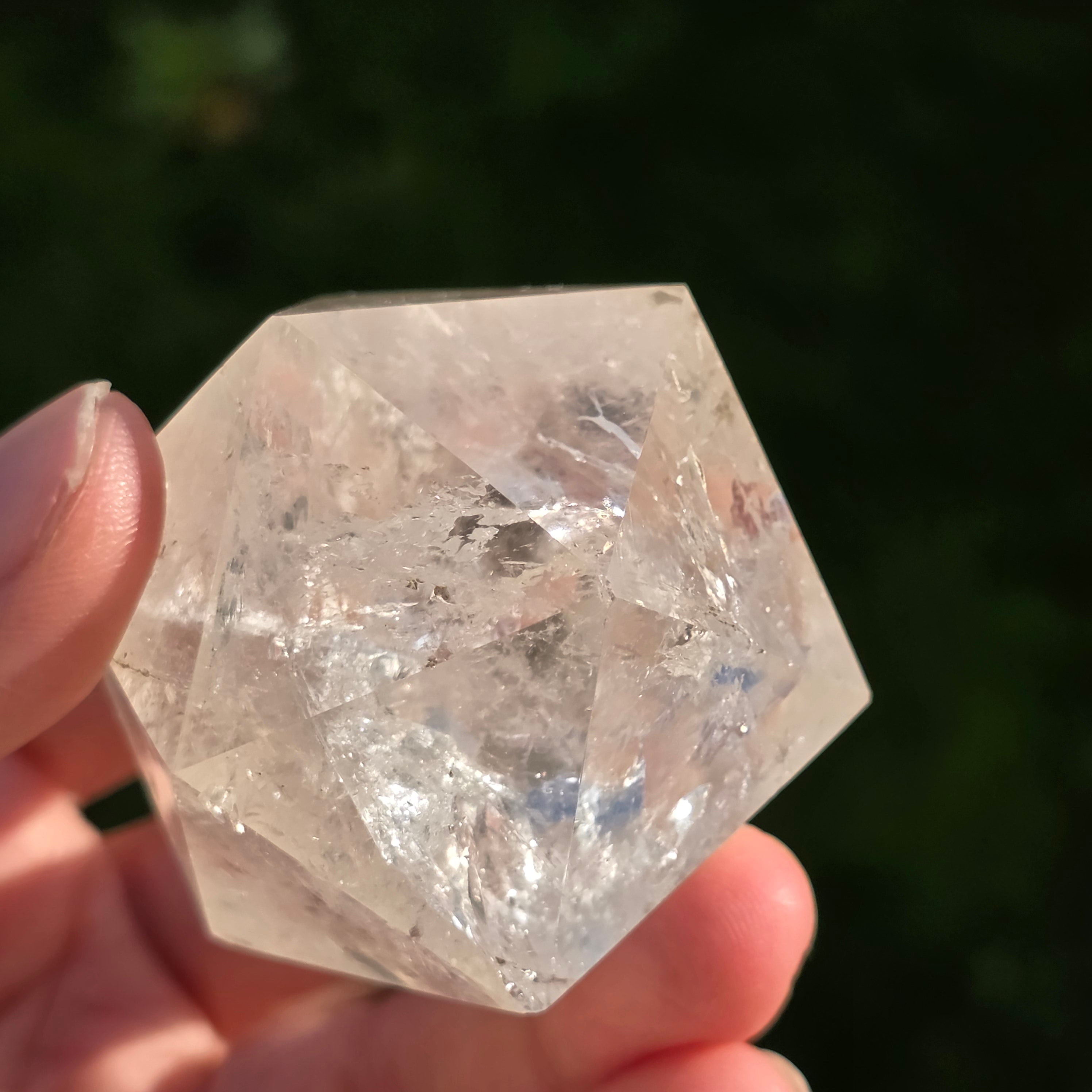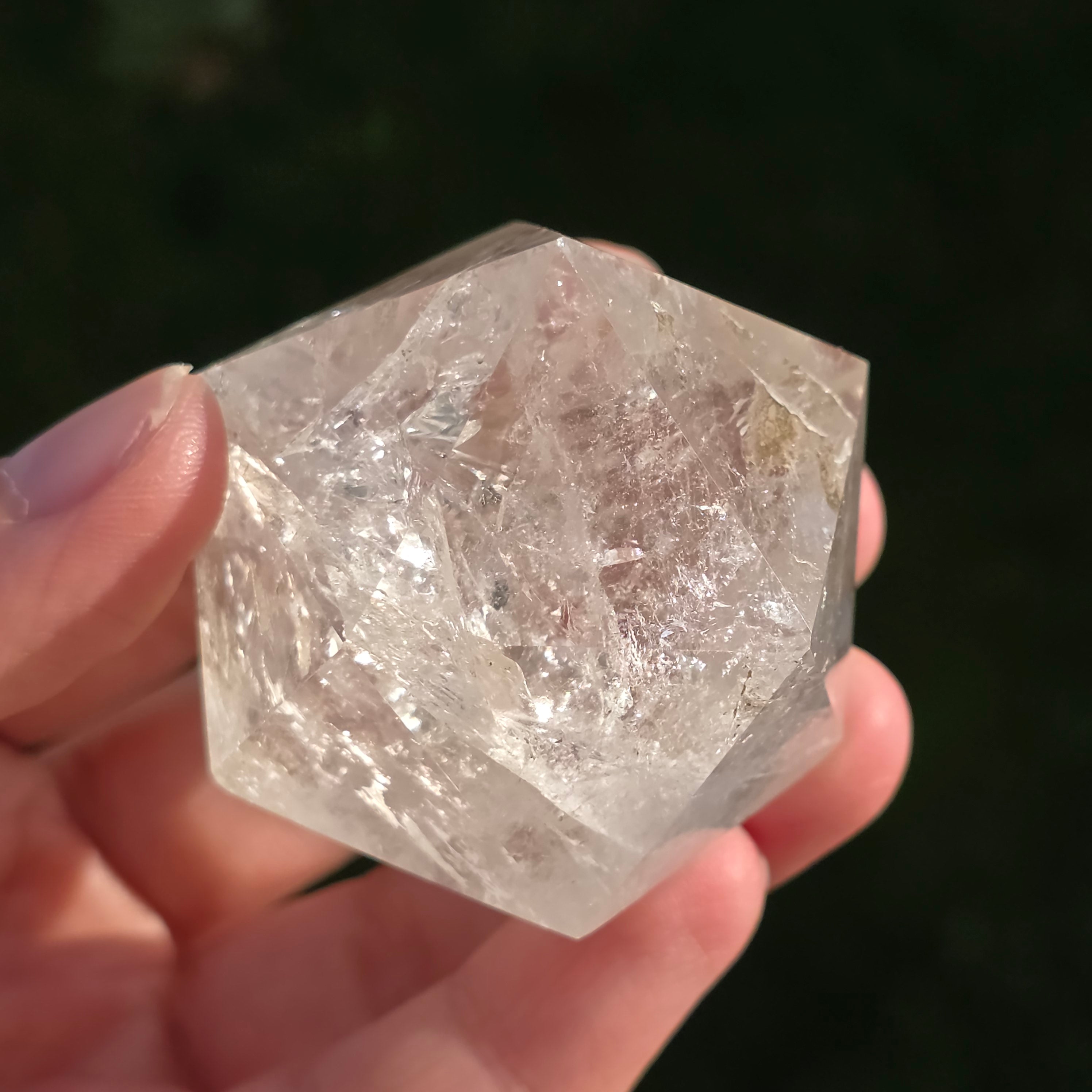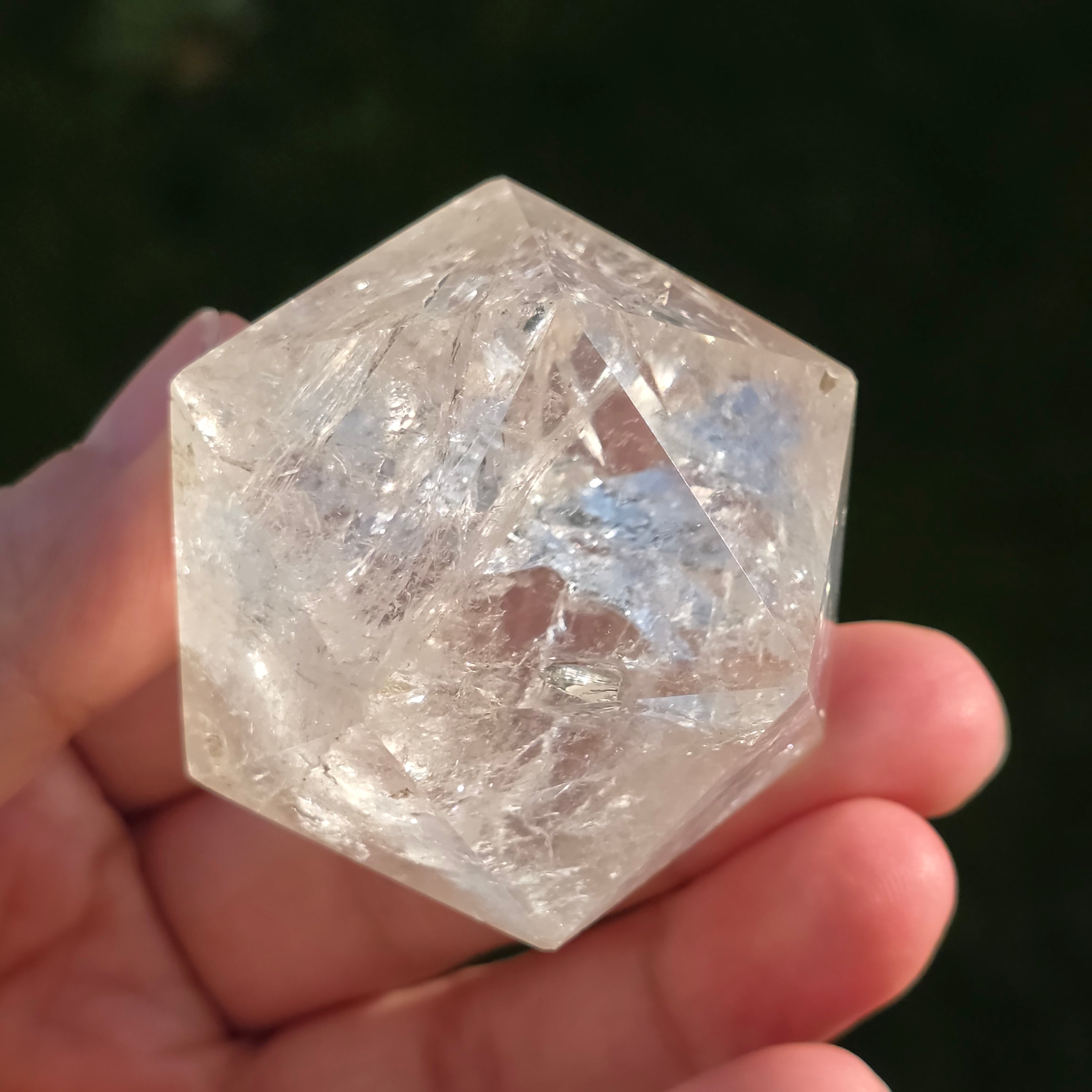 Hegyikristályból készítve – a tisztaság és az energiafelerősítés köve – ez az icosaedr egyensúlyt, folyékonyságot és nyitottságot hoz a belső átalakulás felé.