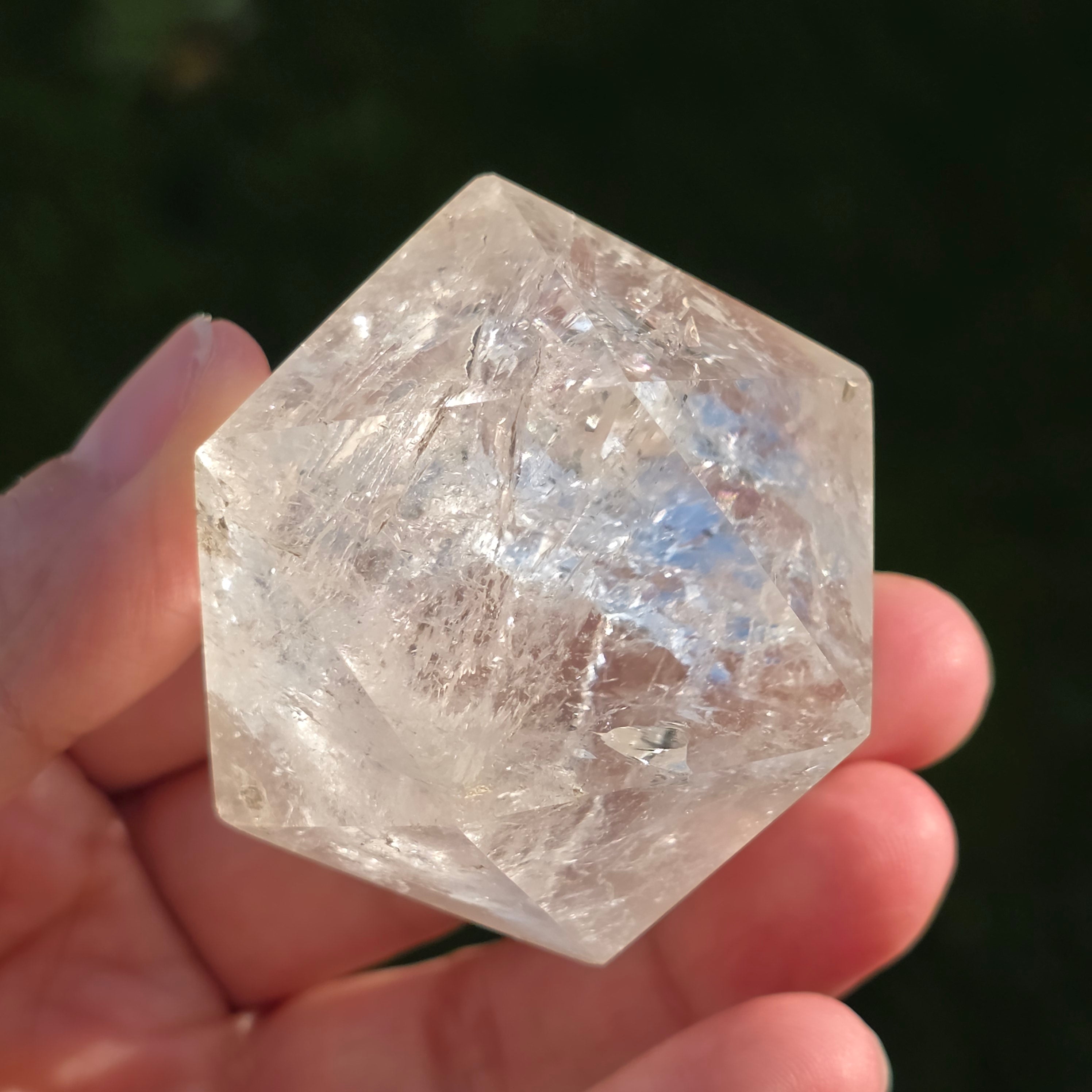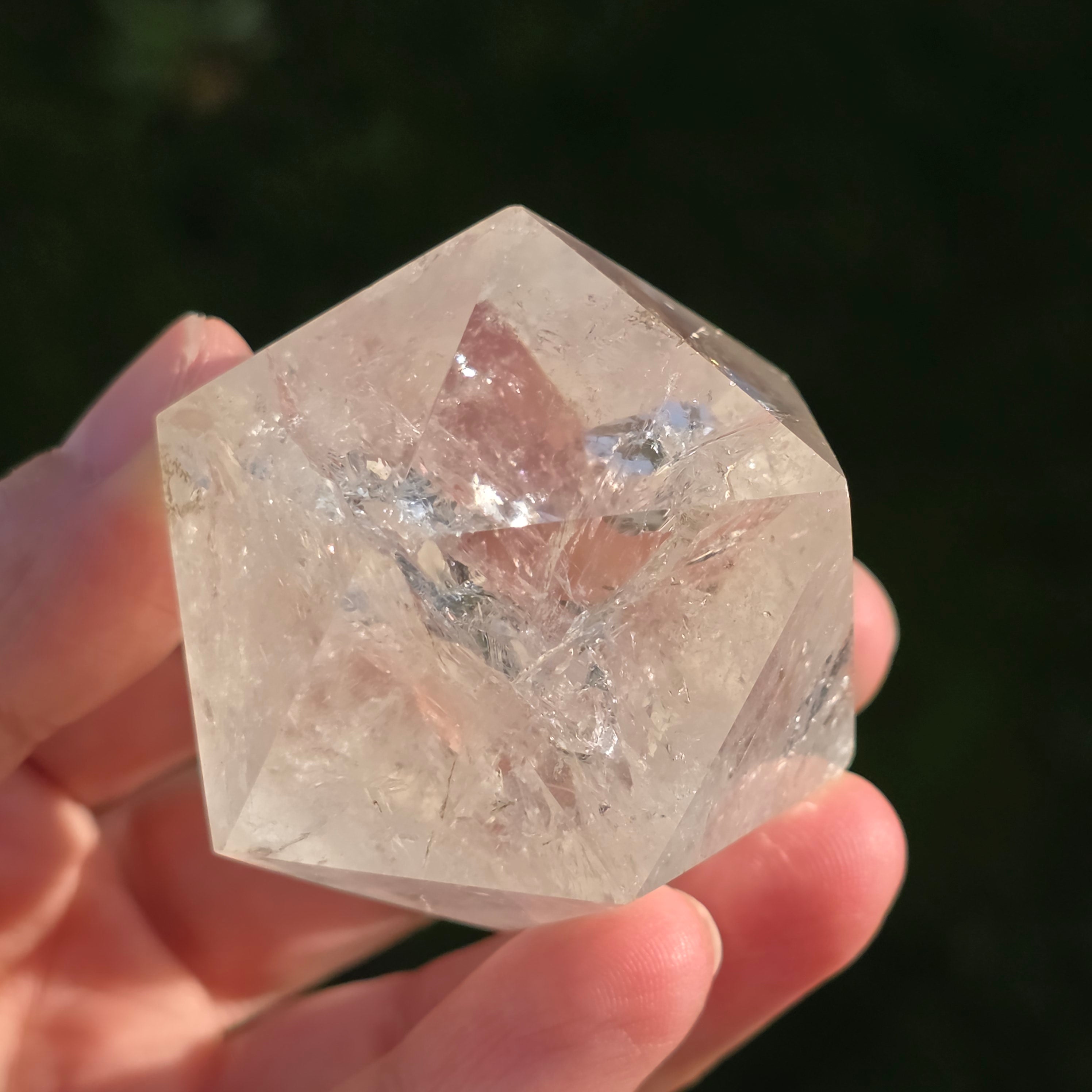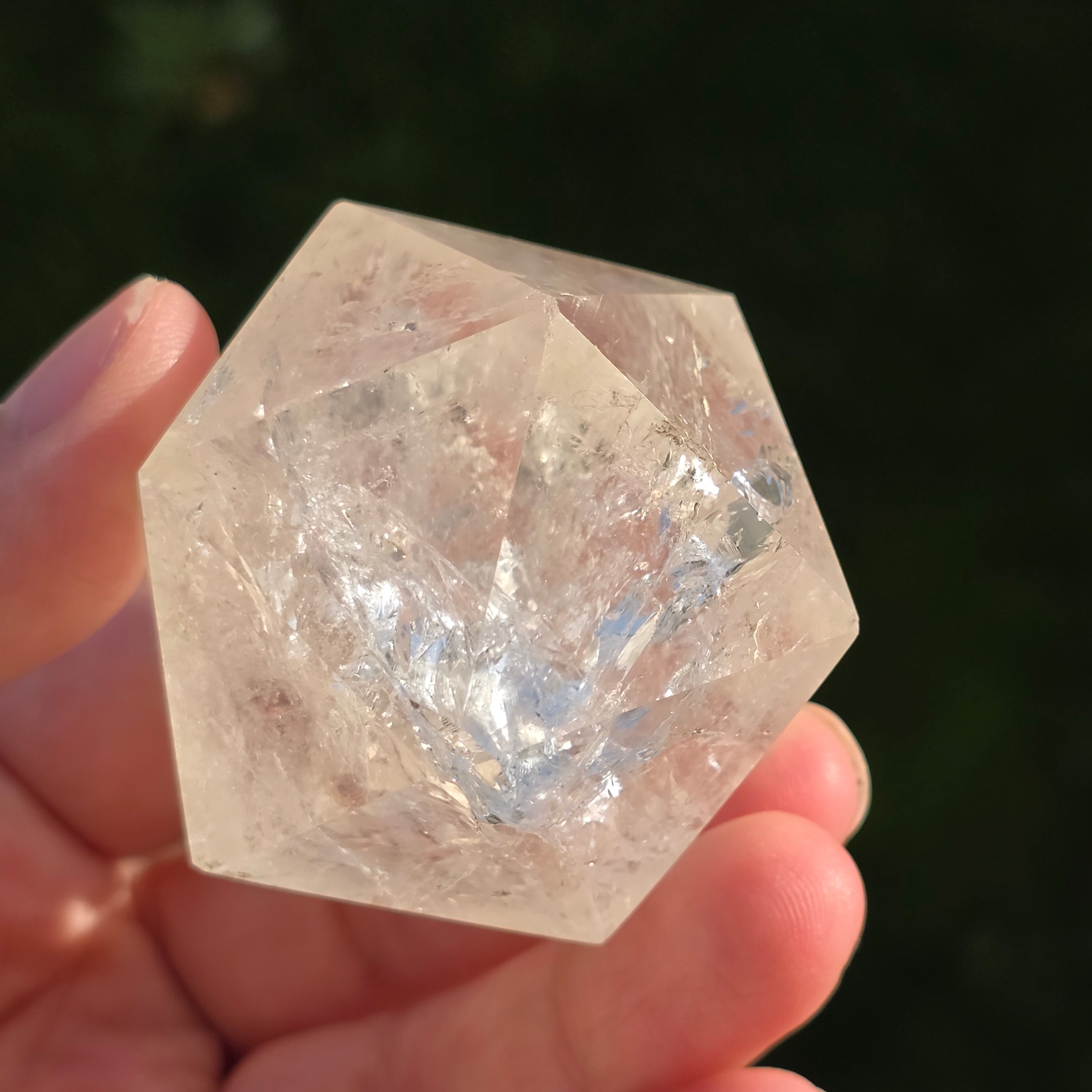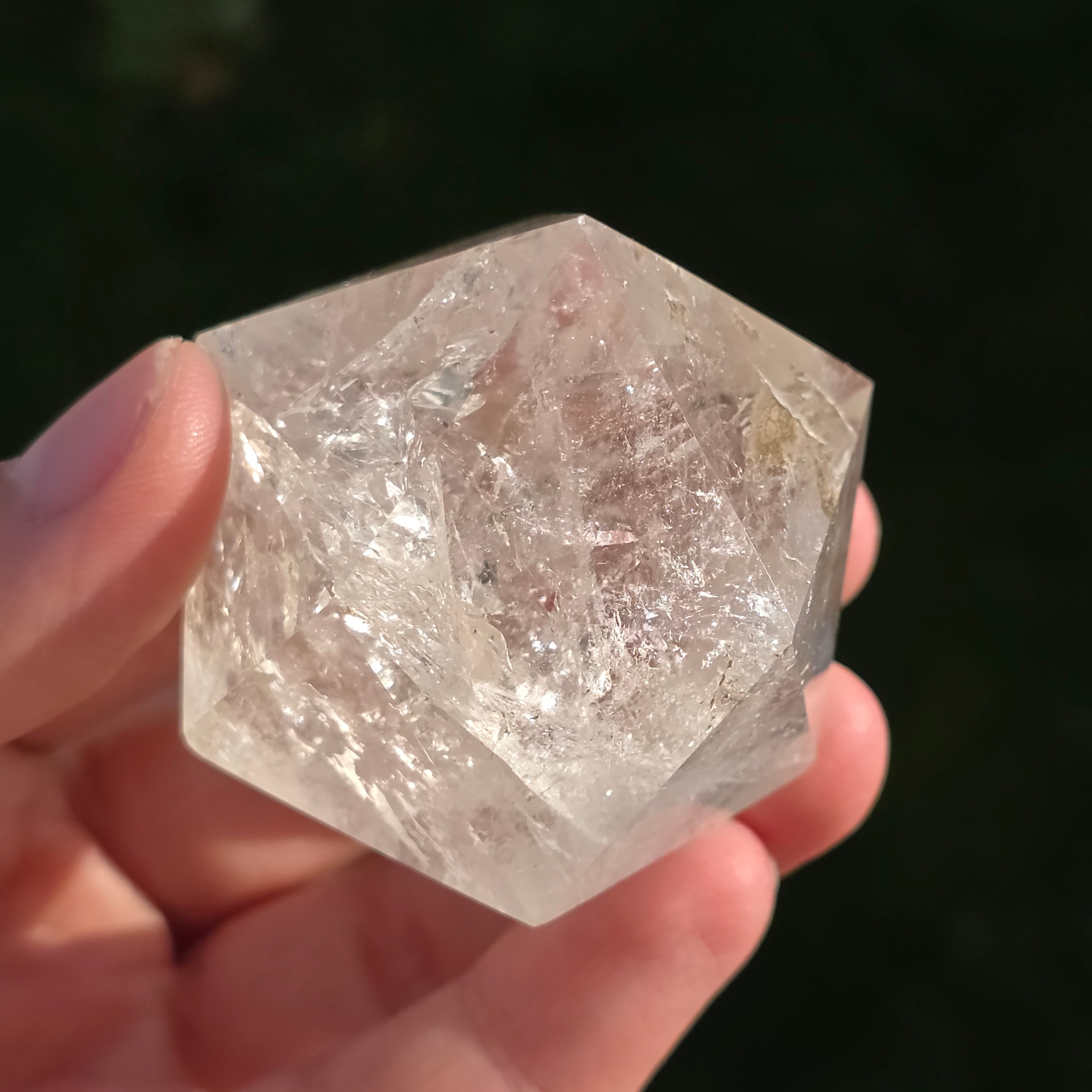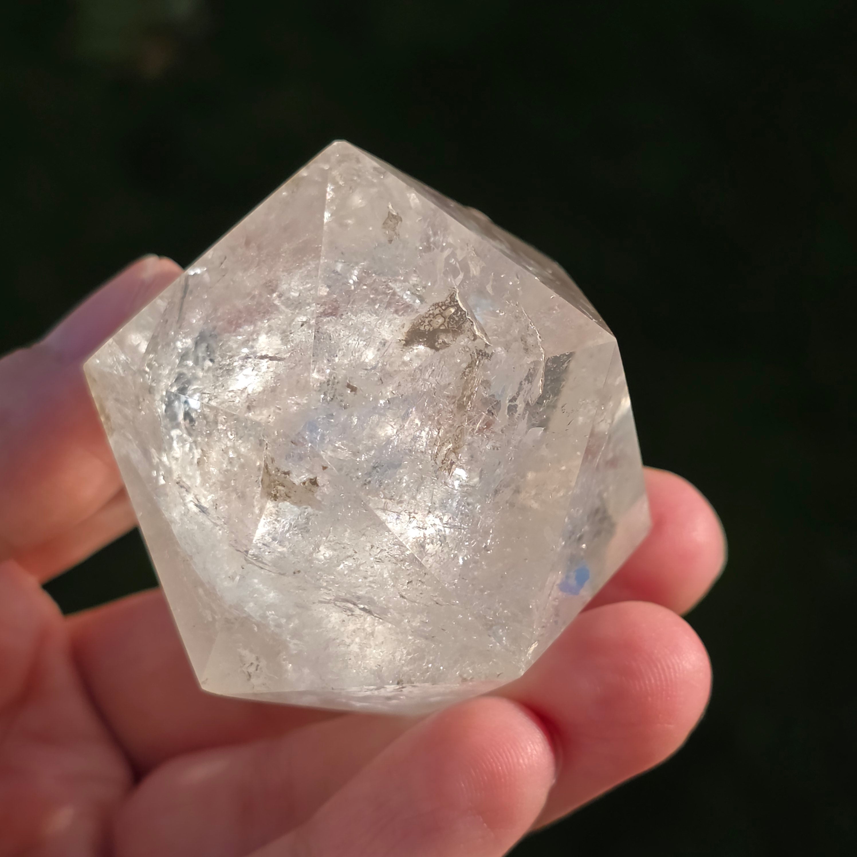 Hegyikristályból készítve – a tisztaság és az energiafelerősítés köve – ez az icosaedr egyensúlyt, folyékonyságot és nyitottságot hoz a belső átalakulás felé.