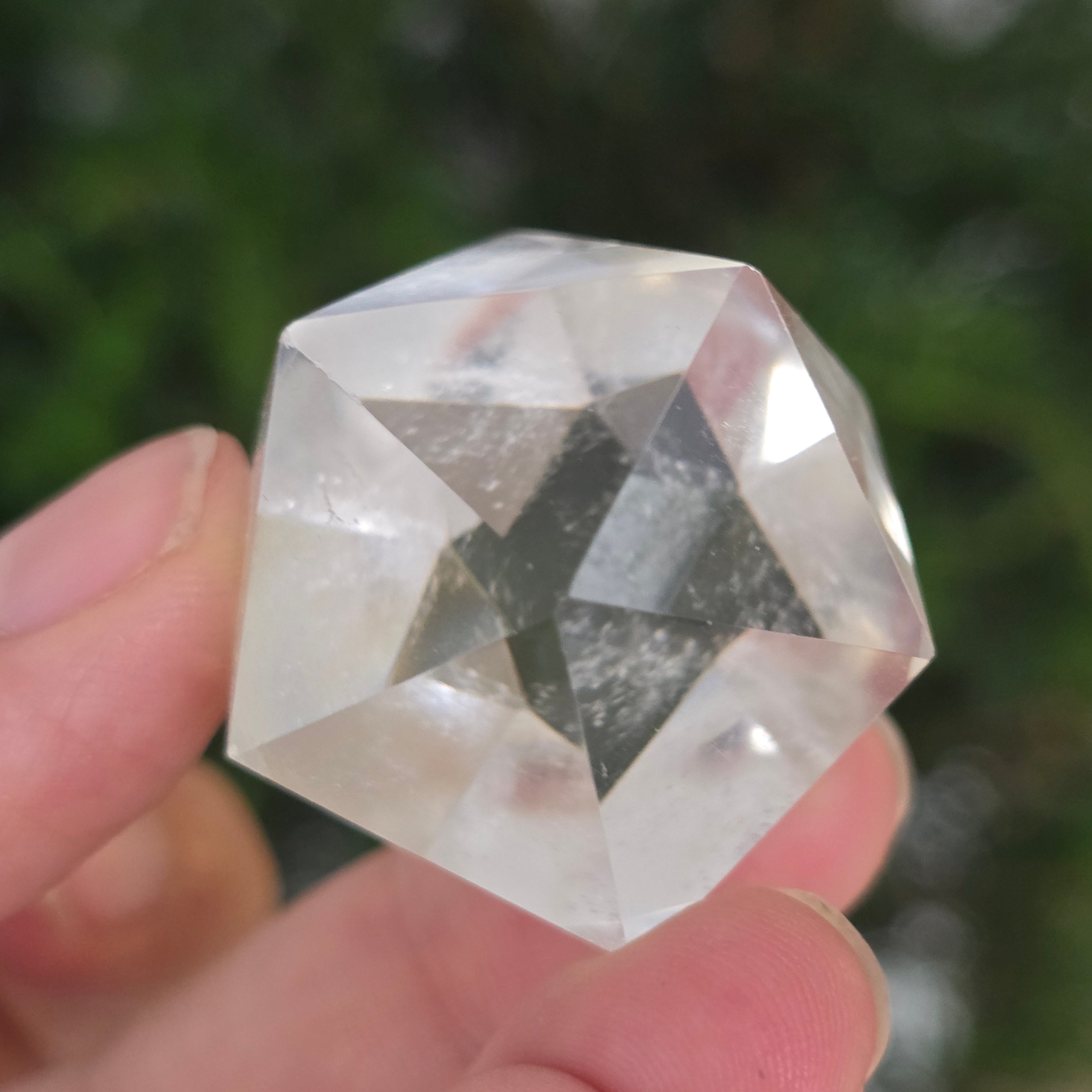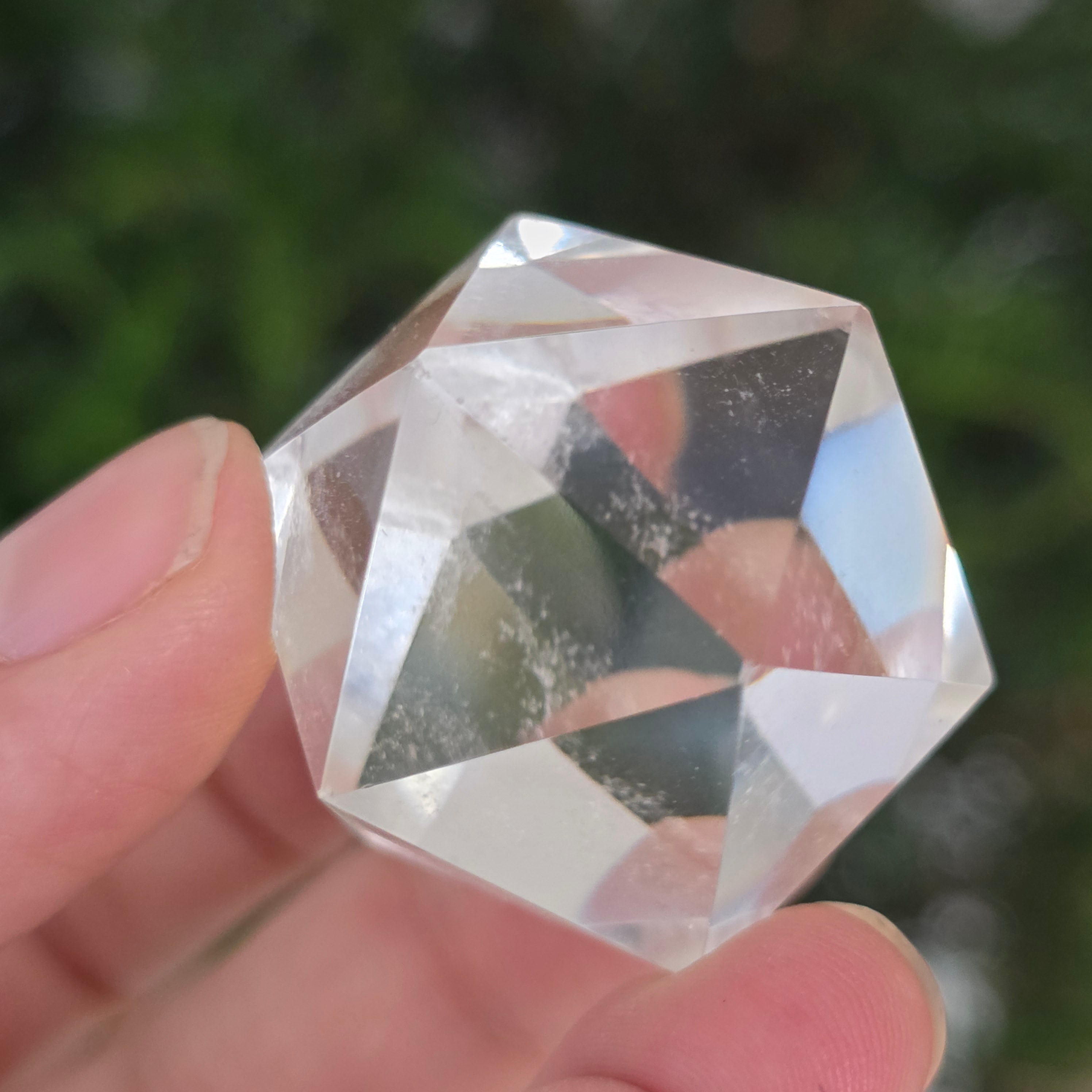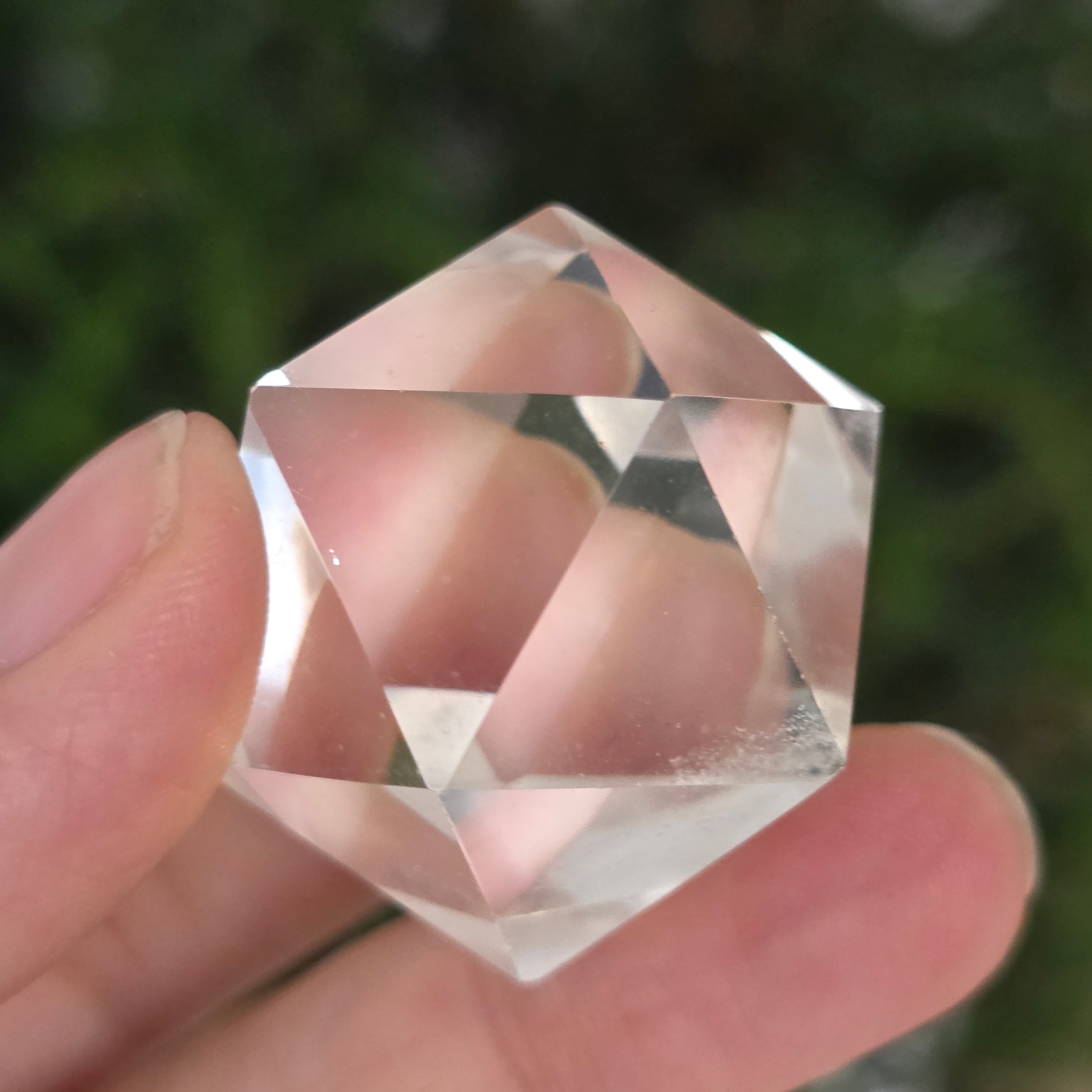 Sziklakristályból készült – a tisztaság és az energiafelerősítés köve – ez az icosaedron egyensúlyt, folyékonyságot és nyitottságot hoz a belső átalakulás felé.