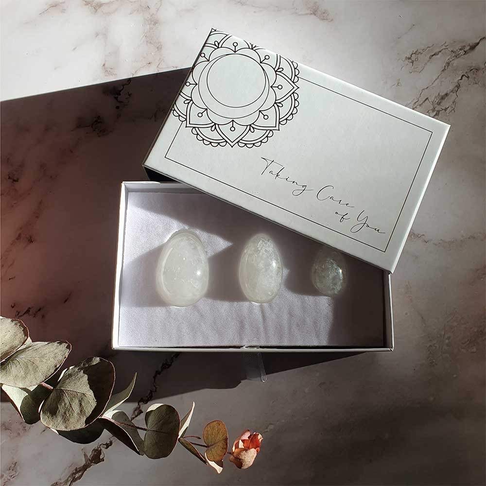 Színtelen kvarc Yoni tojások - 3 darabos készlet