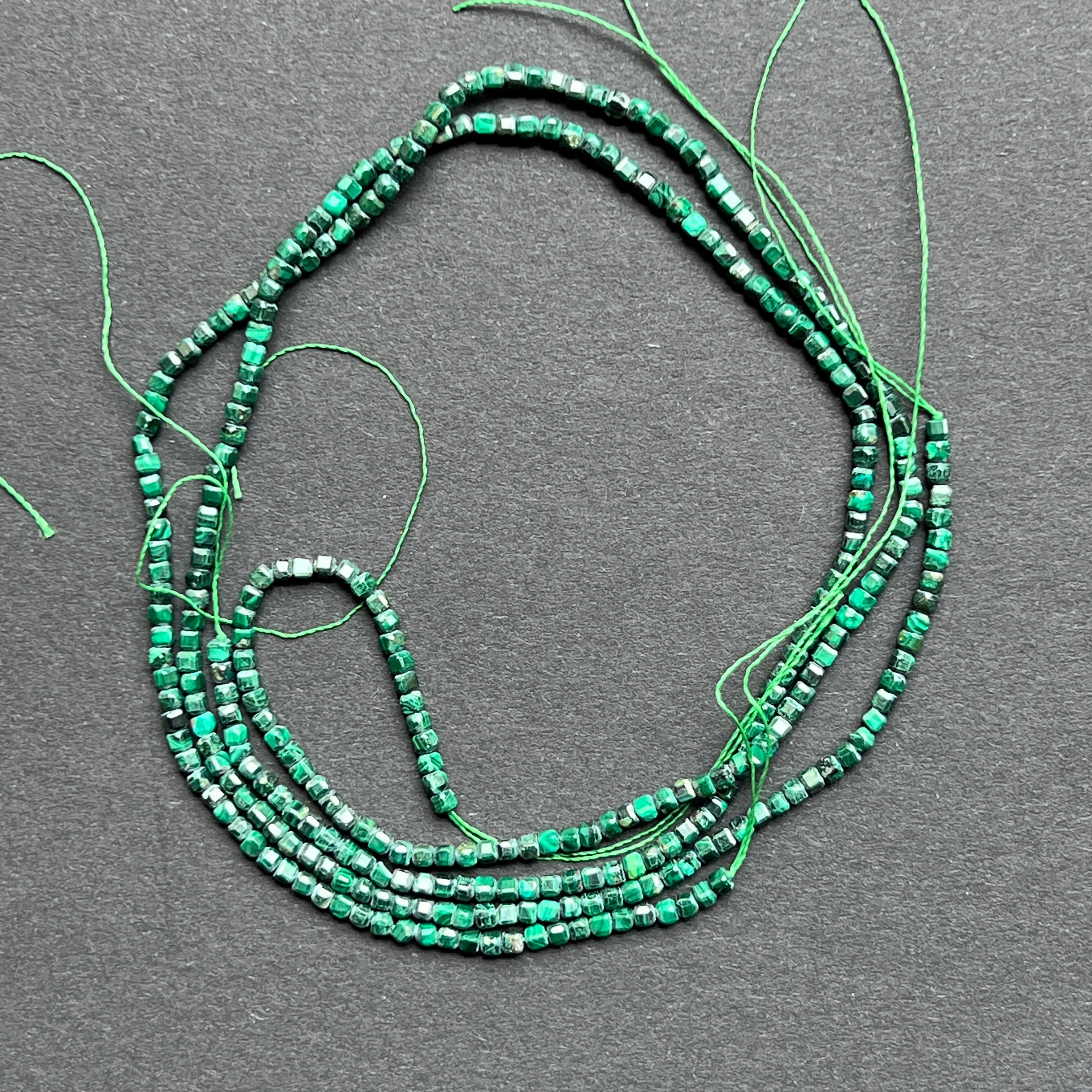 Malachit szirup, kockákból áll gömb alakú természetes oldalak, tökéletes nyaklánchoz, karkötőhöz vagy más kézzel készített ékszerhez.