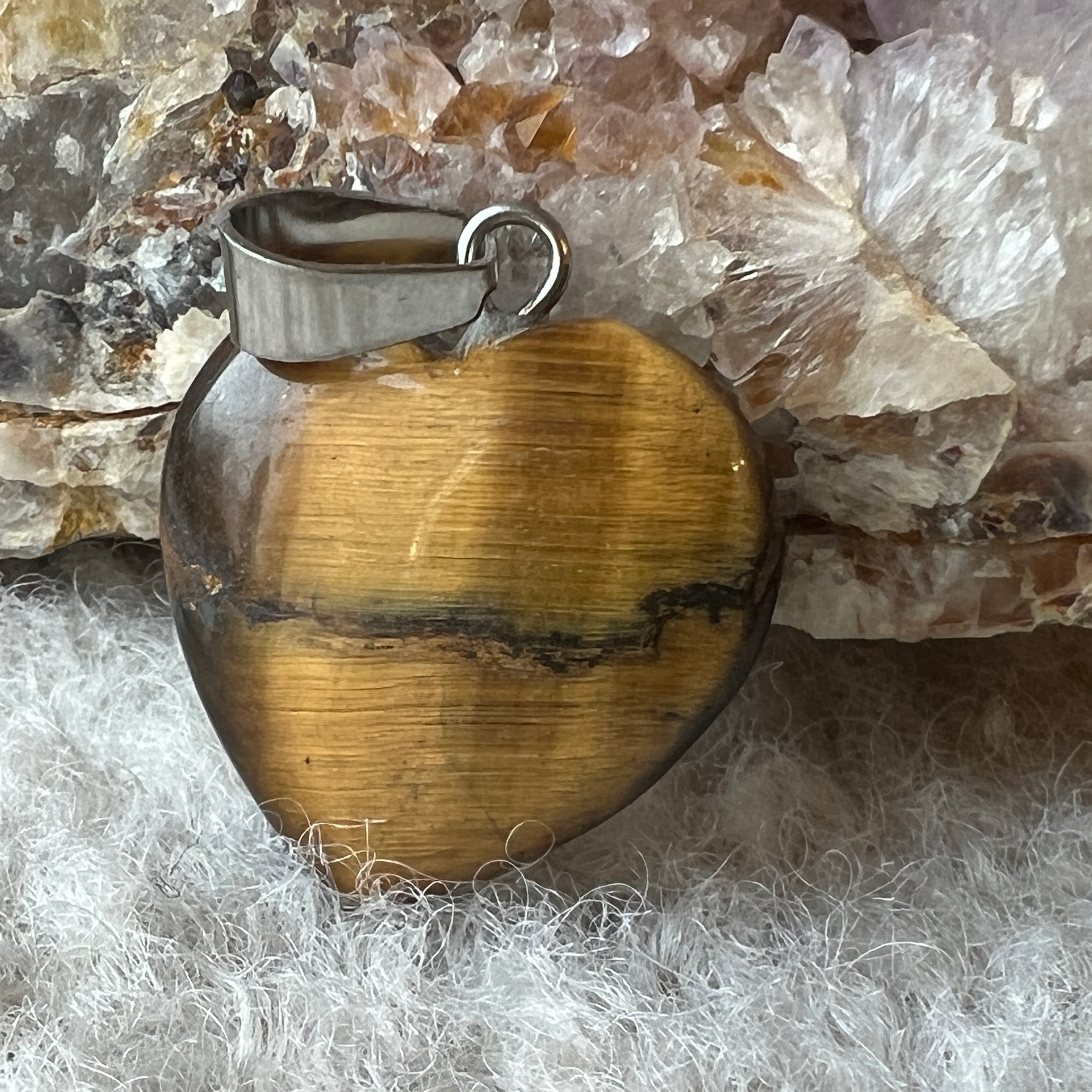 Szív tigrisszem medál