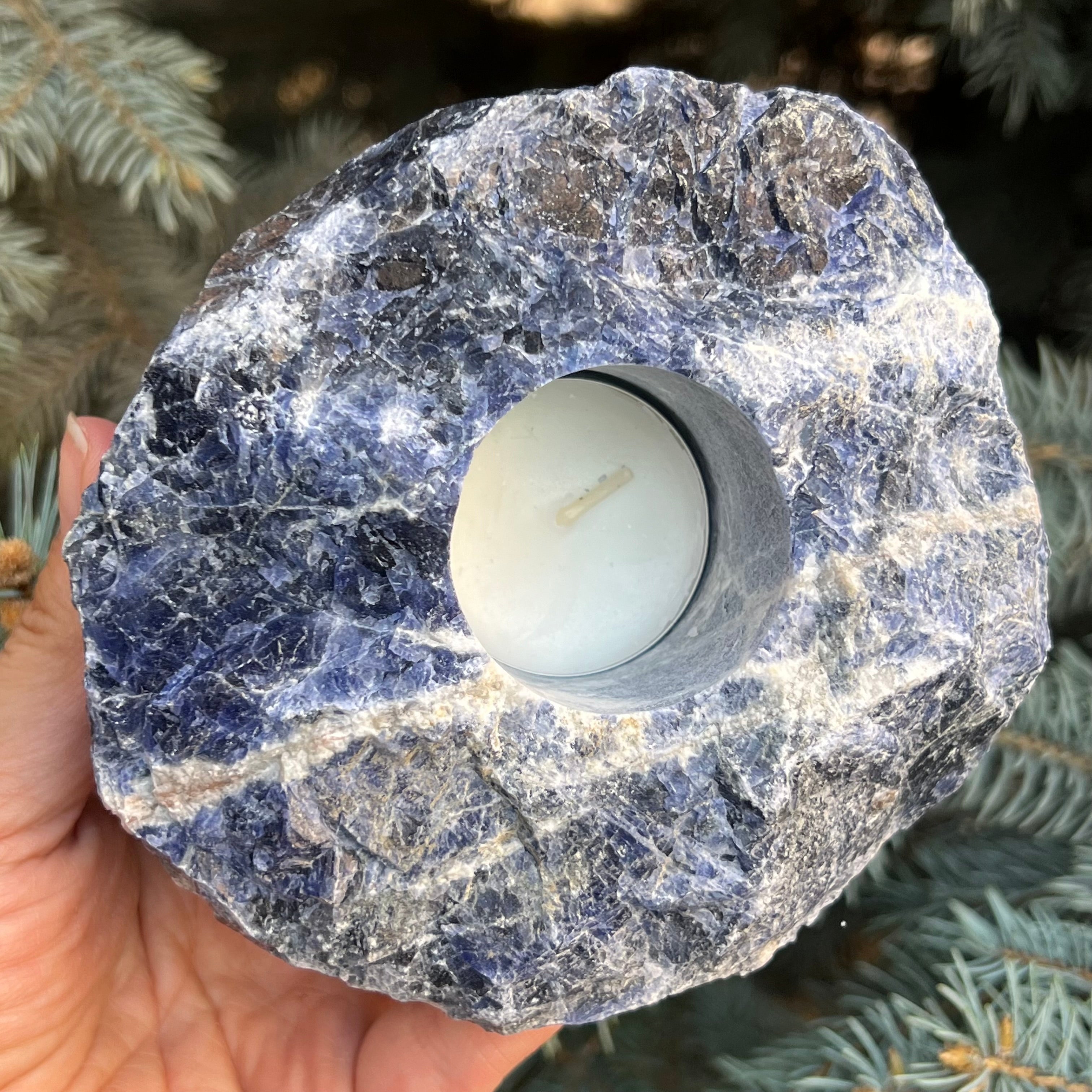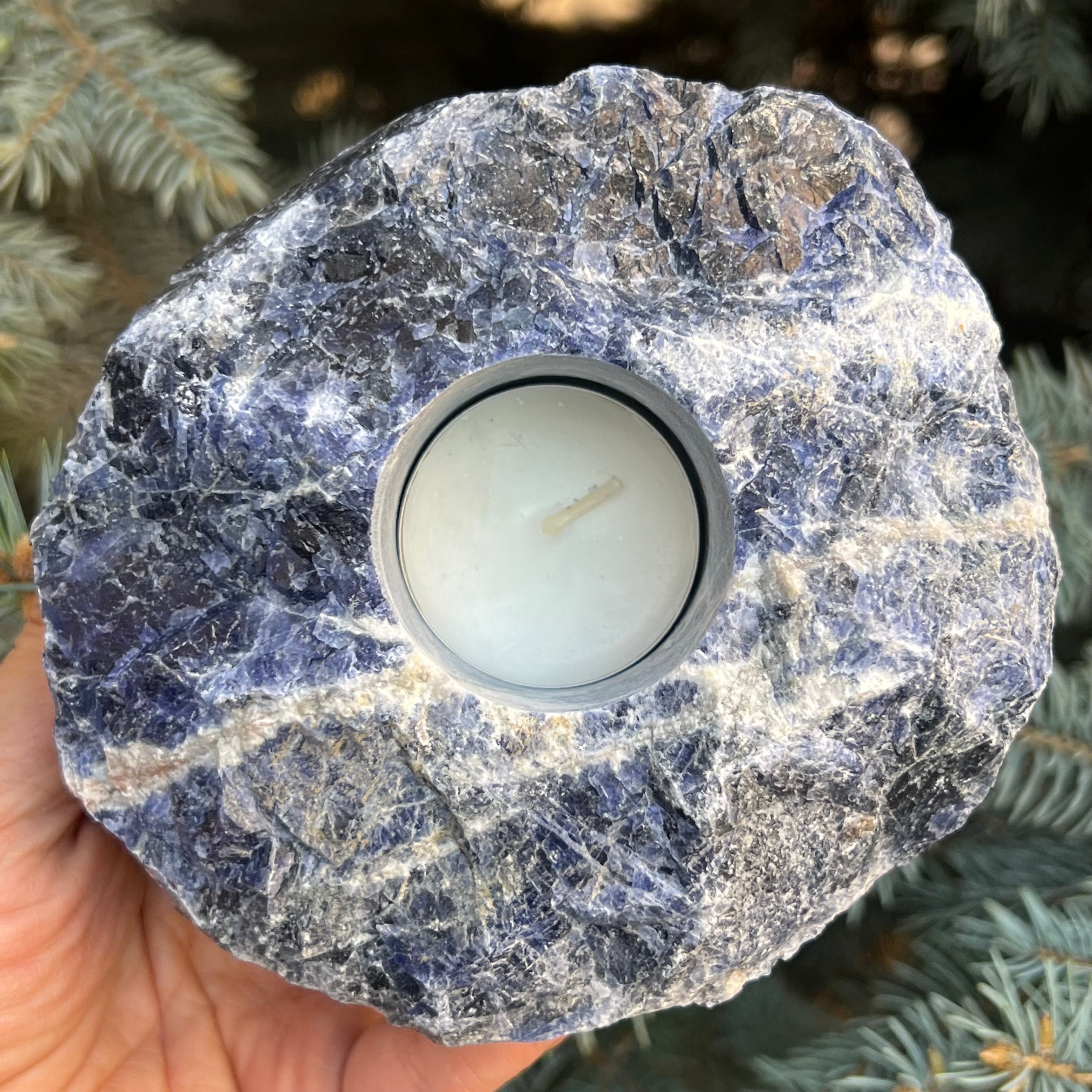 Szodalit gyertyatartó, kb. méret: 13 * 12 * 5 cm