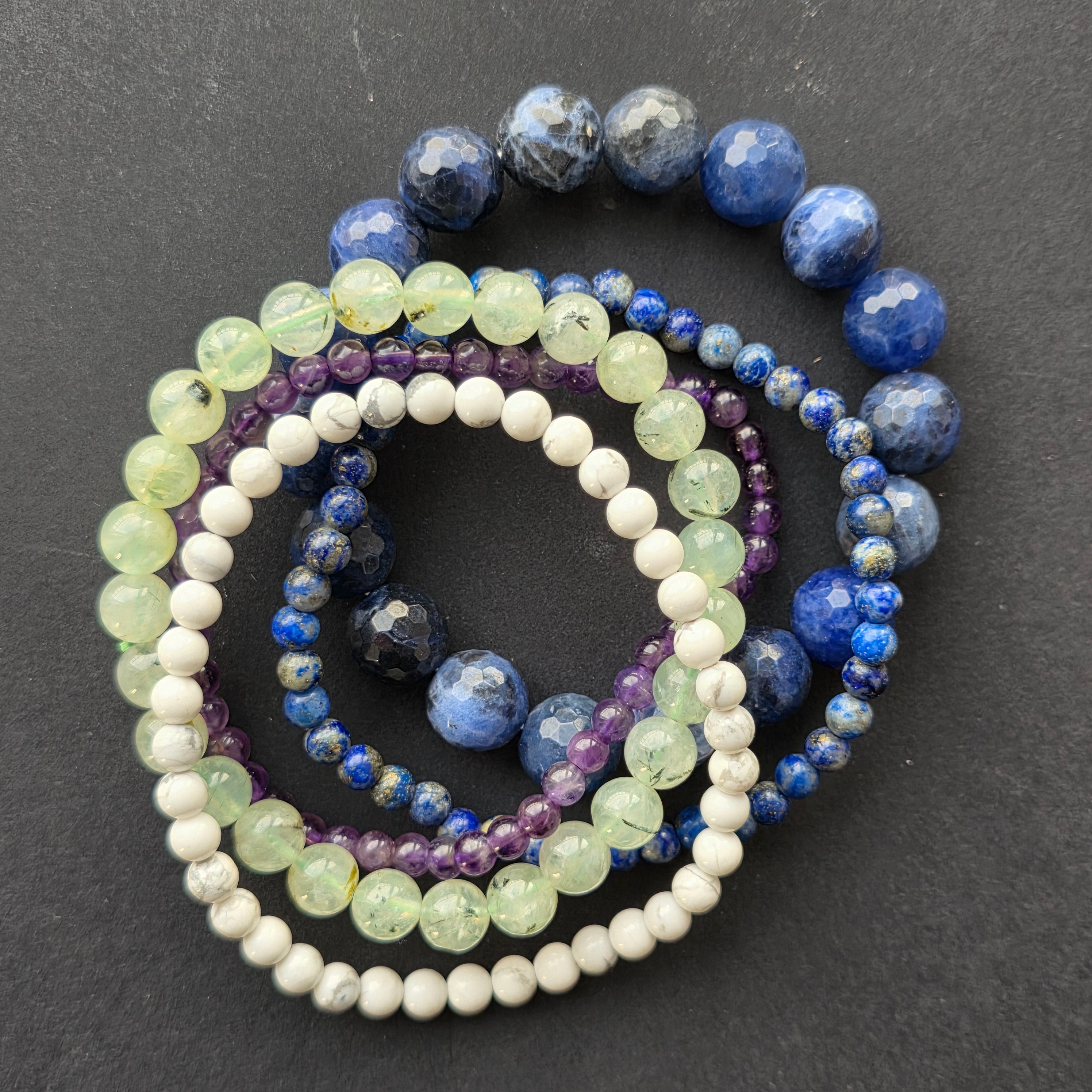 Ametiszt a 4 mm nyugalmat, tisztulást és spirituális egyensúlyt nyújt, kiegészítve a szettet egy nyugodt és finom rezgéssel.
