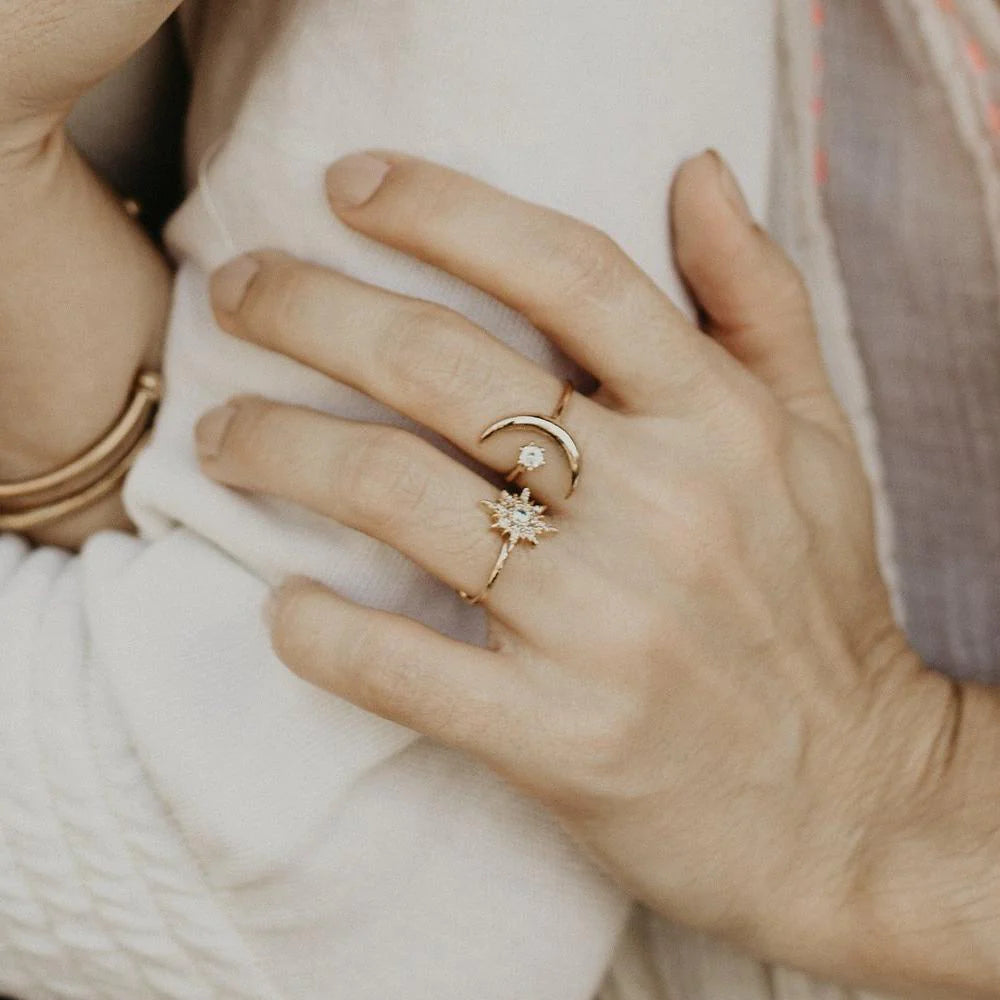14 karátos arannyal bevont állítható gyűrű, Talking to the Moon, Bohindie kollekció