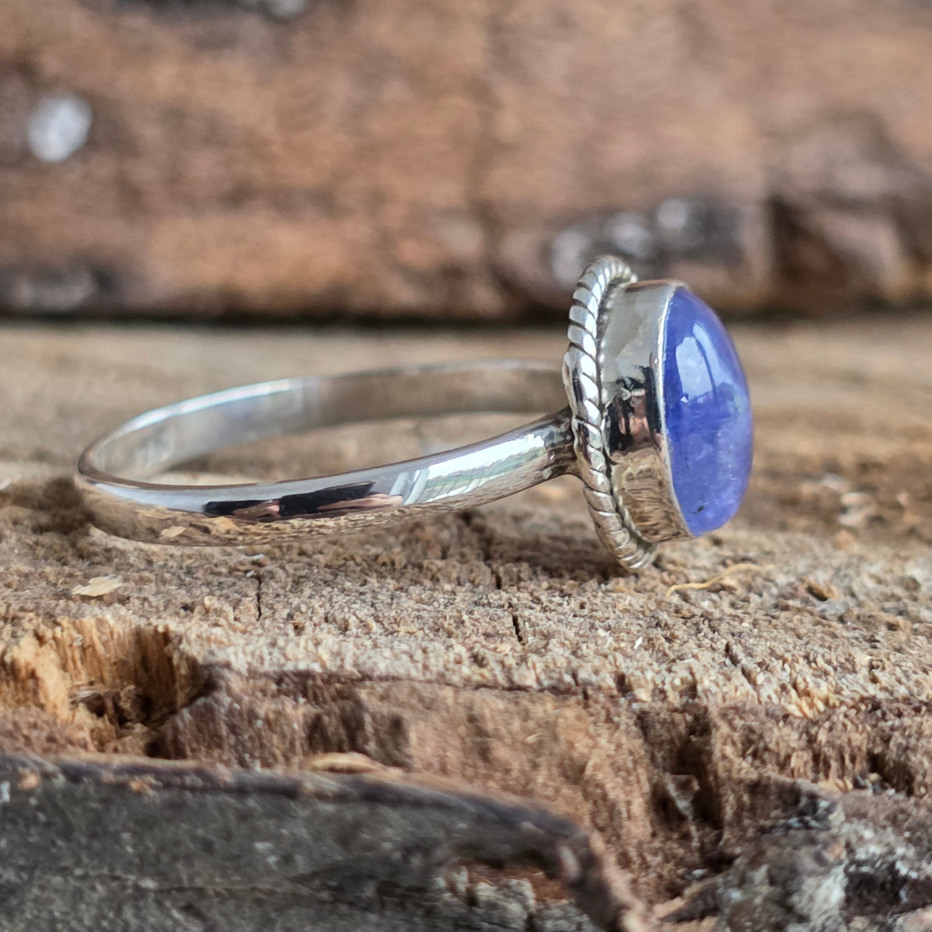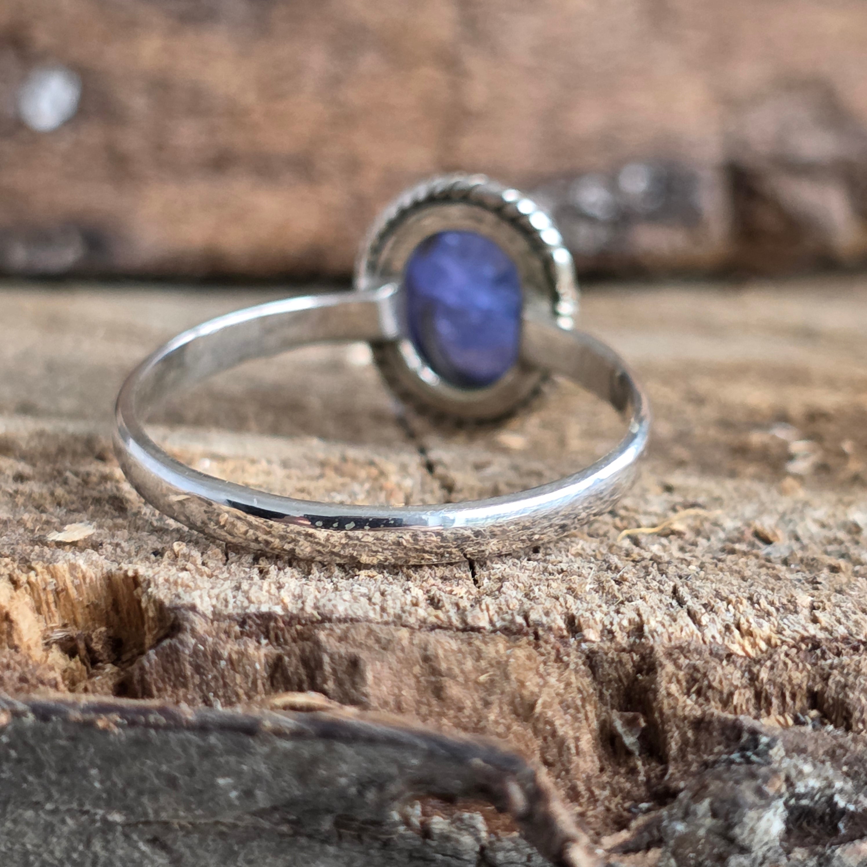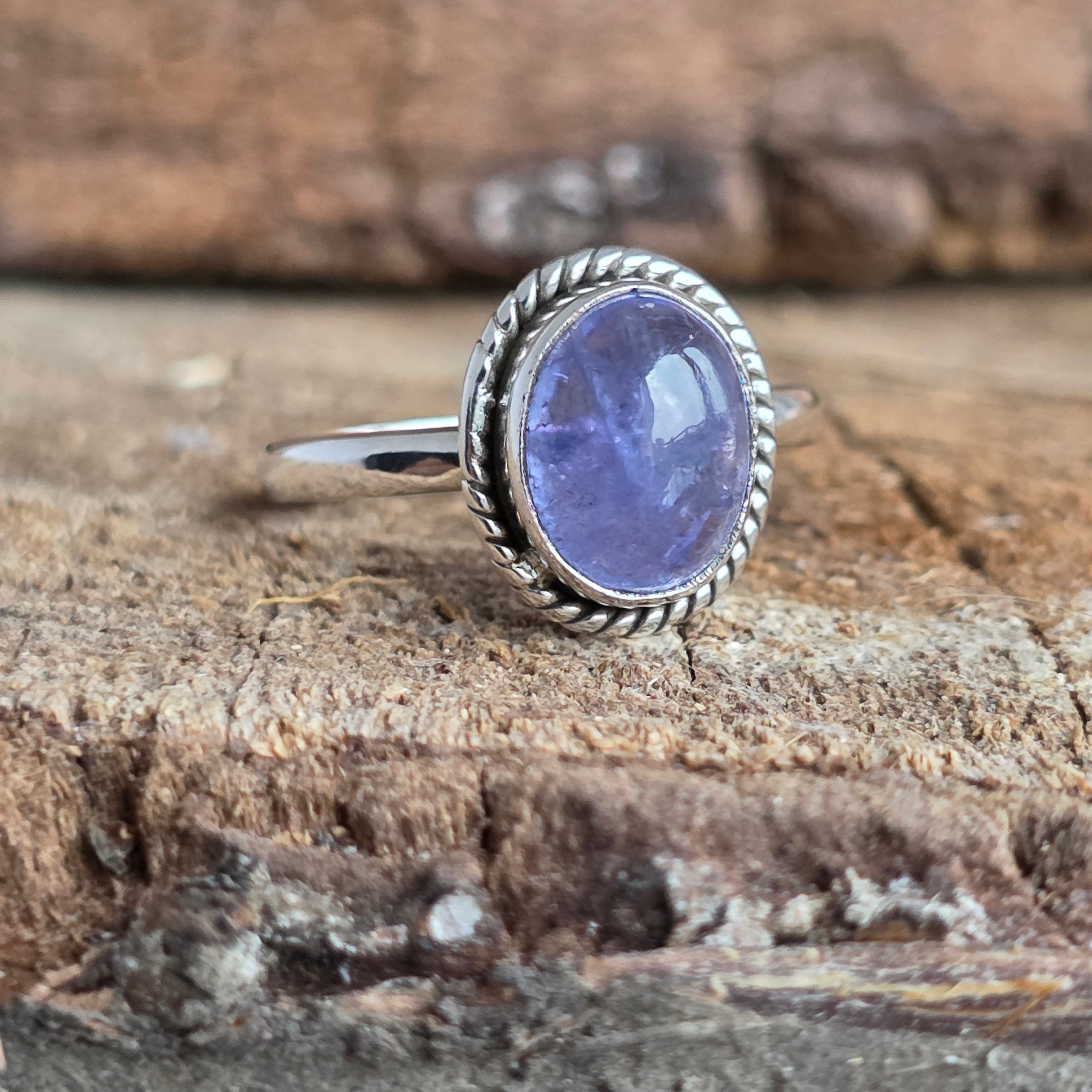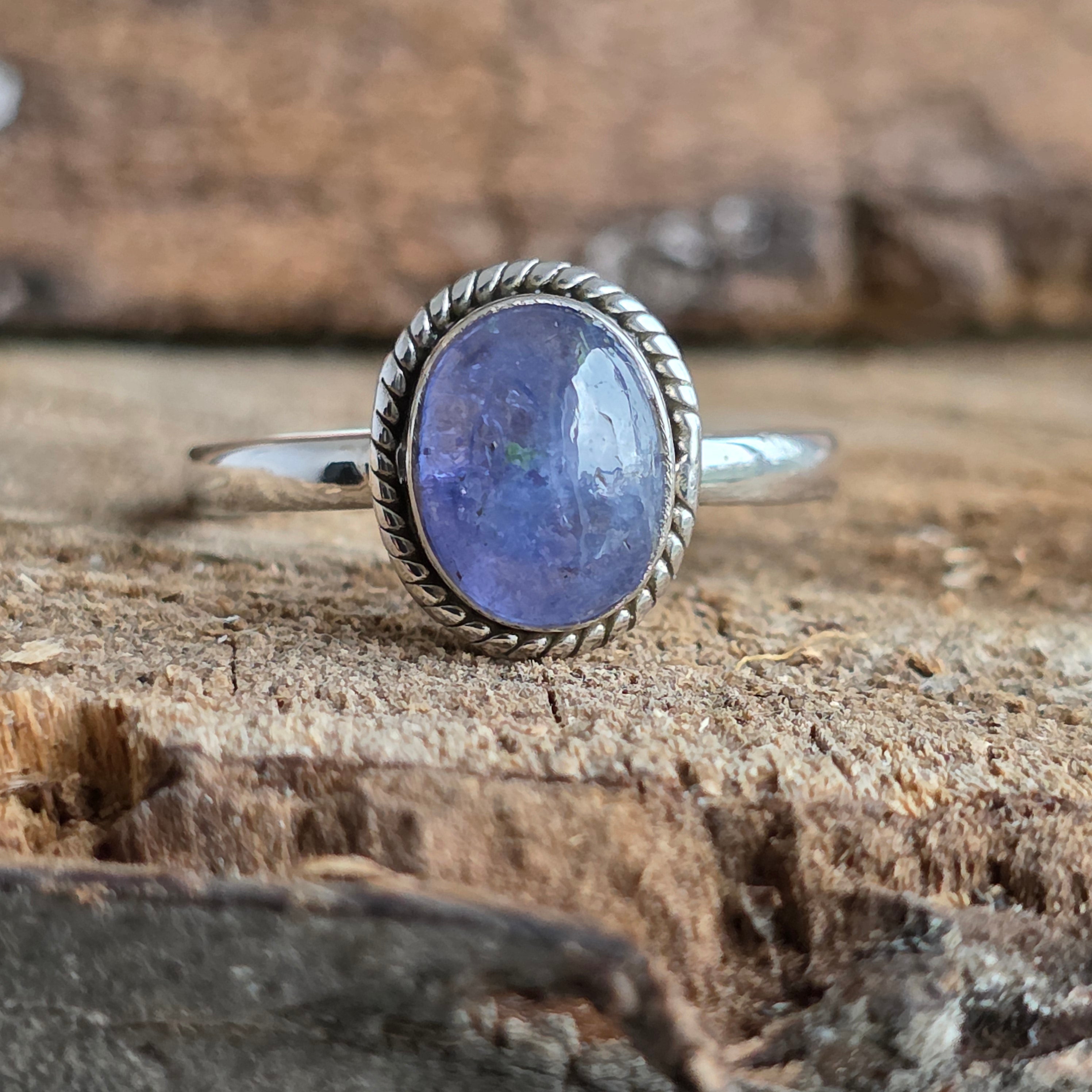 Egy gyönyörű 925-ös ezüst gyűrű természetes tanzanittal, kézzel készített környezetben sodrott drót munka ami kiemeli a kő finom kék-lila árnyalatait. A tanzanitot a változás és az éberség kövének tartják, ihletért és belső egyensúlyért viselik.