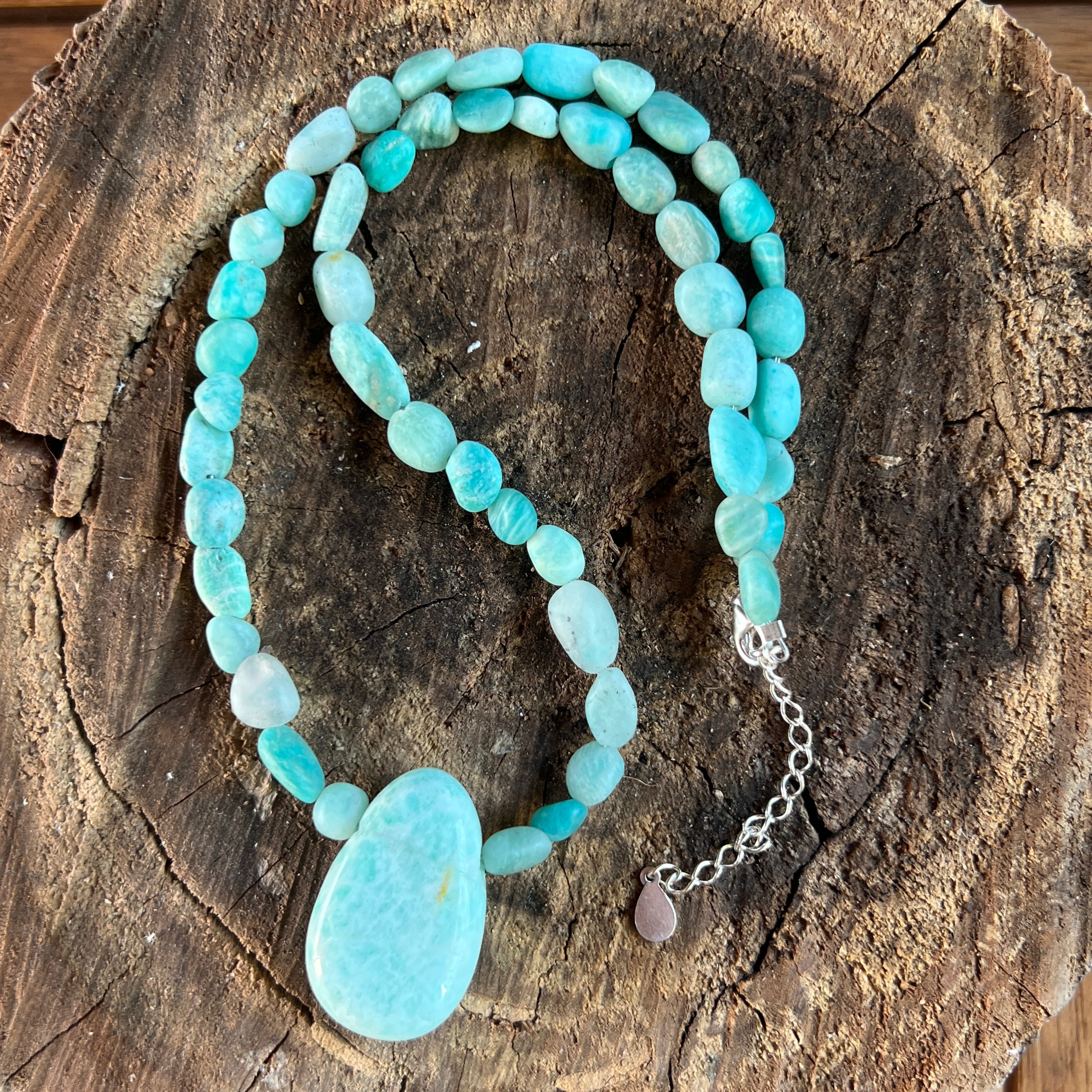 Anyagok: természetes amazonit 8–10 mm, csepp alakú amazonit ~3 cm, 925-ös ezüst