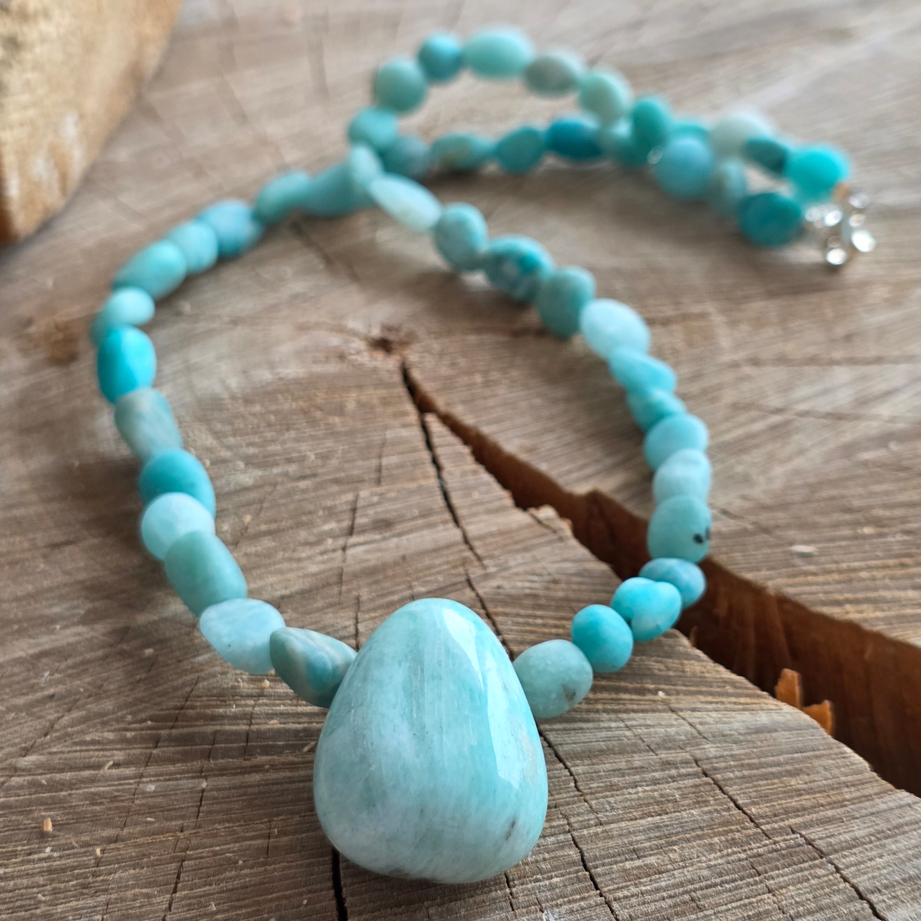 Descriere - Természetes amazonit nyaklánc Wave #49