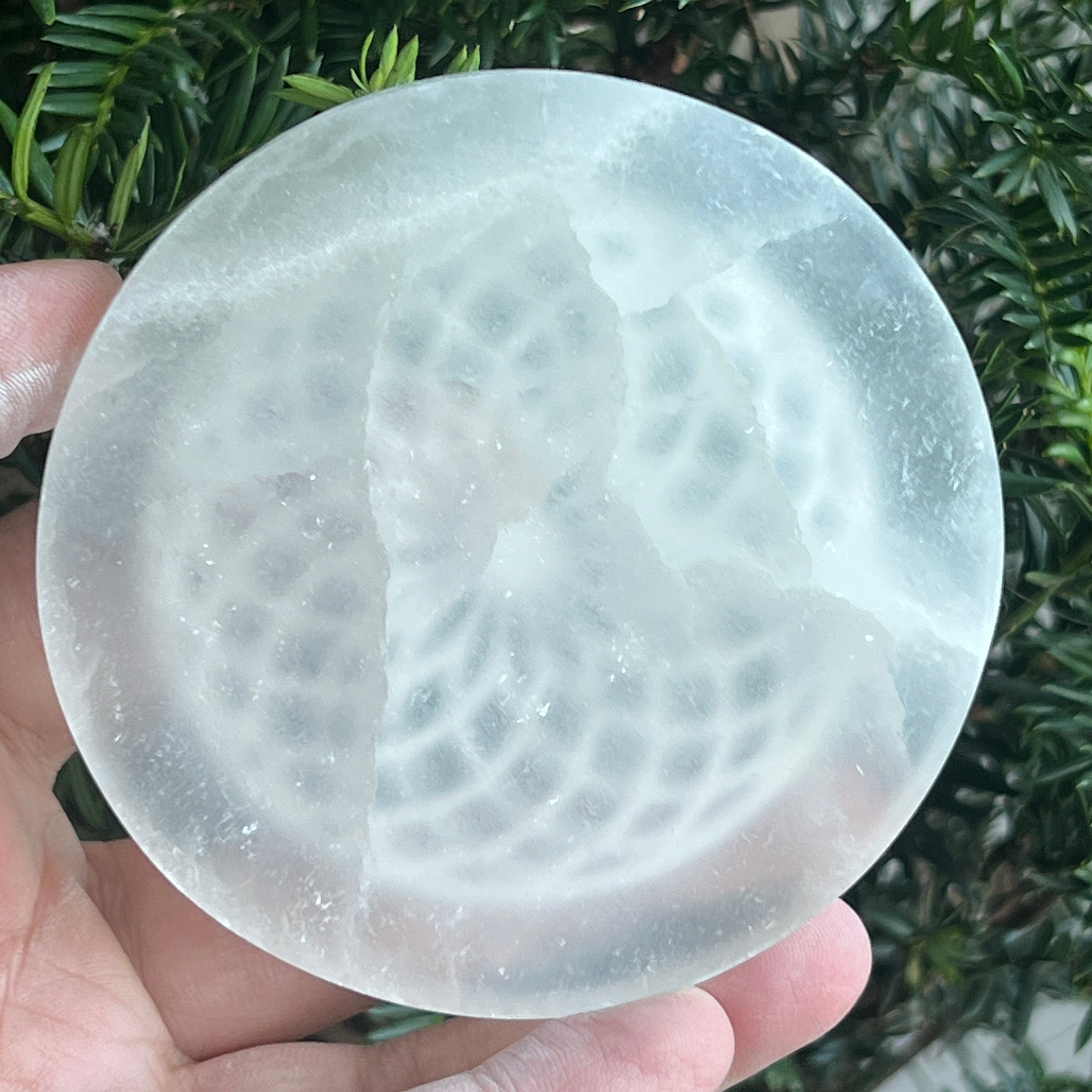 A lemez Thorus A szelenit felhasználható más kristályok tartórácsaként vagy energetikai eszközként meditációkban és tisztító rituálékban. Helyezze a munkahelyére, hálószobájába vagy nappalijába, hogy fenntartsa a tiszta és harmonikus légkört.