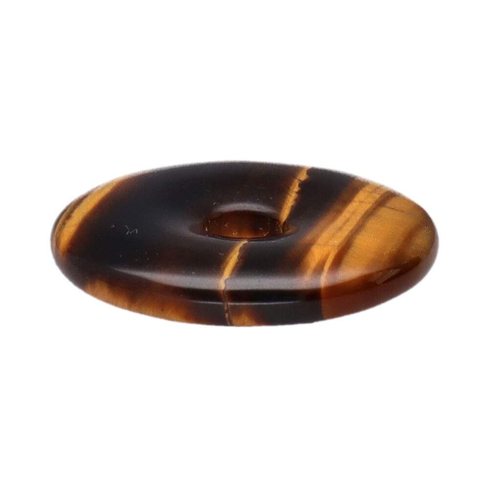 Az L méretű tigrisszem donut medál aranybarna visszaverődéseivel ragyog, amelyek úgy tűnik, mintha a fény mozgásával együtt mozognának.