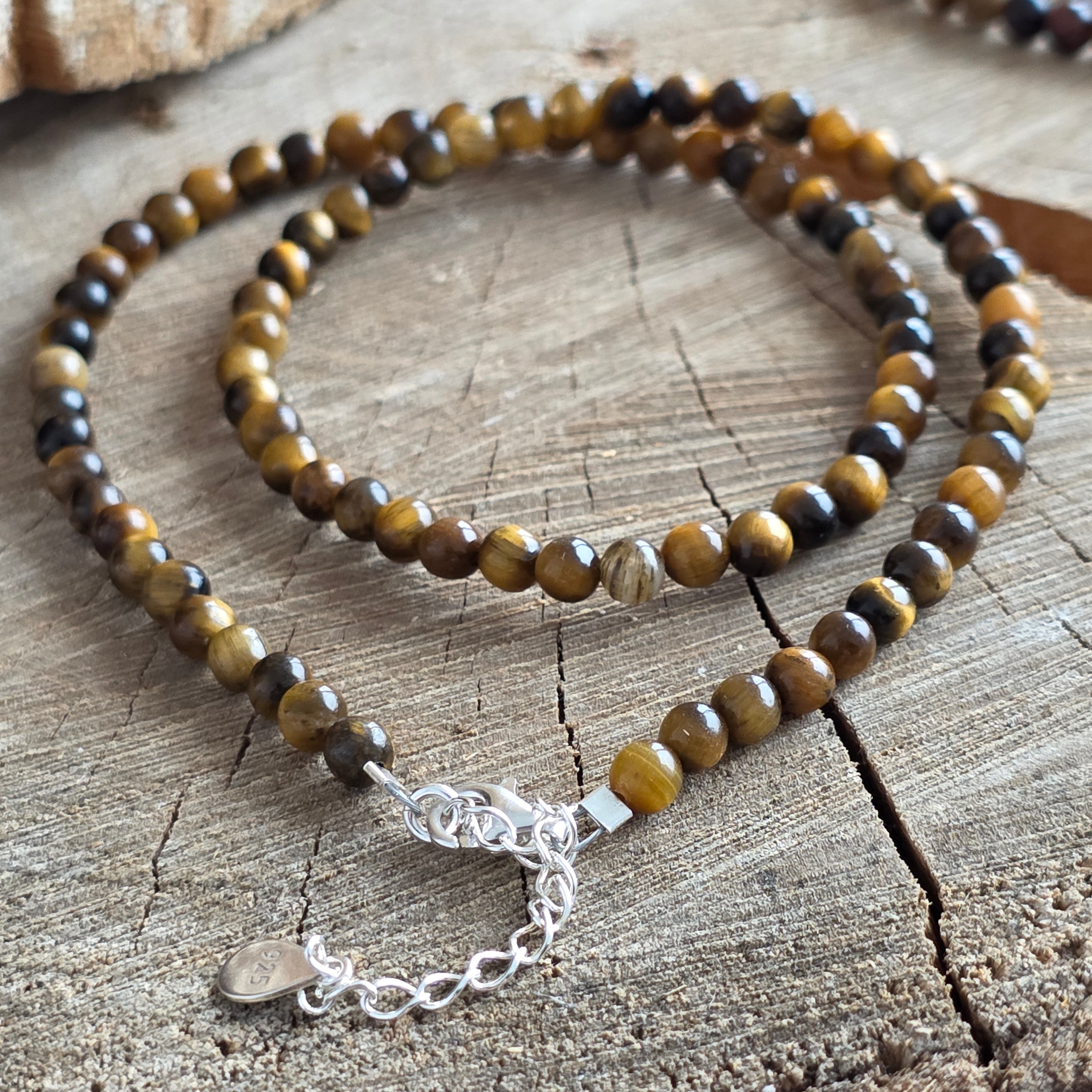 Egy ékszer, amely arany és réz árnyalatokban vibrál – mintha a szent erdő sűrű lombjai között szűrődő napsugarak lennének. Ez a Tigrisszem nyaklánc 4 mm-es gyöngyökkel finom ragyogást mutat, mintha a föld maga suttogna egy ígéretet.