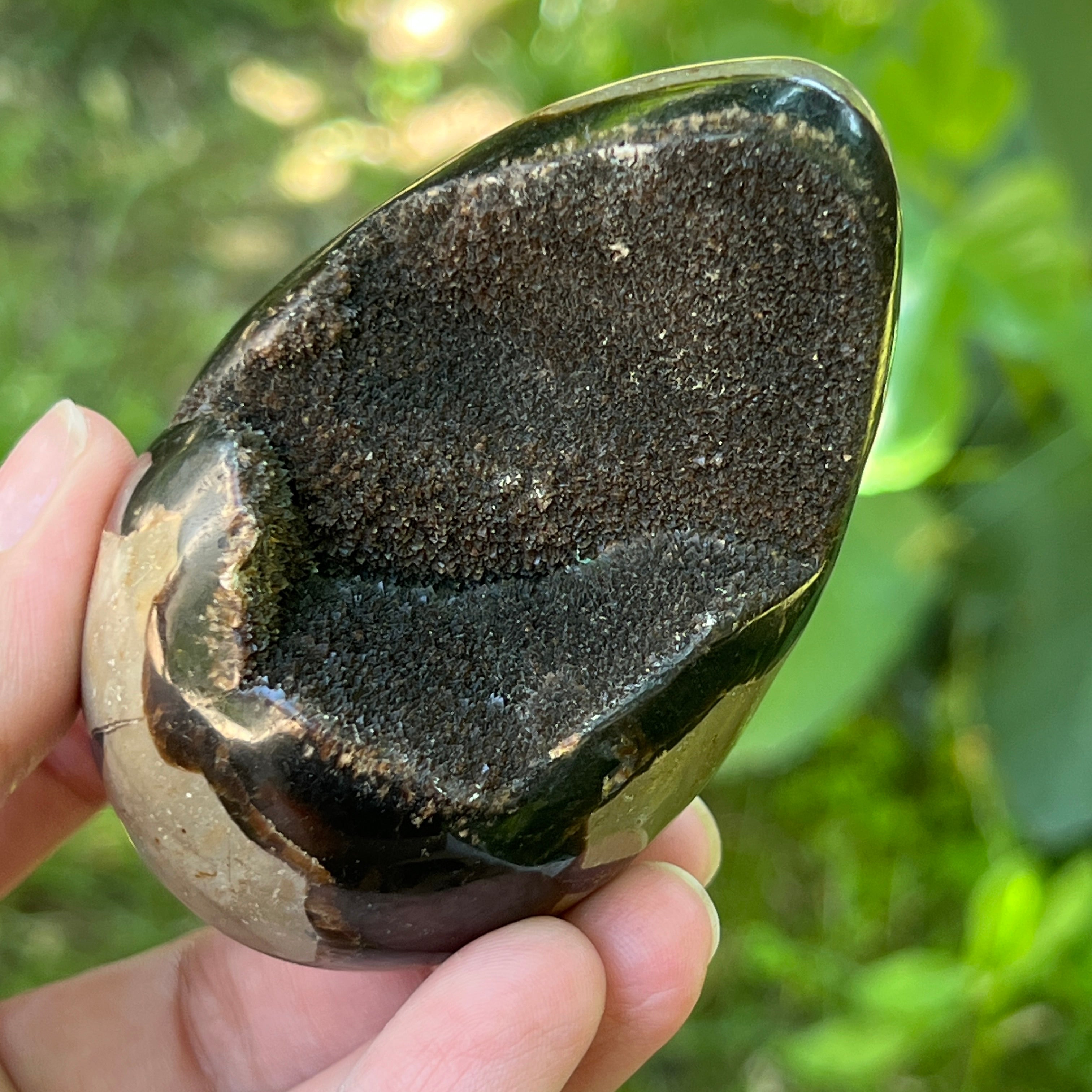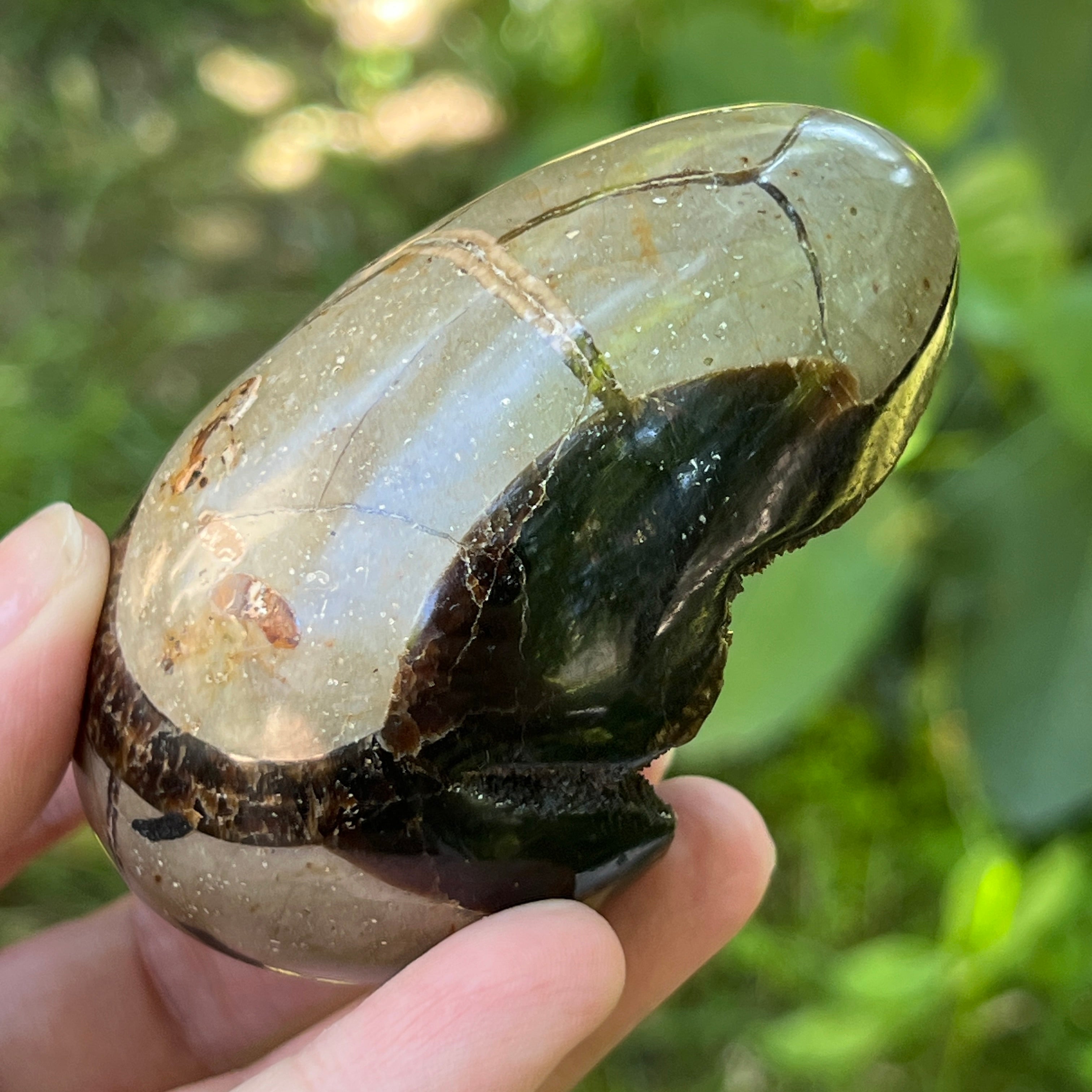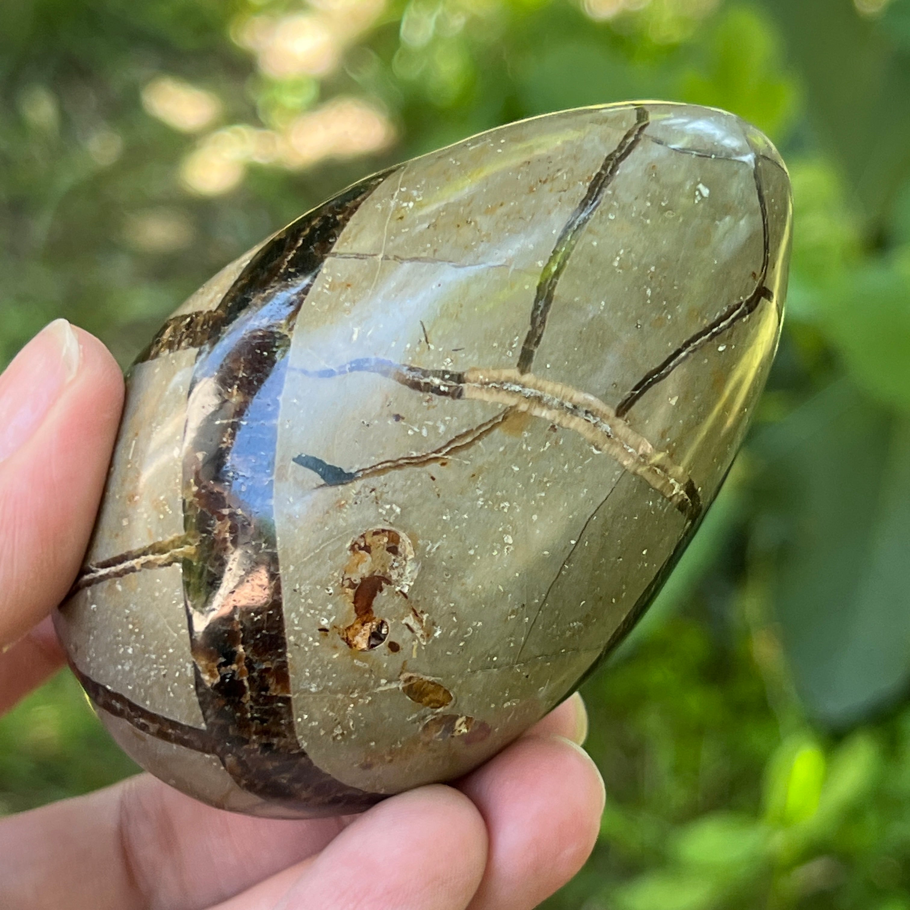 A Septaria kalcitból, limonitból, gipszből és baritból készül, olyan ásványokból, amelyek egyedi játékot alkotnak ebben a kőben, és különleges megjelenést kölcsönöznek neki.