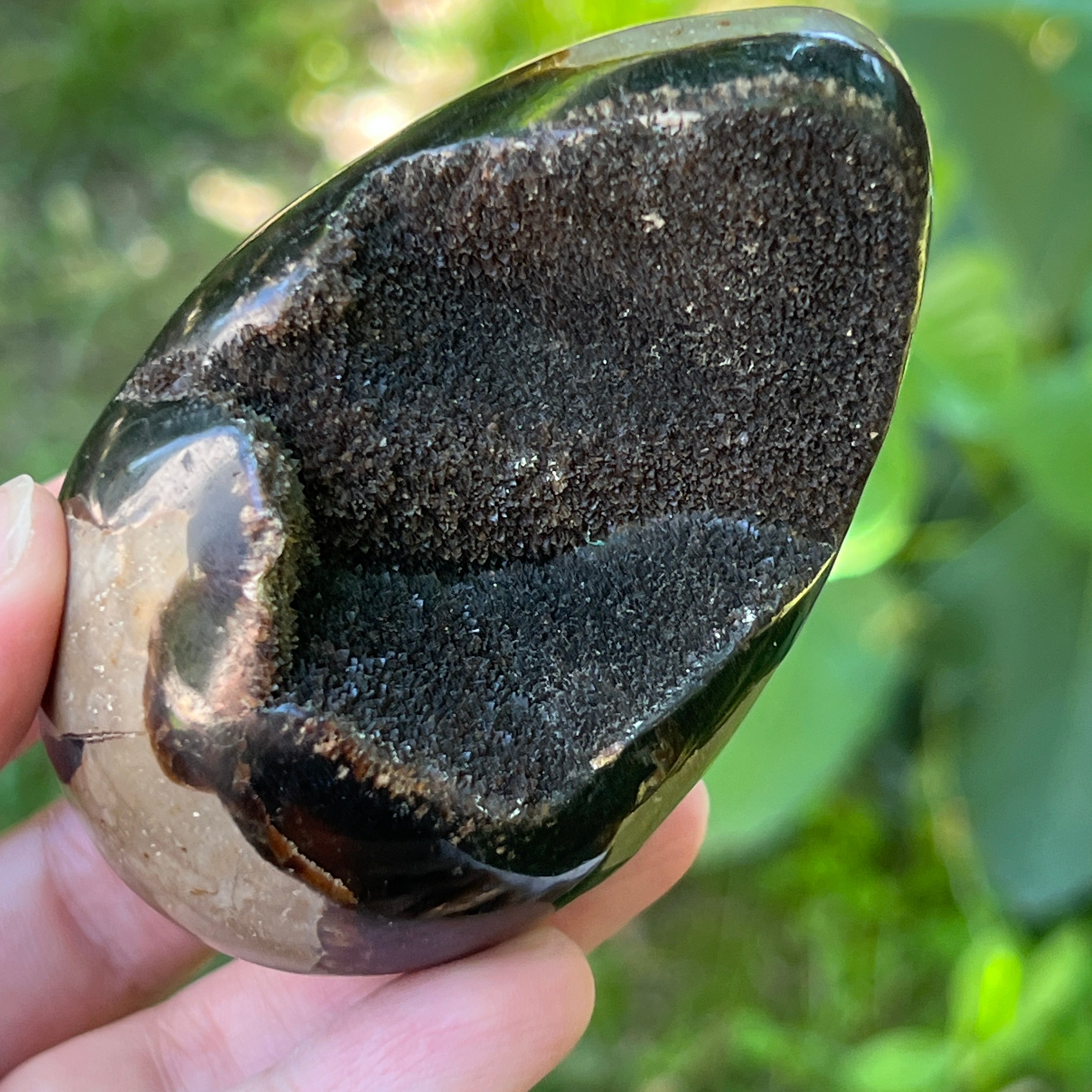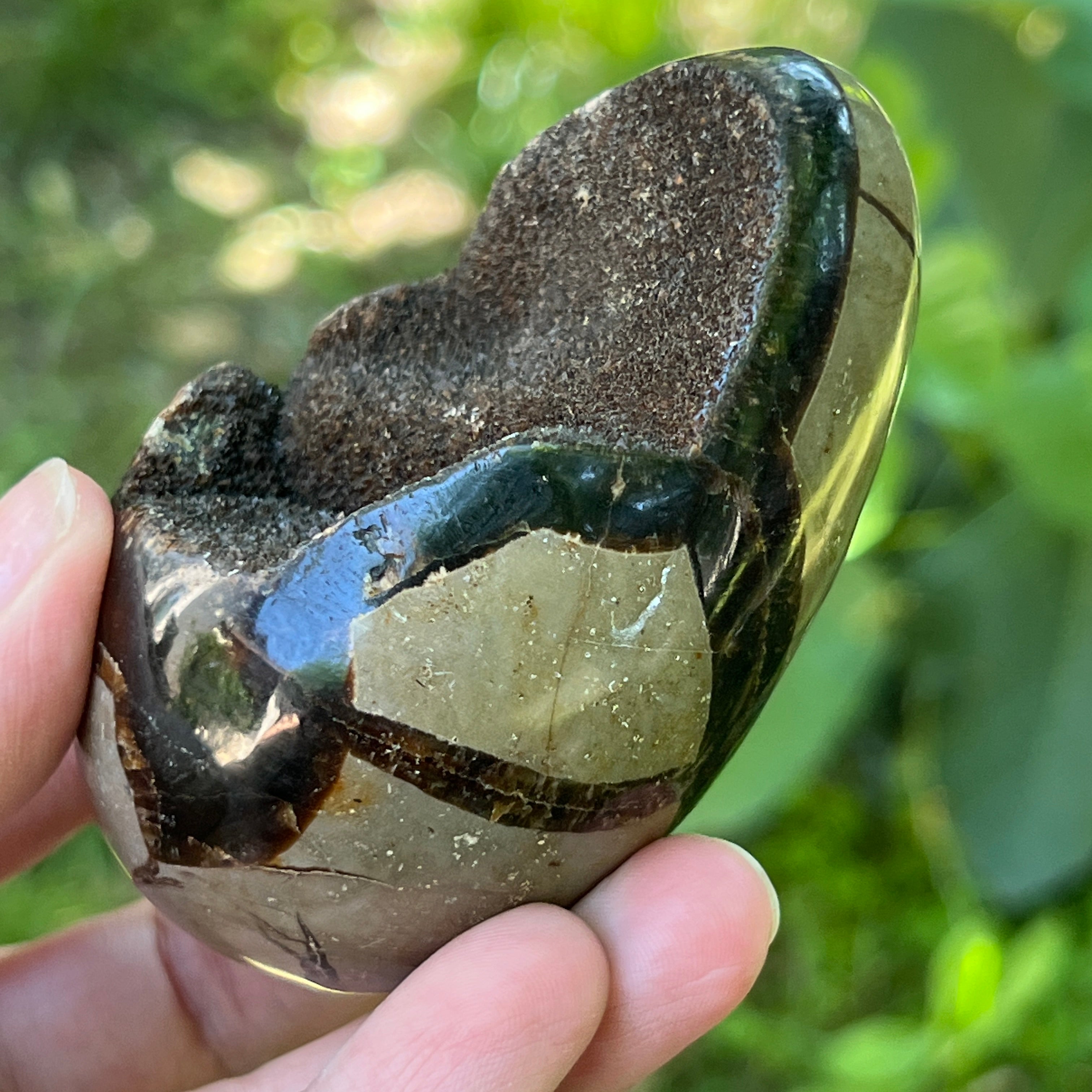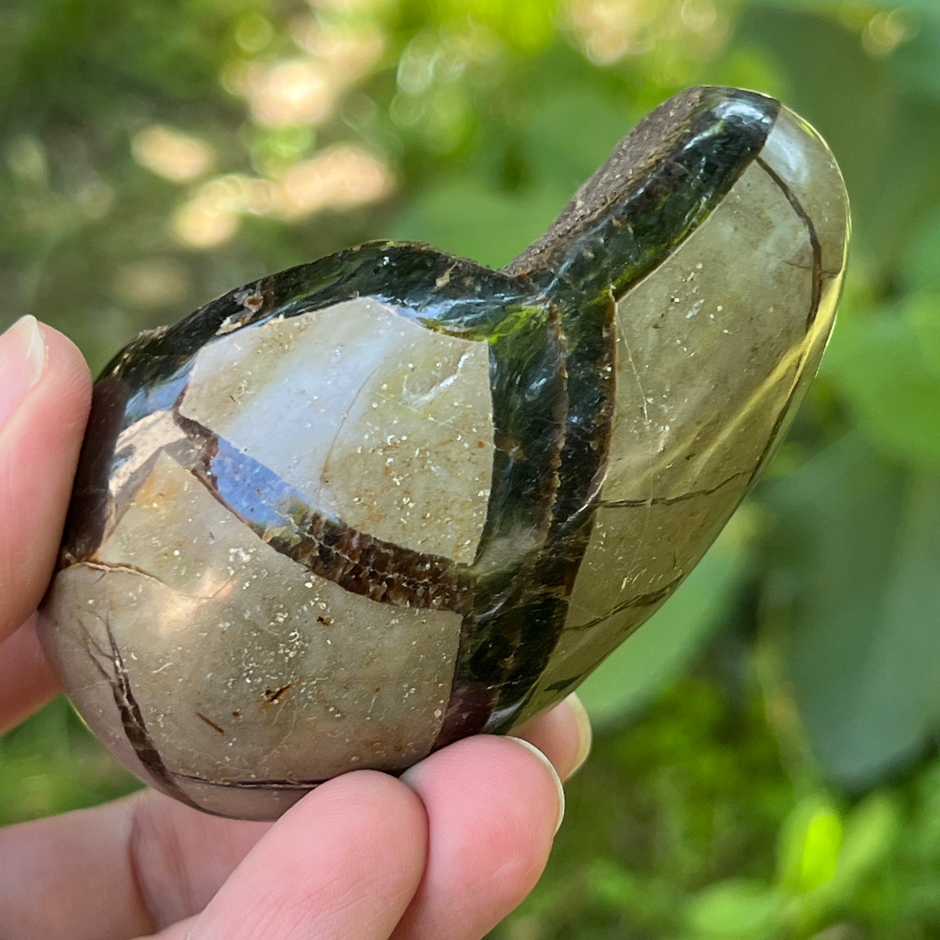 A Septaria kalcitból, limonitból, gipszből és baritból készül, olyan ásványokból, amelyek egyedi játékot alkotnak ebben a kőben, és különleges megjelenést kölcsönöznek neki.