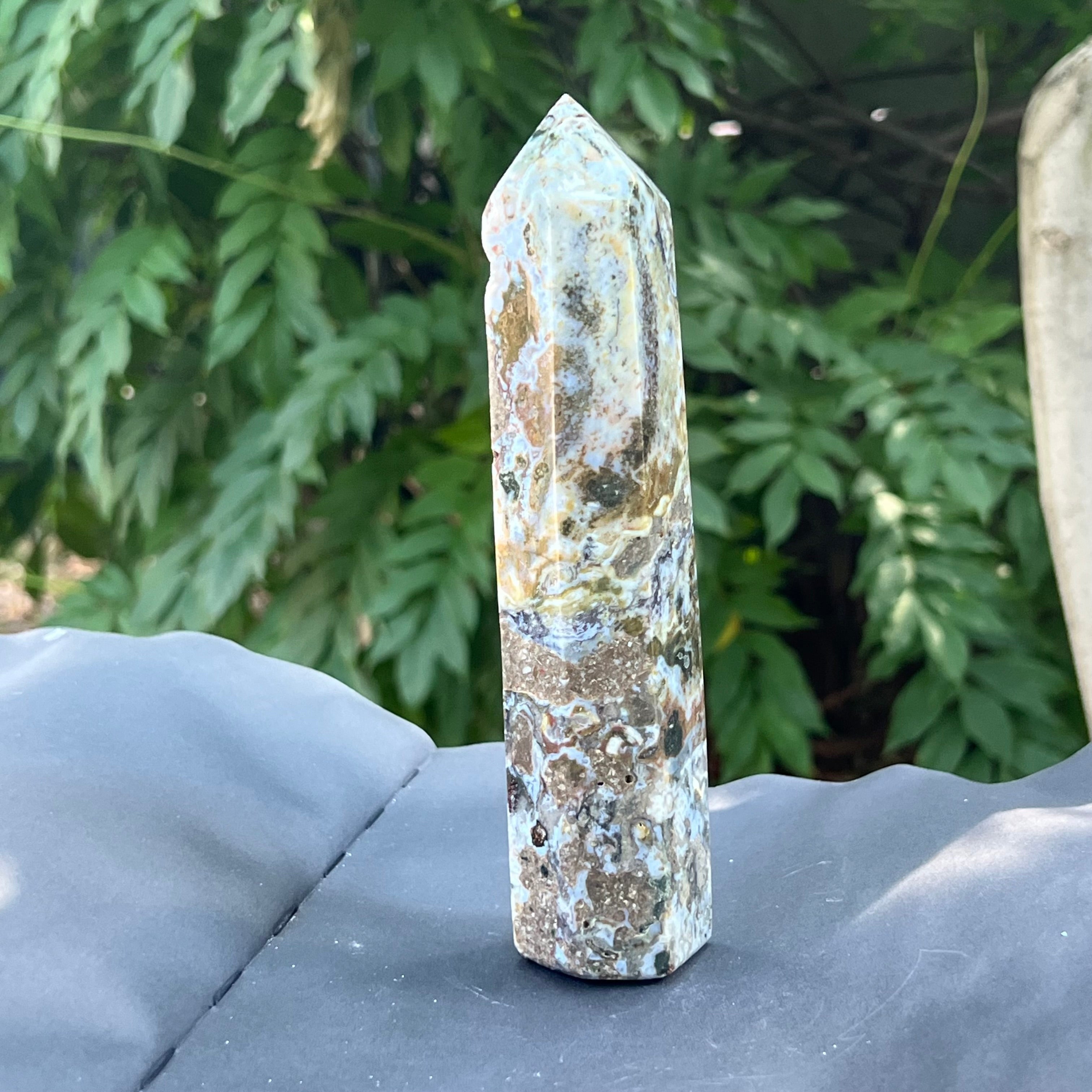 Ezenkívül a torokcsakrával társítják, amely a kommunikációhoz és a kreativitáshoz kapcsolódik. Úgy tartják, hogy az óceán jáspis serkentheti ezeket a tulajdonságokat a térben, elősegítve a tiszta kommunikációt, a kreatív kifejezést és az inspirációt.