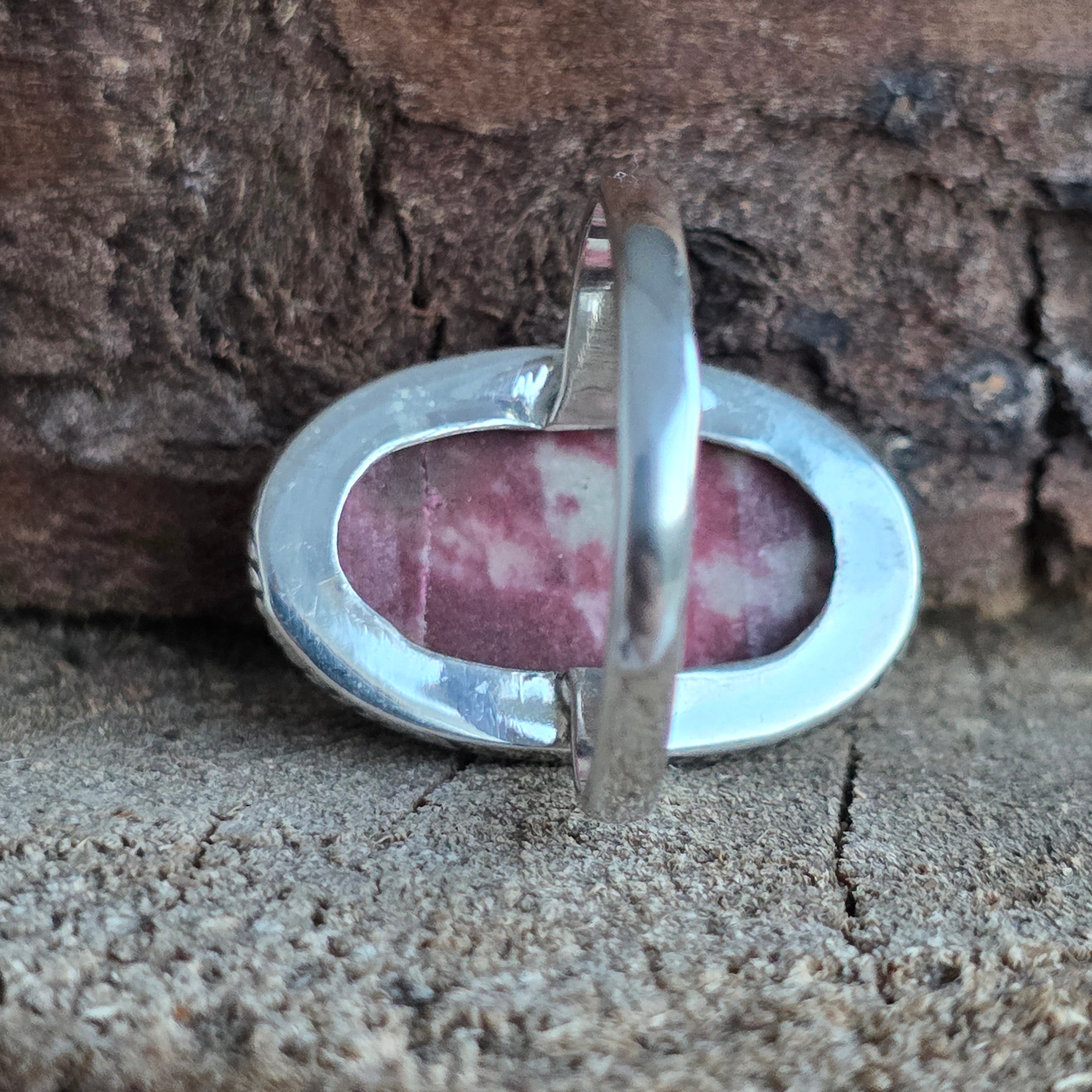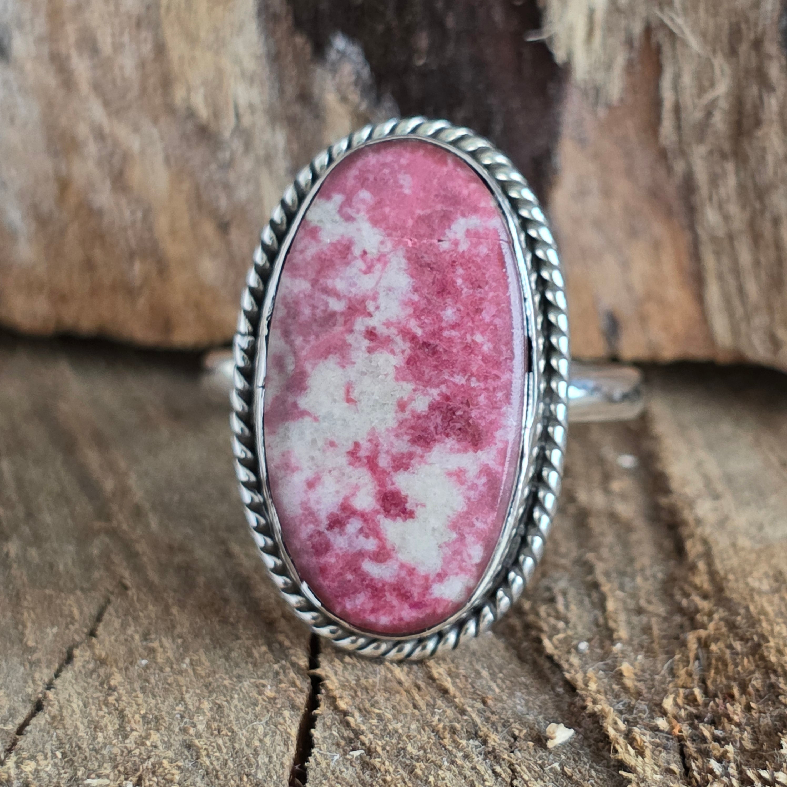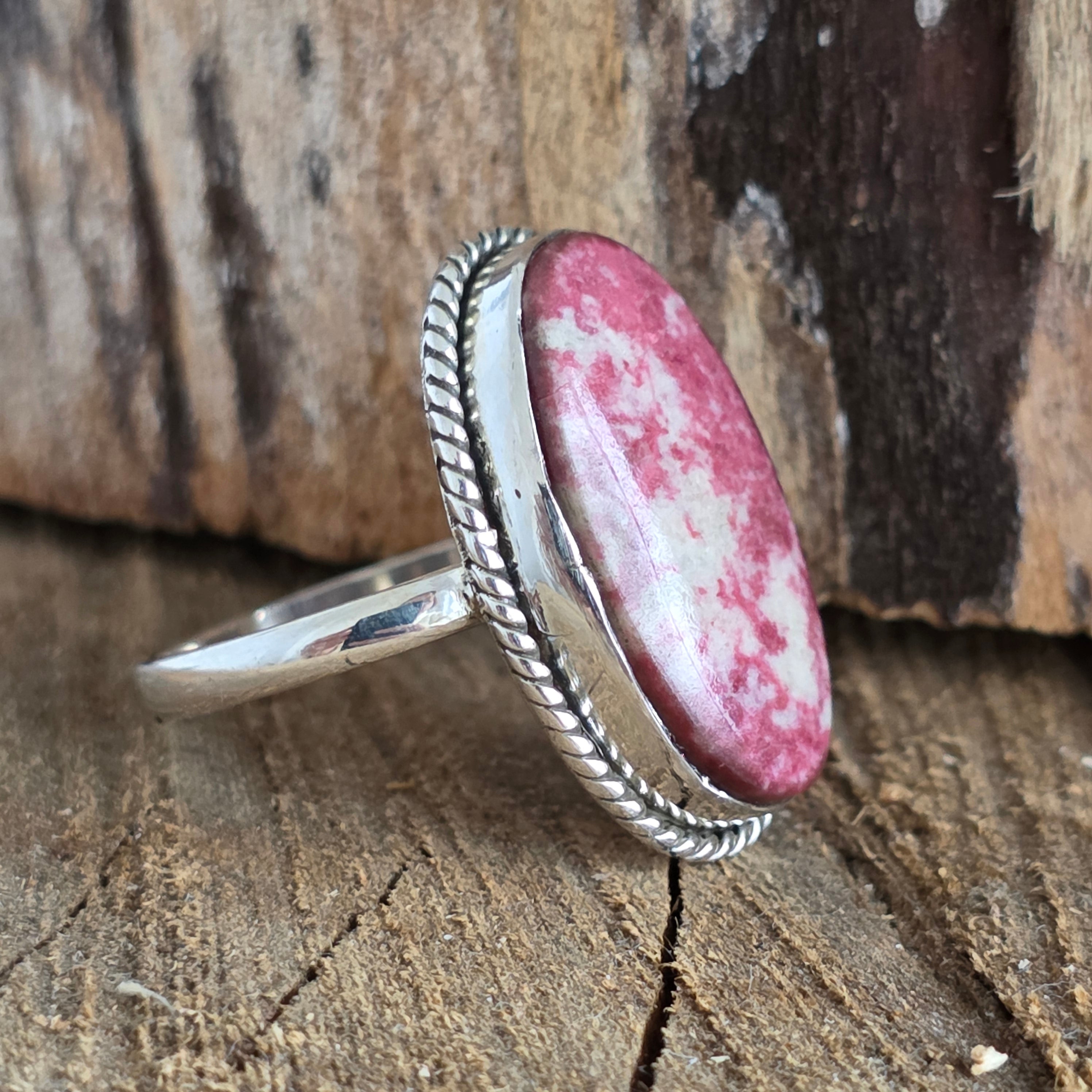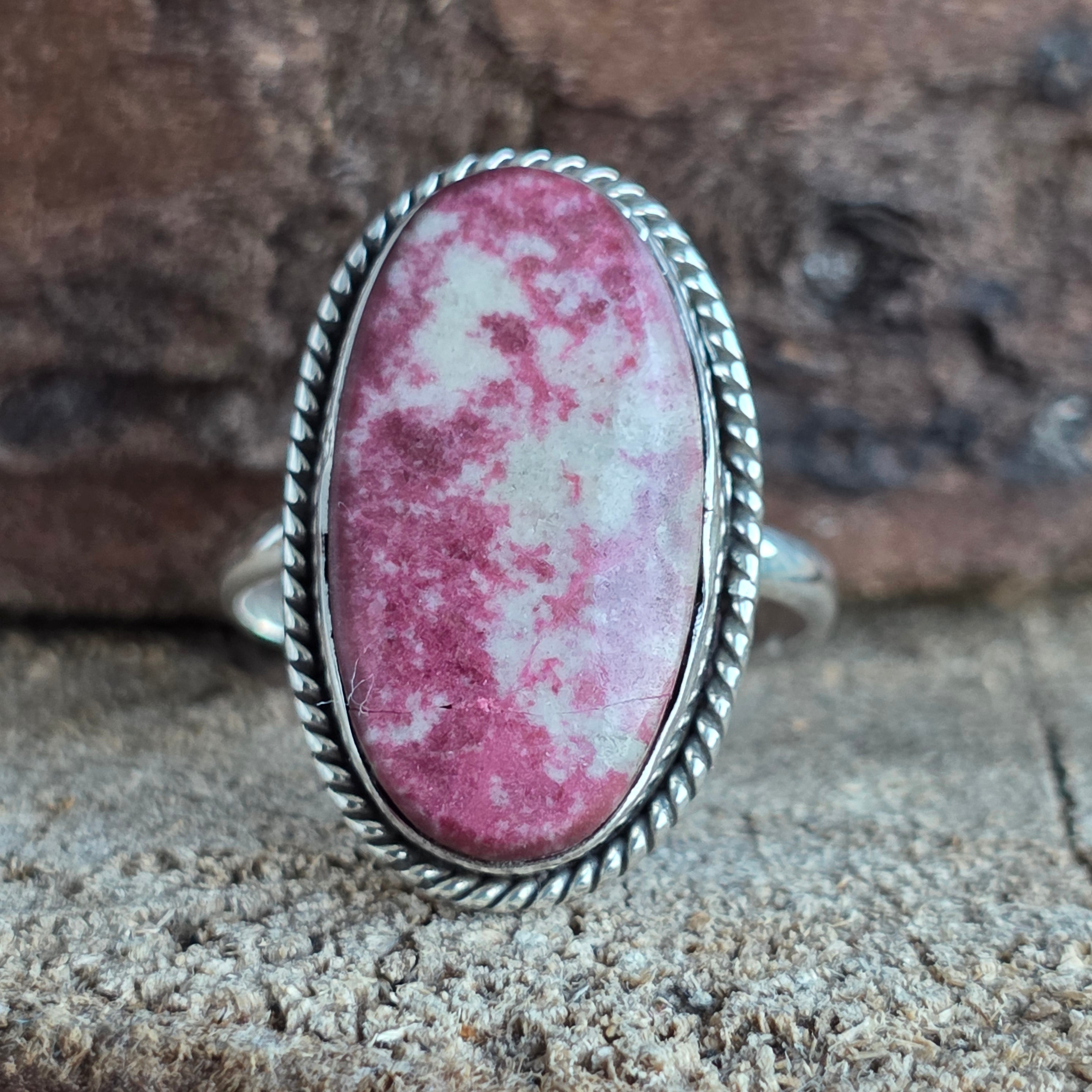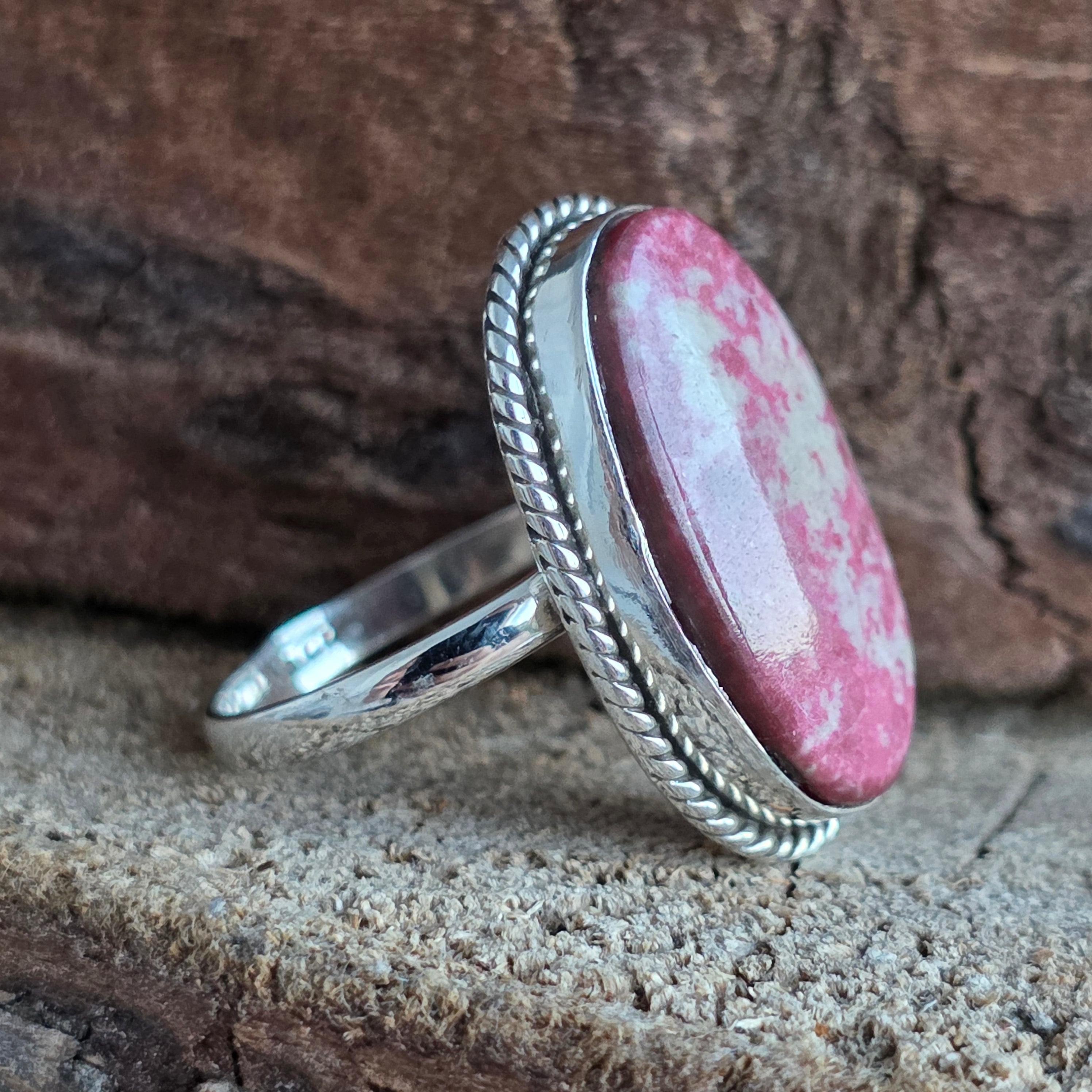 Egy 925-ös ezüstből készült gyűrű, amely magában hordozza az északi föld energiáját – Tulit, a zoizit egy rózsaszín változata, természetes textúrával és finom színárnyalatokkal a lazacrózsaszíntől, fucsia színűtől a mészkő fehérig.