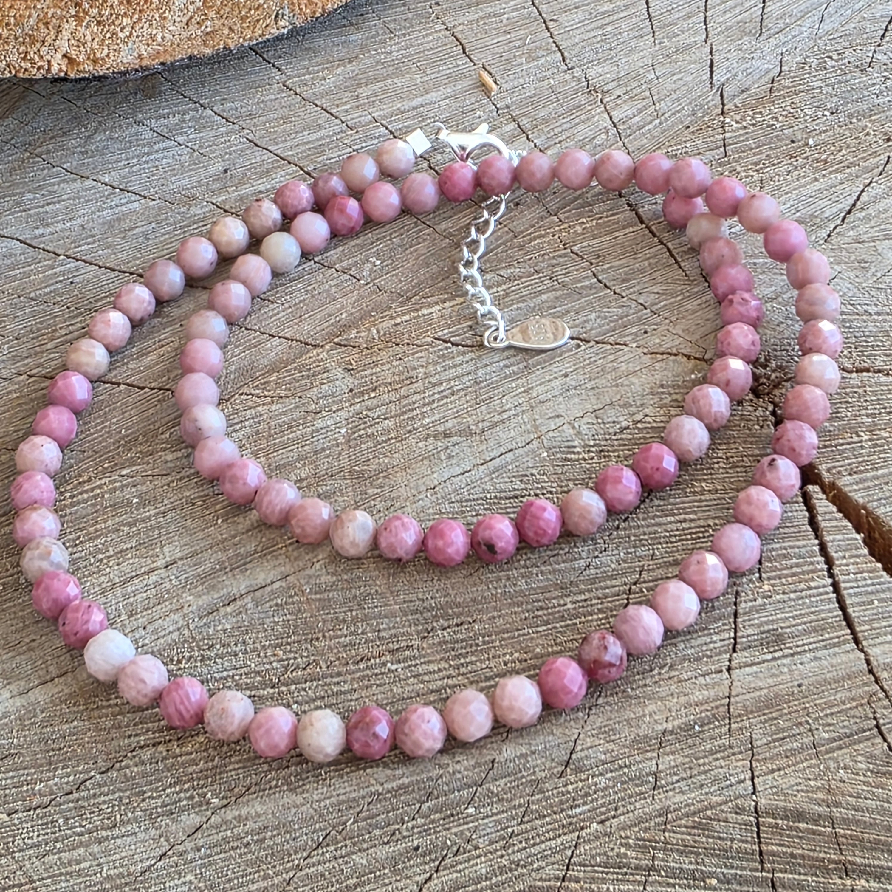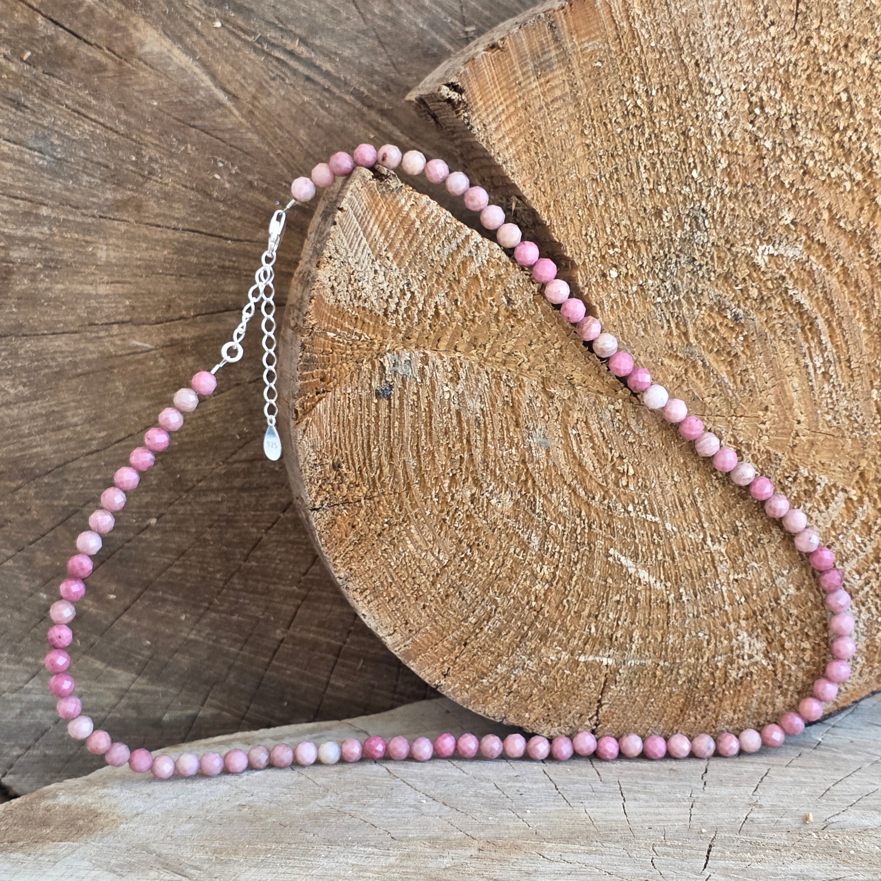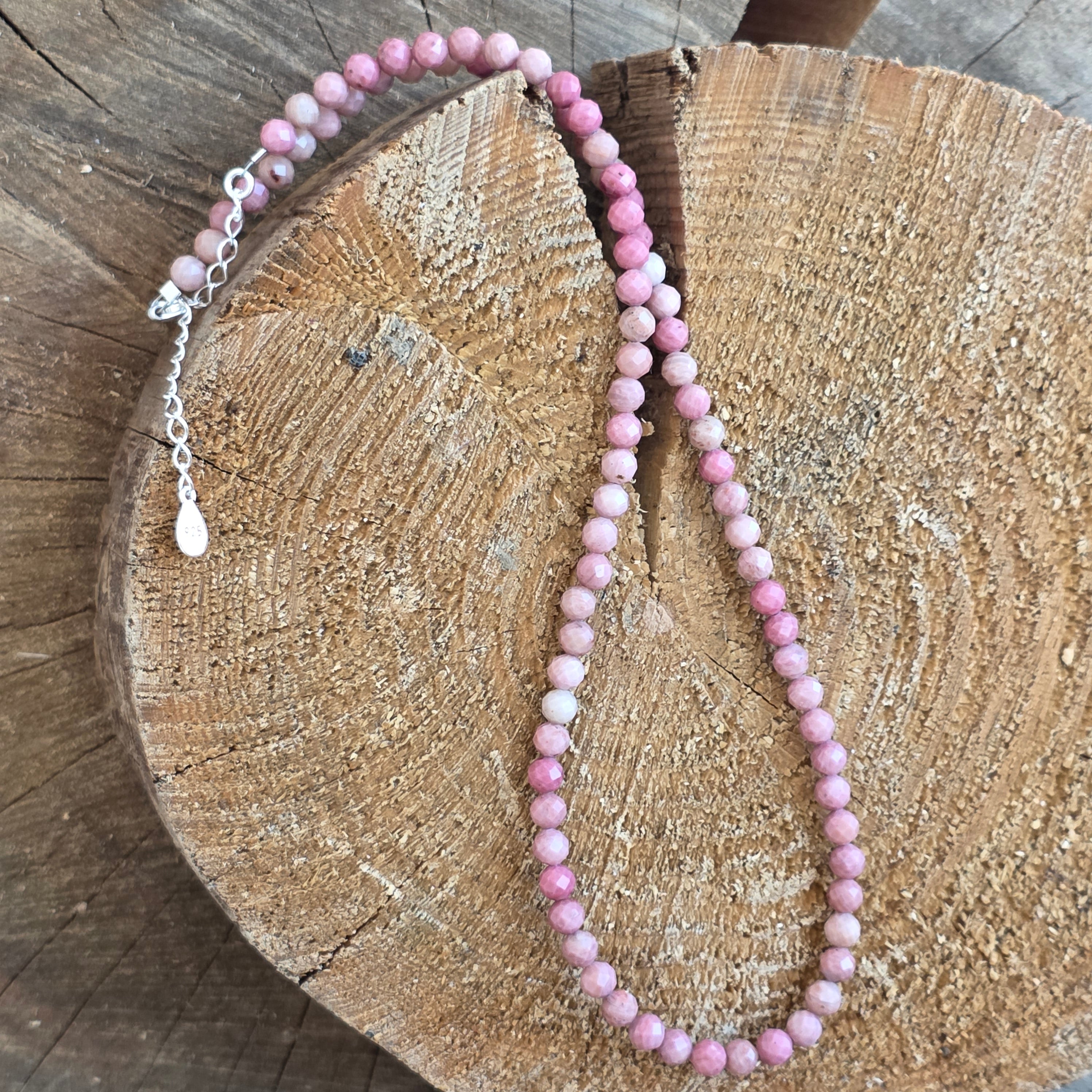 Anyagok: természetes rózsaszín opál, 3 mm-es fazettált gyöngyök, 925 ezüst