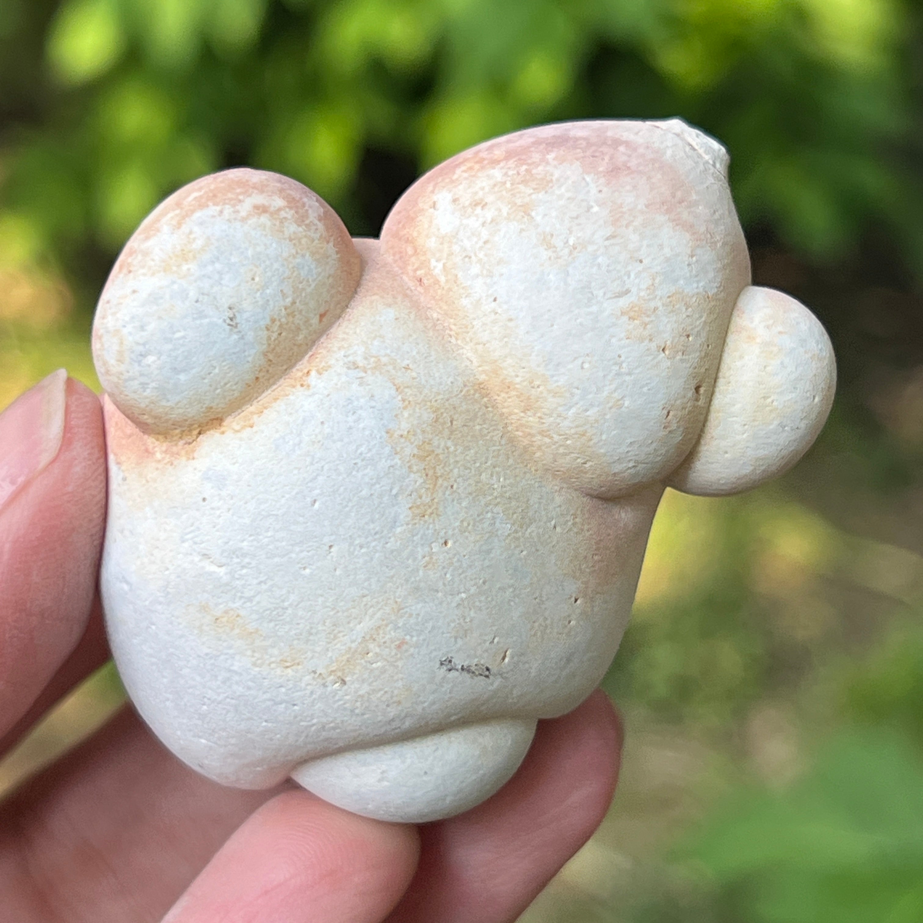 Lágy, lekerekített formái az anyakirálynő prehisztorikus szobrocskáira emlékeztetnek – például a willendorfi Vénuszra.