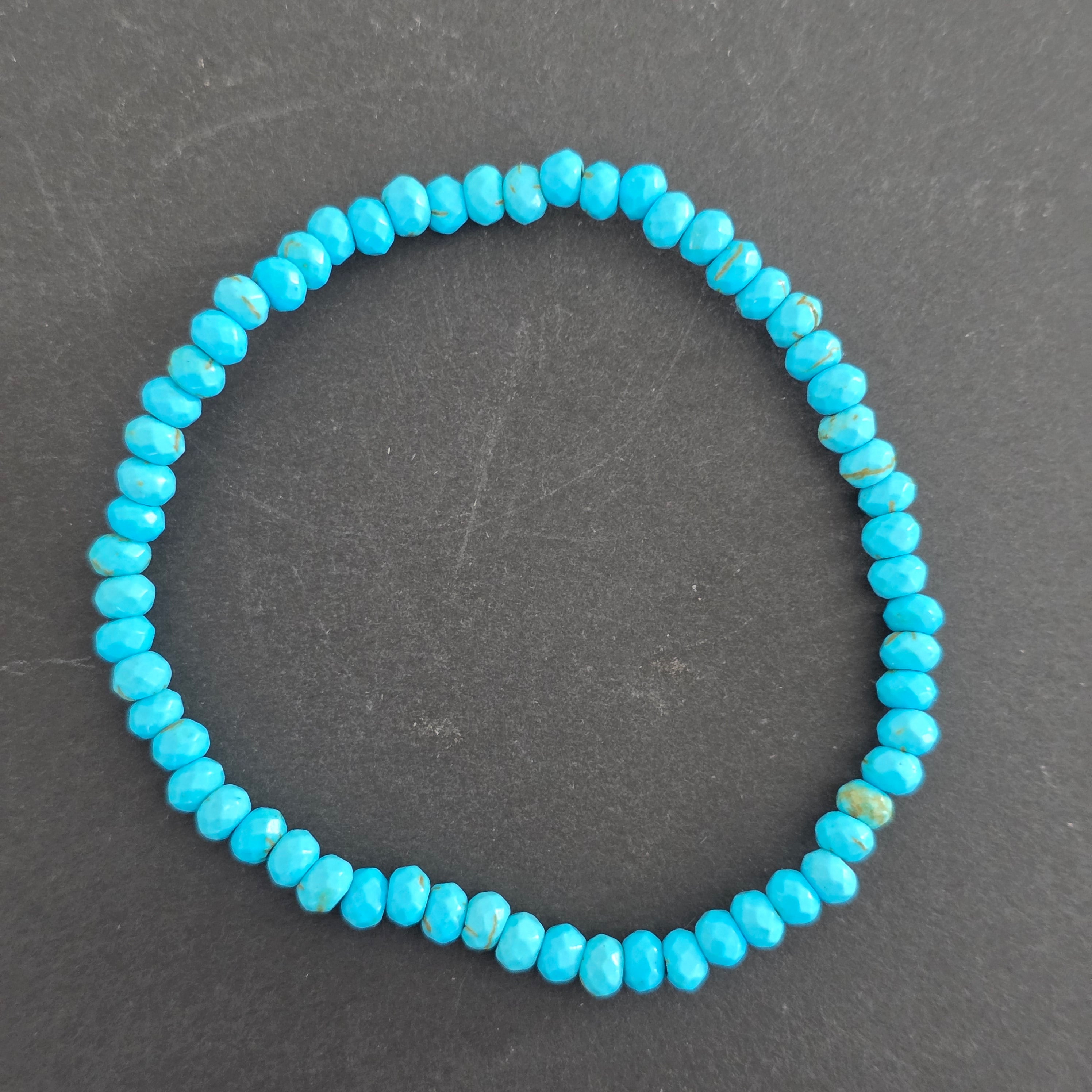 Türkizkék tűzött achát korongokból készült karkötő 4x3 mm