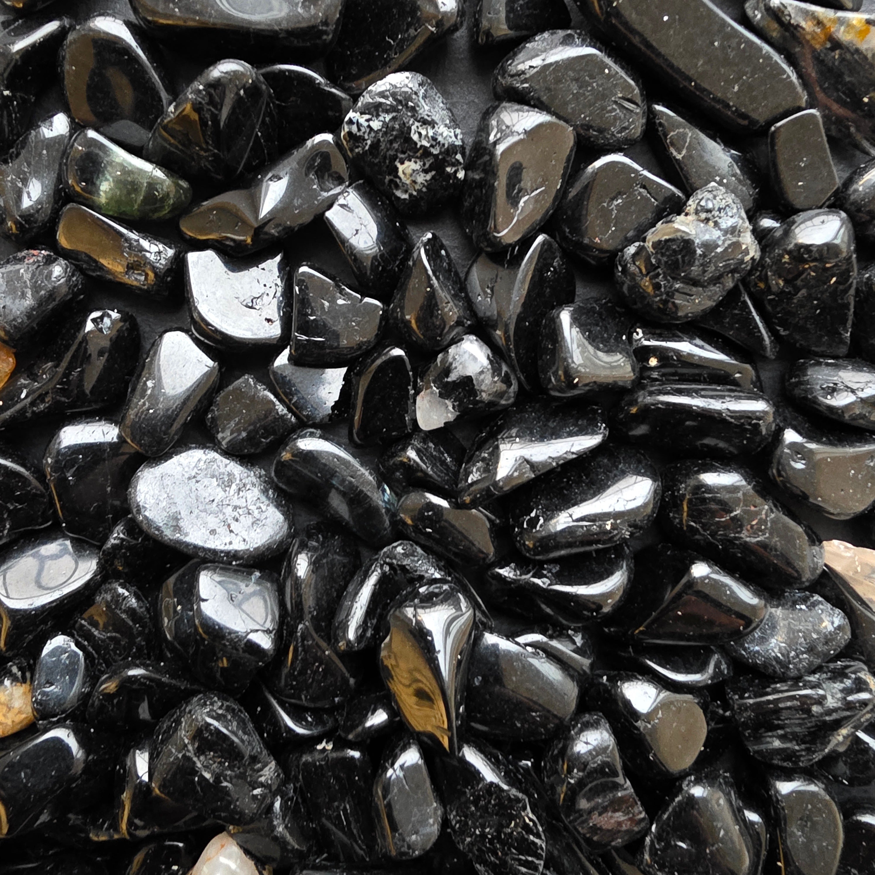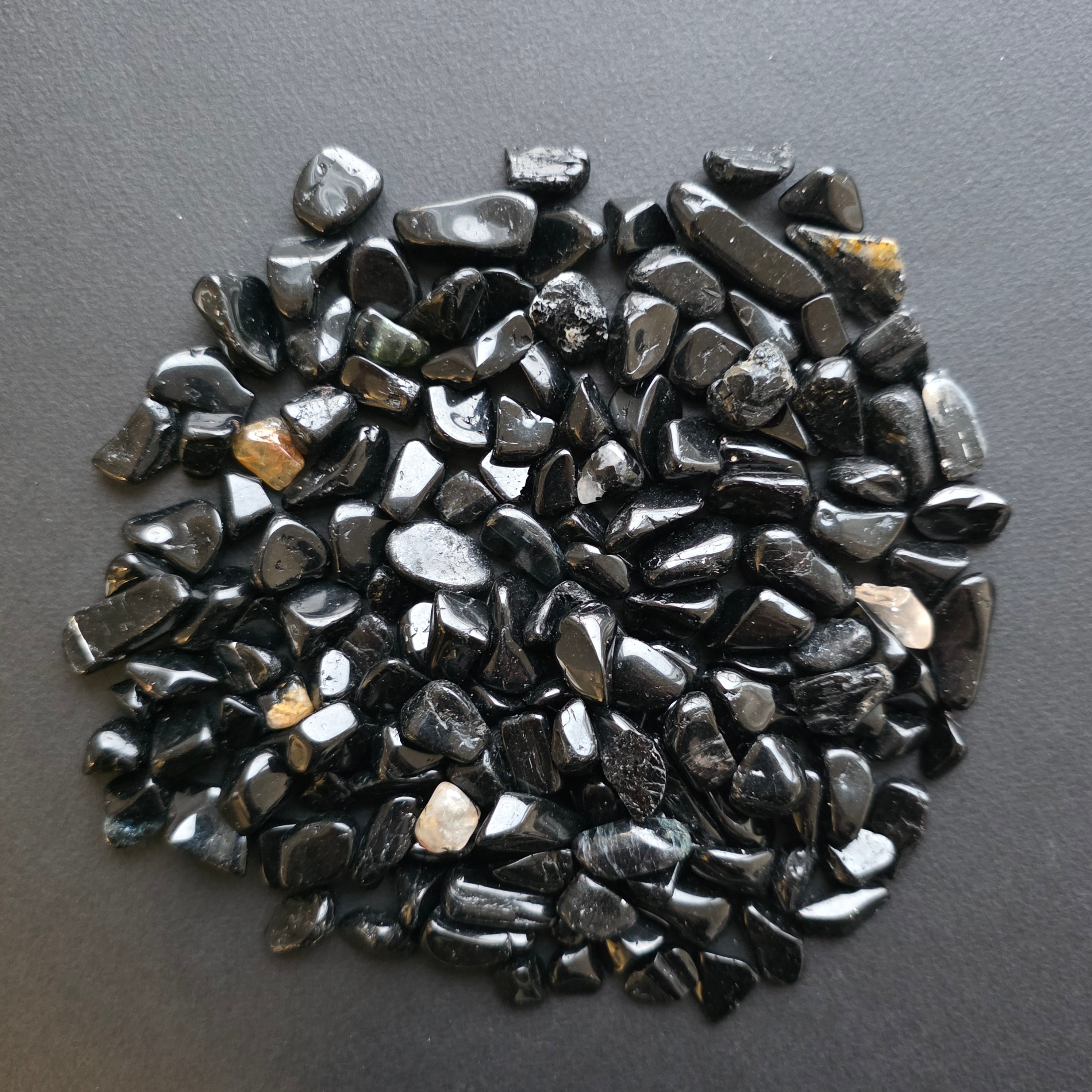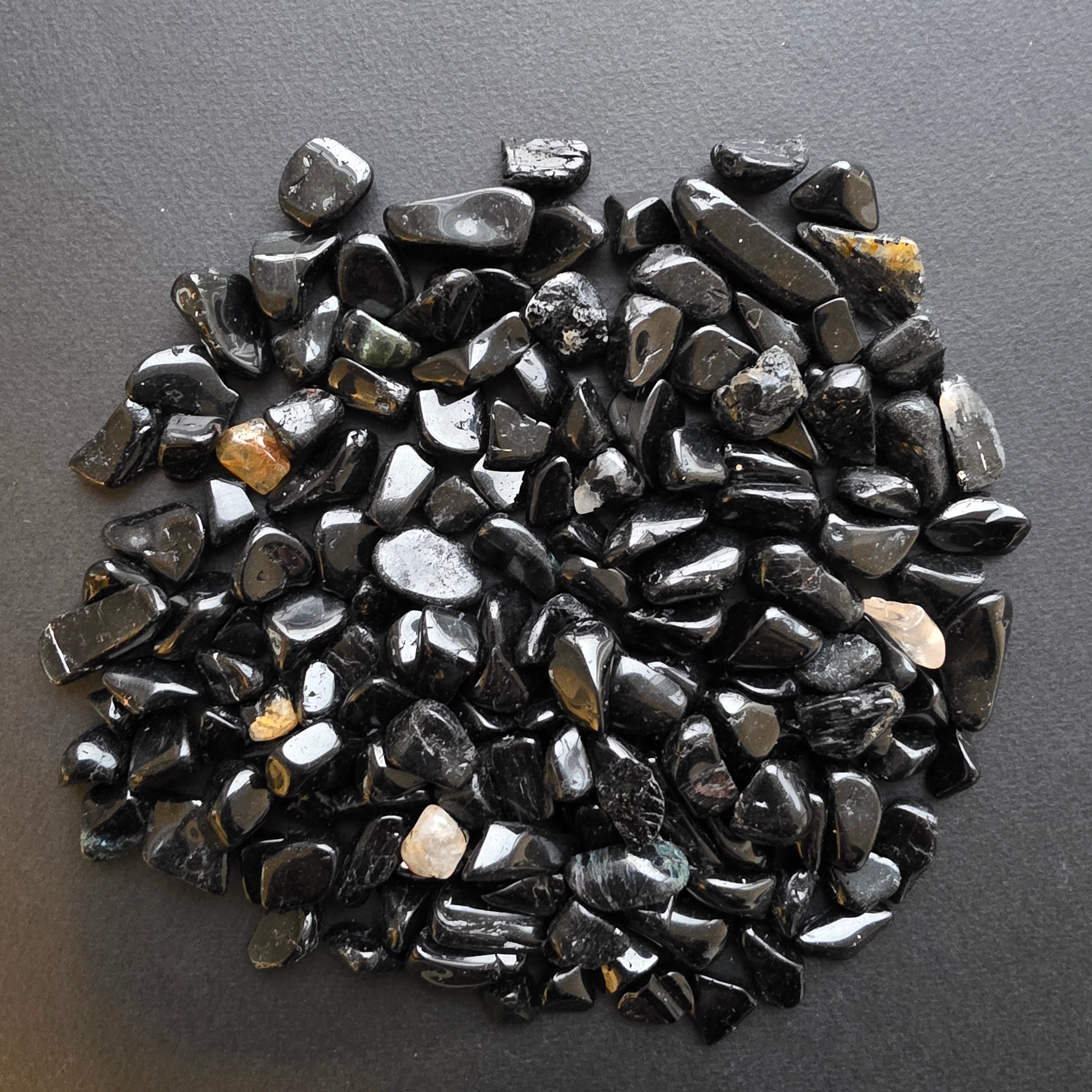 Típus: természetes fekete turmalin chipsek (kis csiszolt, szabálytalan kövek)