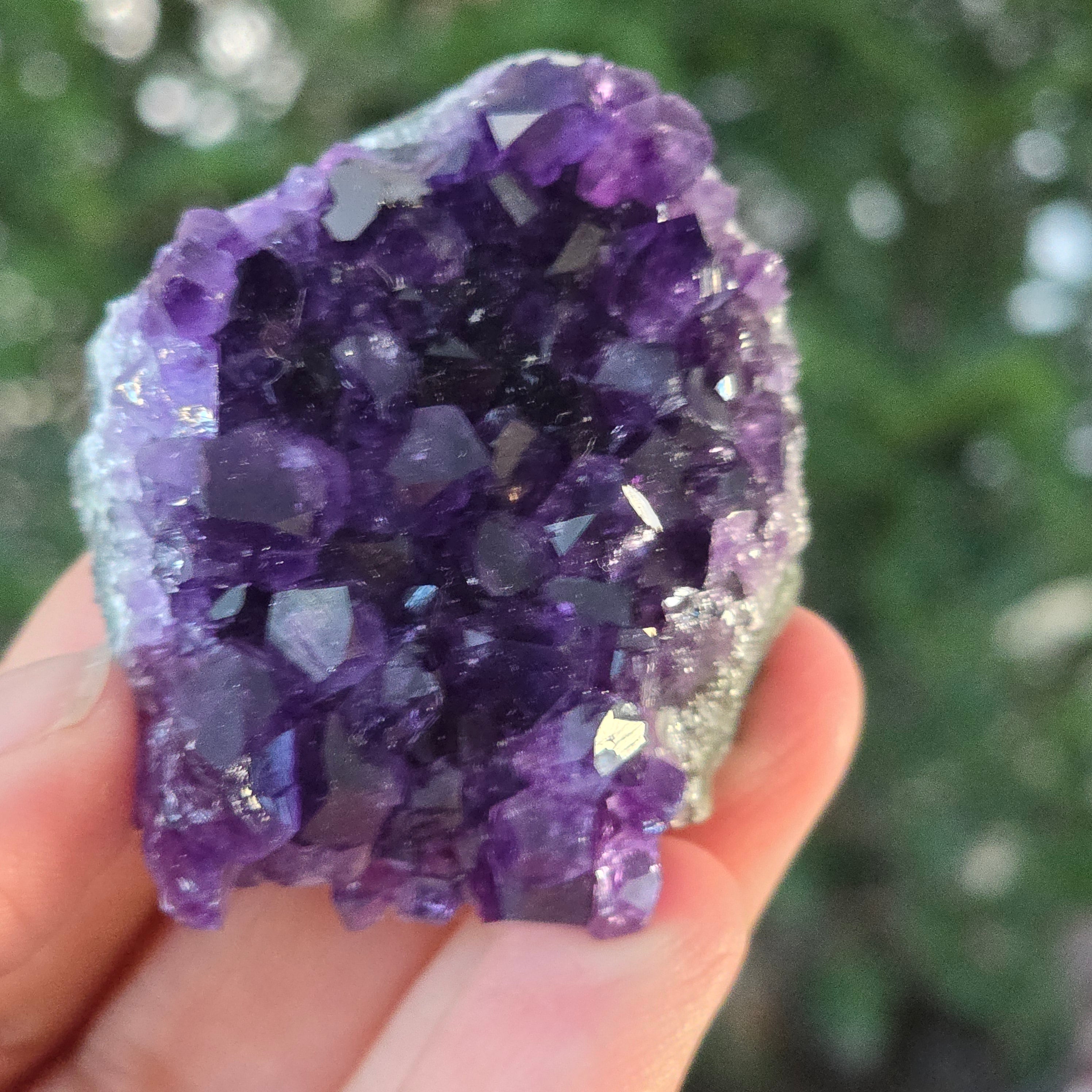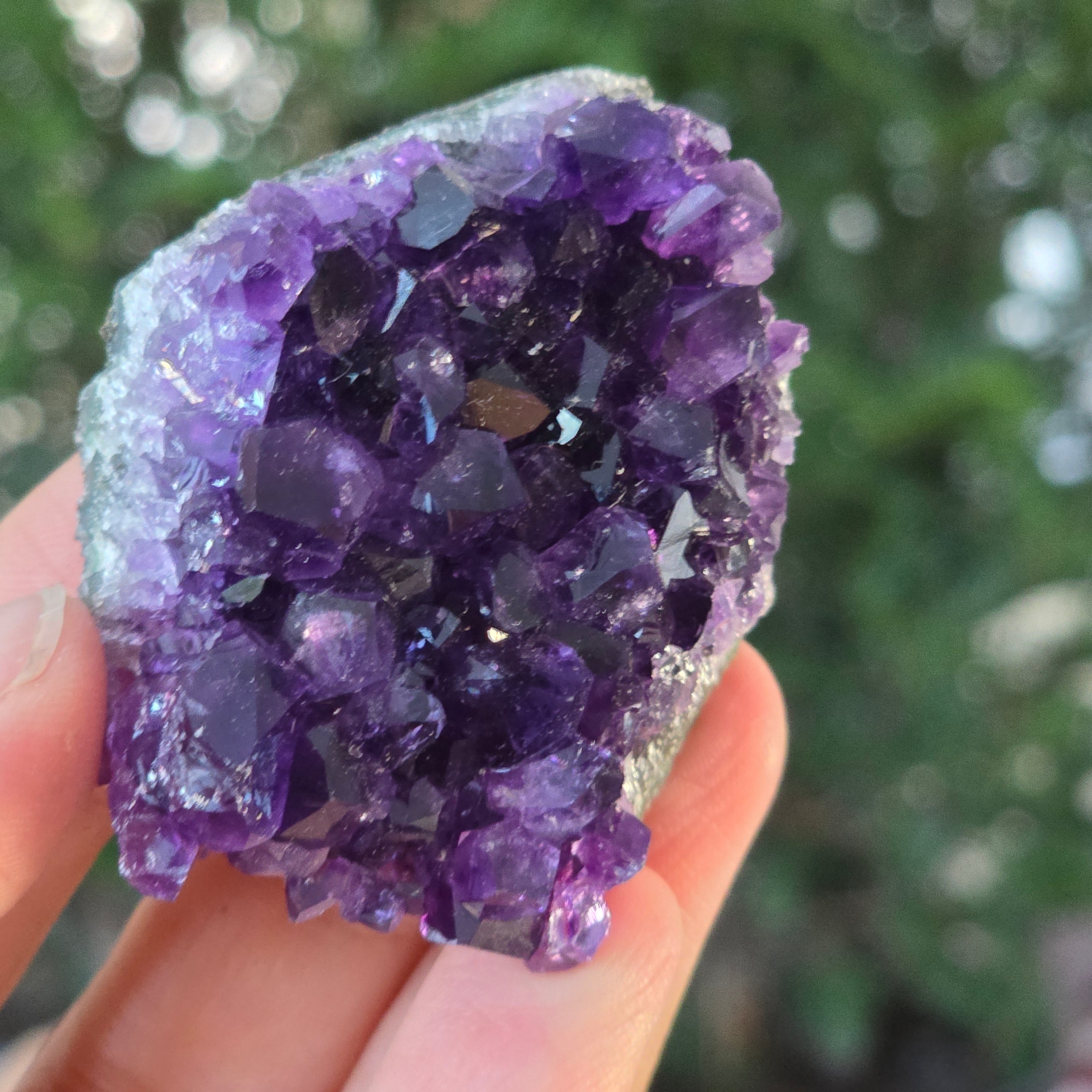 Ez az uruguay-i ametiszt klaszterkivételes minőségű, magas tisztító és tisztánlátás rezgést hordoz. Tökéletesen formált kristályai hipnotikus lila árnyalatok táncában ragyognak – egy ritka darab, ideális gyűjtőknek vagy olyan terekbe, amelyek kifinomultságot és valódi energetikai egyensúlyt igényelnek.