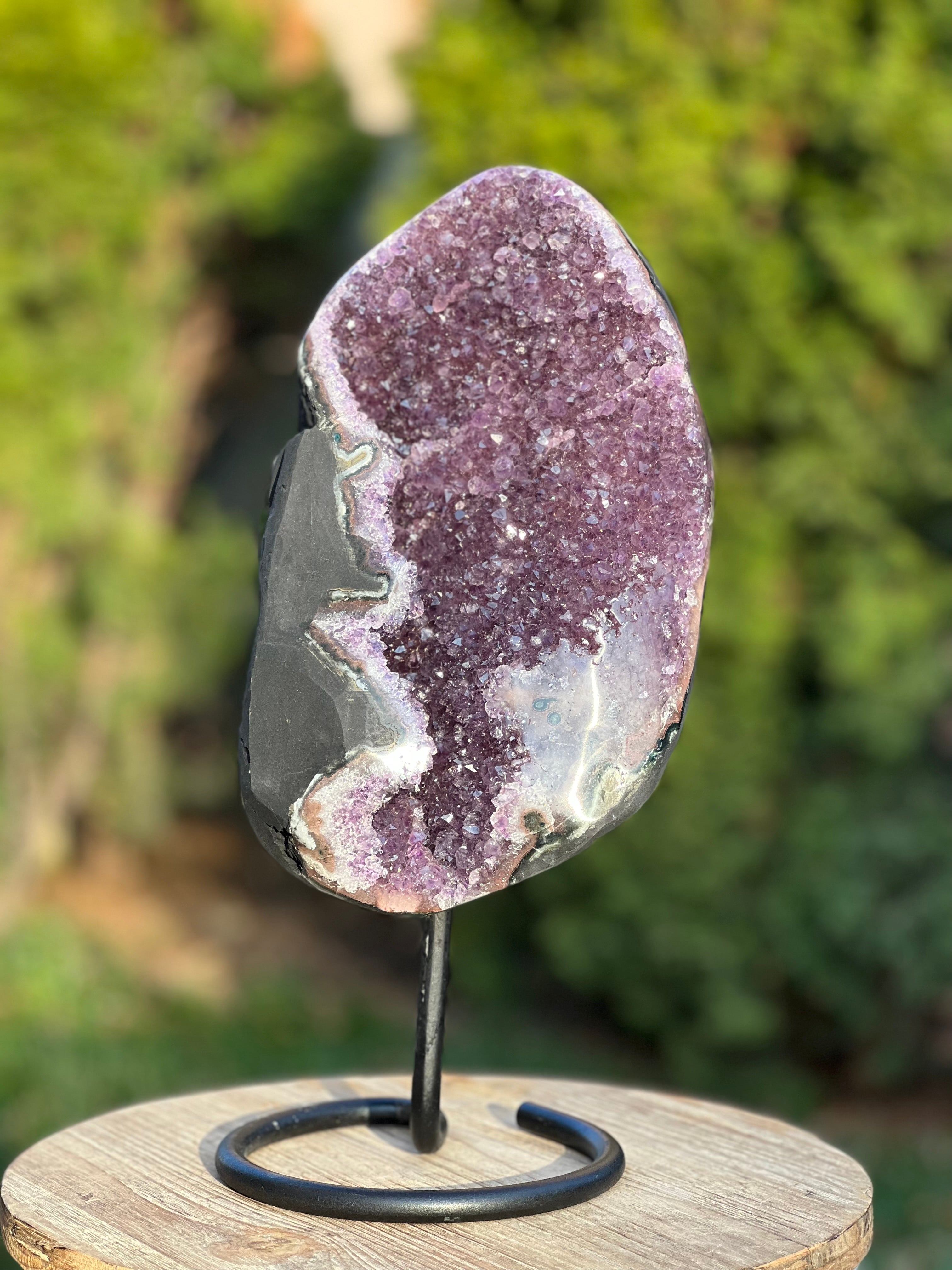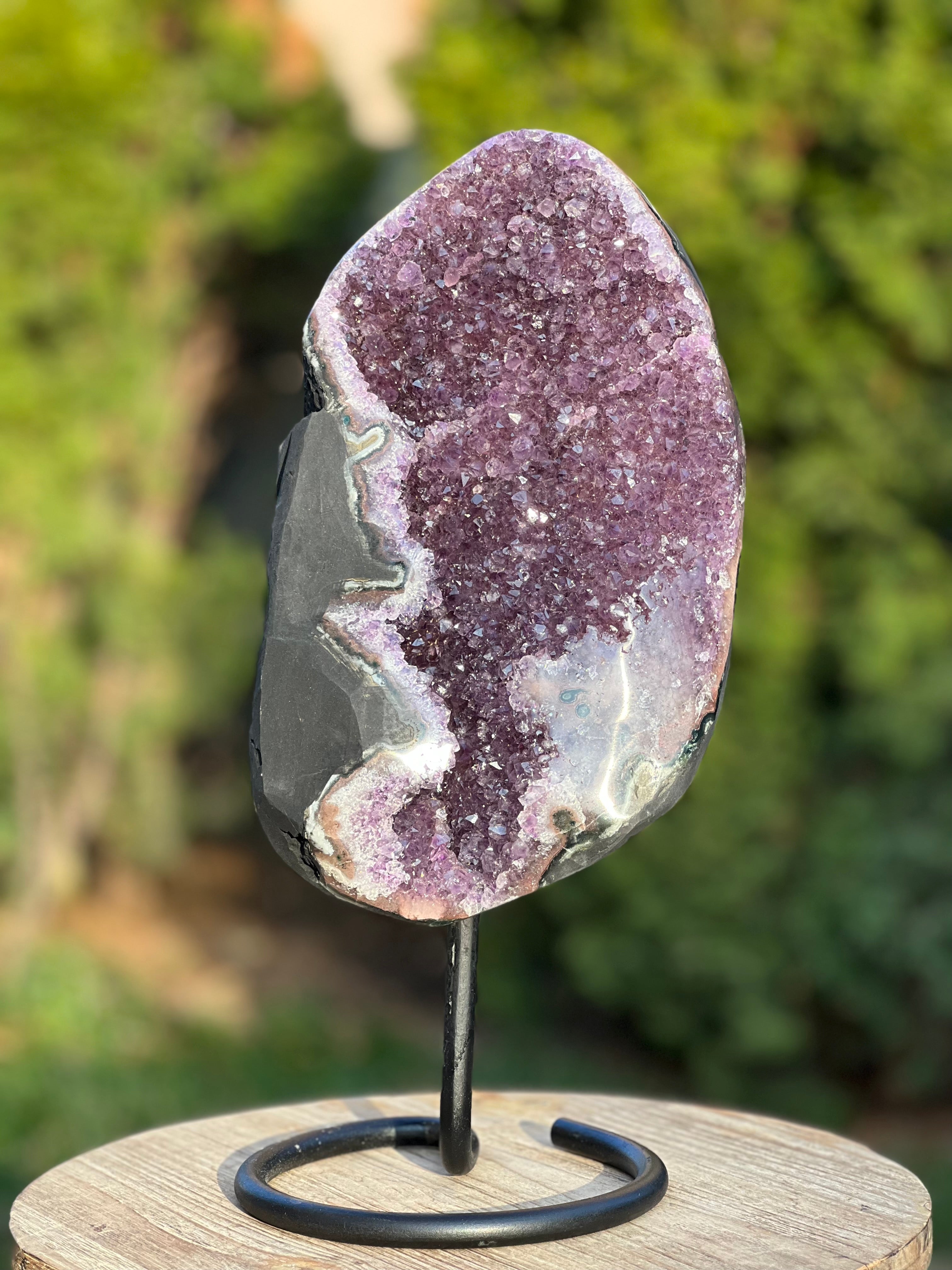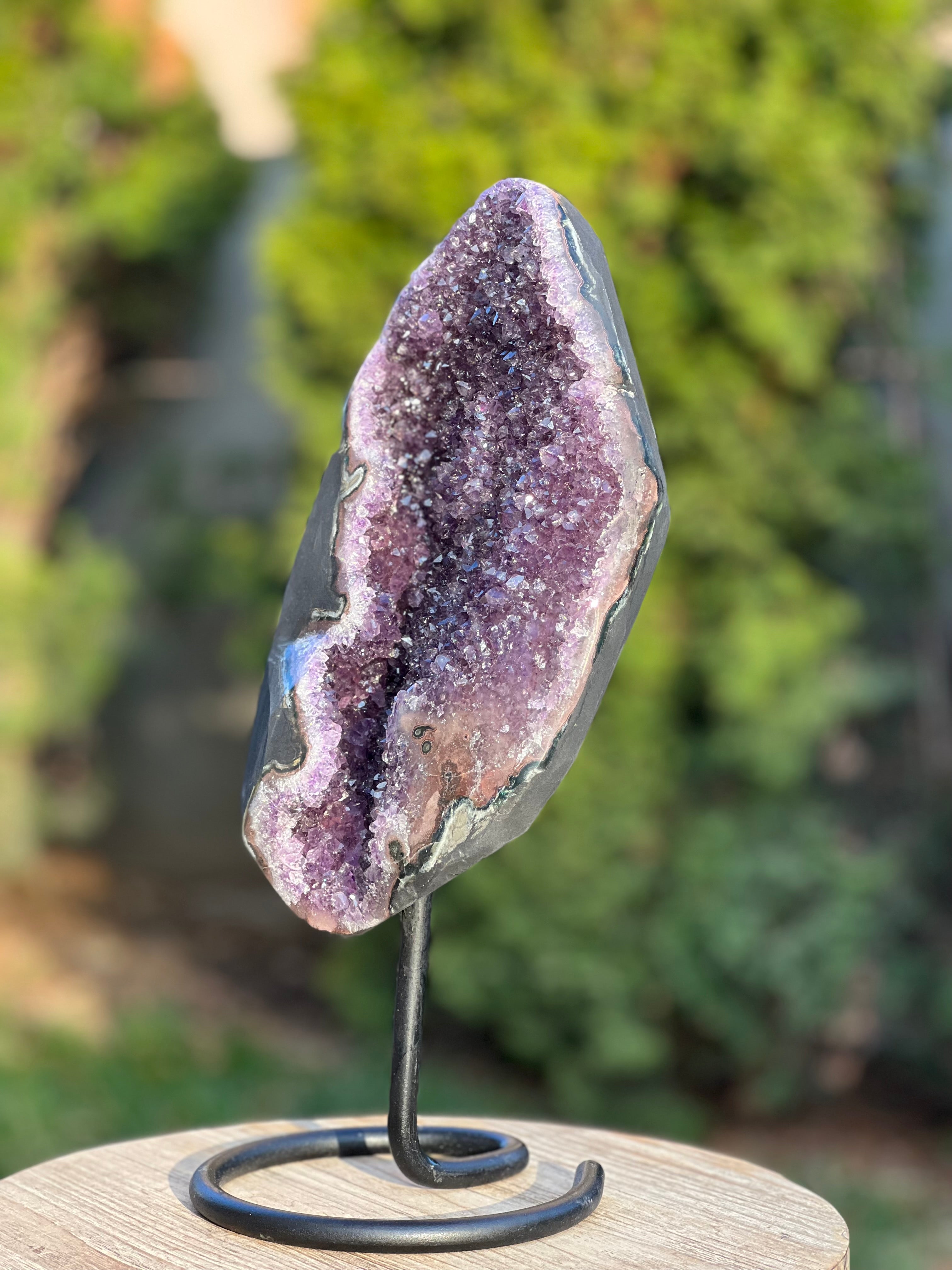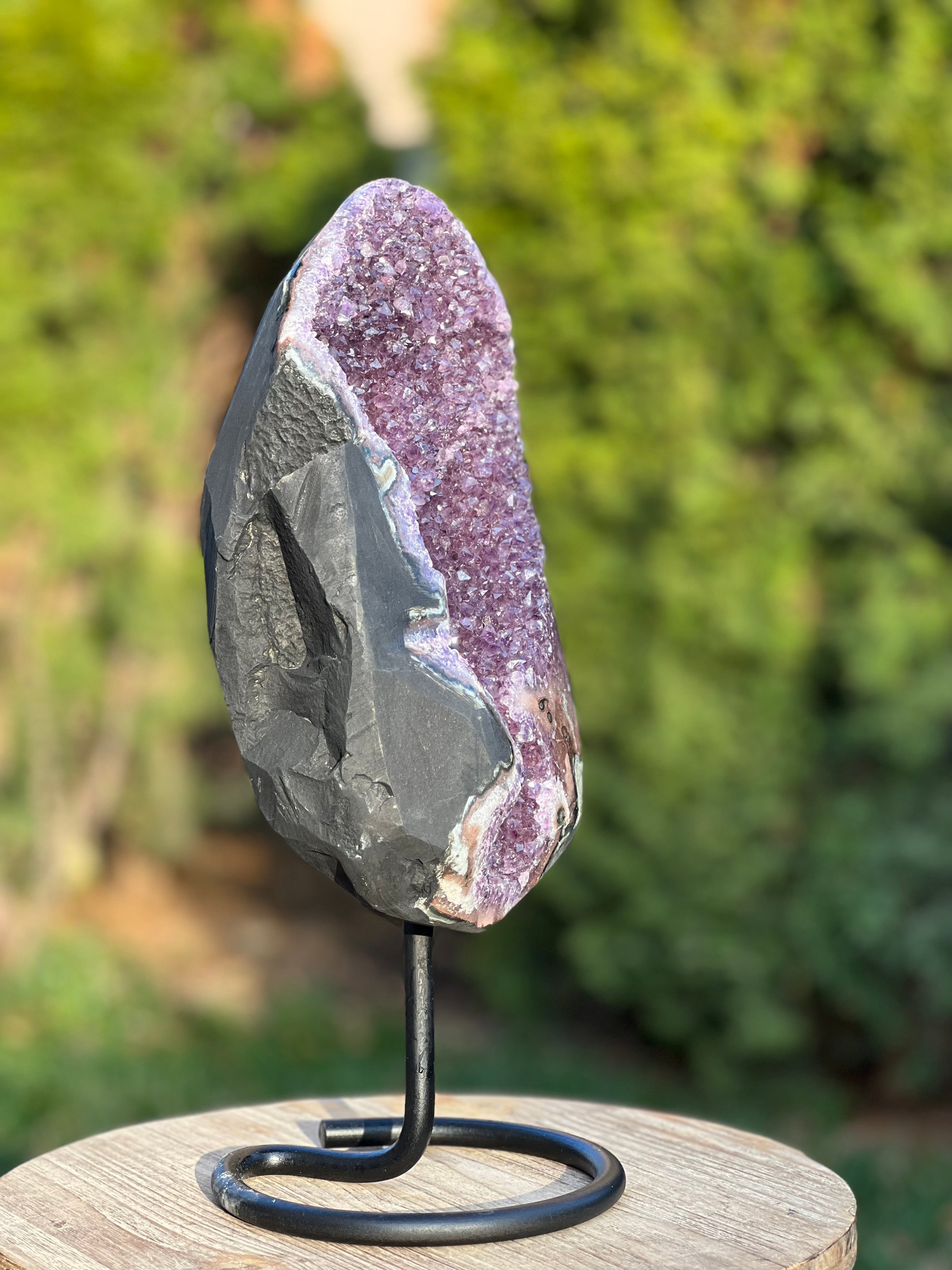 Uruguayi ametiszt geoda XL modell 2, méret (állvánnyal együtt): 39 cm * 17 * 9 cm